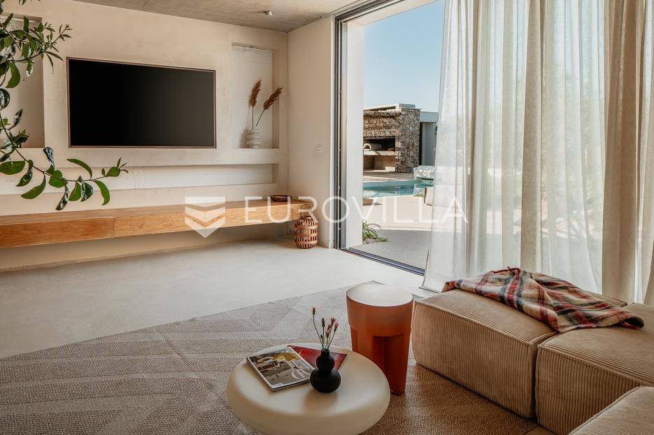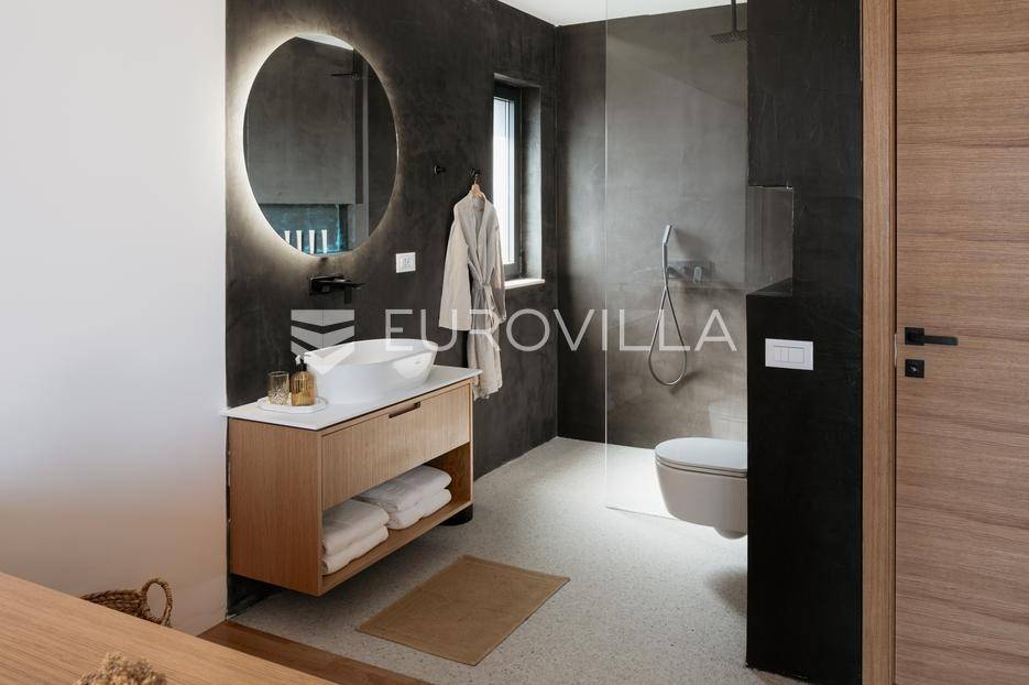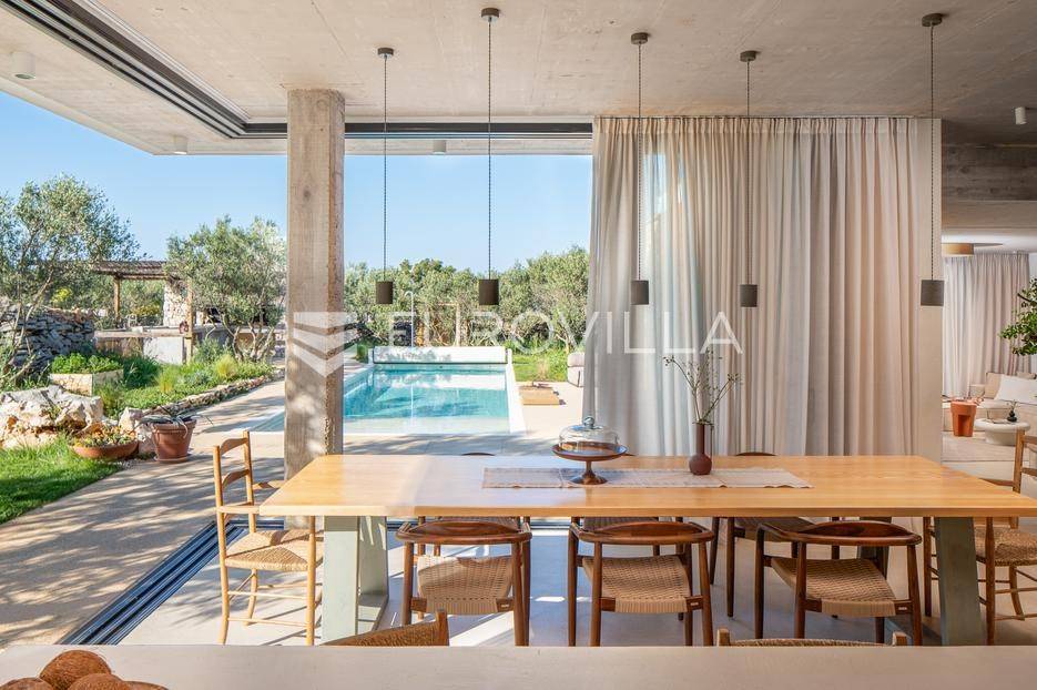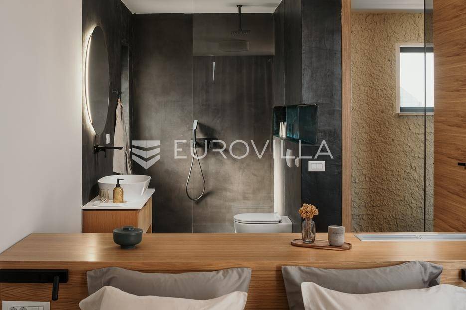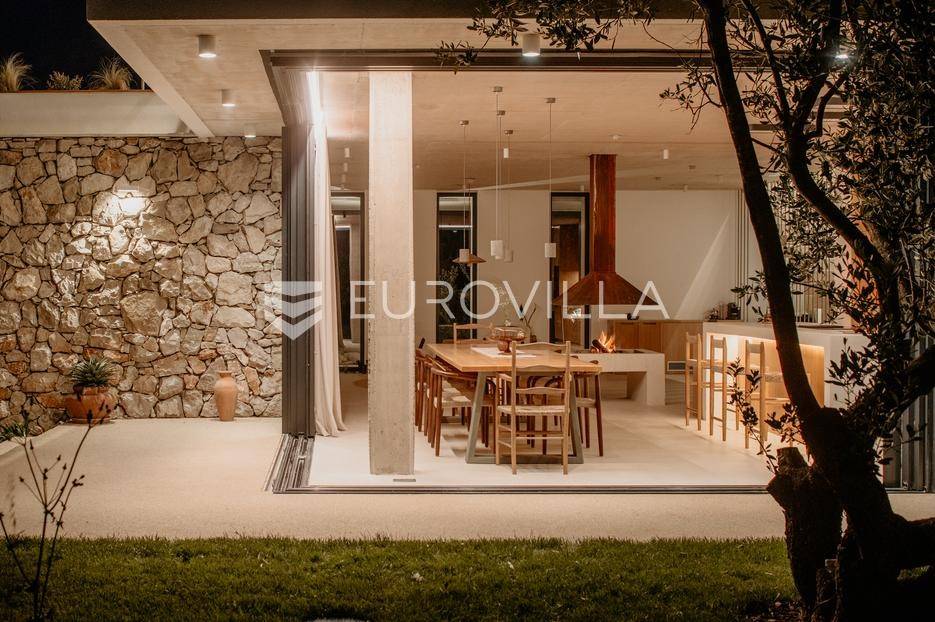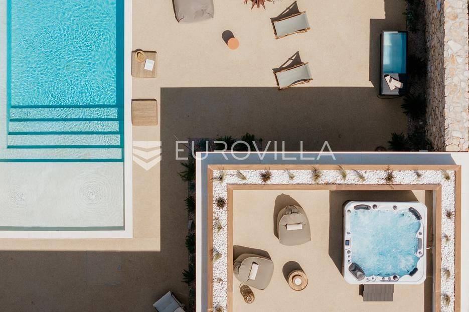 Šolta, elegantna i moderno uređena vila smještena na jednom od najljepših dalmatinskih otoka .Nekretnina se nalazi na uzdignutoj i mirnoj lokaciji u blizini mjesta Gornje Selo, s koje se pruža spektakularan panoramski pogled prema moru, Splitu i obližnjem otoku Braču.Vila je izgrađena 2024. godine na prostranom zemljištu od čak 1.800 m², koje pruža potpunu privatnost i osjećaj sigurnosti. Ukupne površine 270 m², nudi vrhunski komfor kroz tri spavaće sobe, od kojih svaka posjeduje vlastitu kupaonicu i izlaz na zajedničku terasu. Interijer kombinira suvremeni dizajn i prirodne materijale, s toplim drvenim podovima i pažljivo biranim detaljima koji prostoru daju profinjen karakter.Otvoreni dnevni prostor s kaminom, velikim staklenim stijenama i pogledom na more povezuje se s vanjskim dijelom kuće i stvara savršen ambijent za boravak tijekom cijele godine. Kuhinja je u potpunosti opremljena suvremenim uređajima i funkcionalnim rasporedom, dok vanjski dio vile dodatno oduševljava grijanim bazenom s električnim pokrovom, jacuzzijem, saunom, ledenom kadom (Chill tubs), ljetnom kuhinjom te prostorom za objedovanje na otvorenom.Cijeli vrt obogaćen je mediteranskim zelenilom, maslinama i začinskim biljem, čime se stvara dojam istinske harmonije s prirodom.Vila je tehnički sofisticirana i uključuje sustav podnog grijanja, sigurnosne kamere, brzi bežični internet (Starlink), pametni sustav za upravljanje i punjač za električna vozila. Garaža s automatskim vratima nudi smještaj za dva automobila, dok dodatna parkirna mjesta osiguravaju bezbrižno primanje gostiju.Zahvaljujući luksuznoj opremi, iznimnoj lokaciji i vrhunskoj opremljenosti, ova vila predstavlja izvrsnu priliku kako za osobno uživanje tako i za investiciju. Trenutno se uspješno iznajmljuje u segmentu visoko kategoriziranog turizma, uz mogućnost cjelovite usluge upravljanja i dočeka gostiju, što dodatno potvrđuje njezin investicijski potencijal. Savršena ravnoteža privatnosti, udobnosti i prirodne ljepote - idealna prilika za one koji traže kvalitetan životni prostor s notom mediteranskog luksuza.Za sve ostale informacije i upite, stojimo Vam uvijek na raspolaganju.... Više na eurovilla.hr, ID: 386195