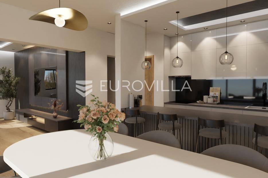 Varaždin, Centar - Obiteljski penthouse u novogradnji, površine 140,88 m2.Moderan i iznimno prostran dvoetažni penthouse smješten je u kvalitetnoj novogradnji s ukupno četiri stambene jedinice, što osigurava mir, privatnost i ugodno okruženje za obiteljski život.Stan se ističe funkcionalnim i promišljenim rasporedom te obiljem prirodnog svjetla. Sastoji se od tri spavaće sobe, radne sobe, dvije kupaonice te prostranog dnevnog boravka s kuhinjom i izlazom na veliku terasu. Izlaz na terasu izveden je u ravnini poda, bez praga, čime je postignuta dodatna razina komfora i sigurnosti, posebno za djecu.U svim prostorijama ugrađeno je podno grijanje, dok je dizalica topline smještena u zasebnoj servisnoj prostoriji izvan stana, čime se osigurava tišina i optimalna iskoristivost prostora.Grijanjem, hlađenjem, žaluzinama i videonadzorom moguće je upravljati putem mobilne aplikacije, što stanu daje moderan „smart home“ karakter.Dodatna prednost nekretnine je mogućnost kupnje garaže za dva automobila.Stanovima pripada i zajedničko parkiralište zgrade s četiri vanjska parkirna mjesta, slobodno za korištenje gostima.Ovaj penthouse predstavlja idealan spoj kvalitetne novogradnje, suvremene opreme i funkcionalnosti, savršen za obitelj koja traži dugoročno, udobno i sigurno stanovanje.Za sva dodatna pitanja, razgledavanje i detalje stojimo Vam na raspolaganju.... Više na eurovilla.hr, ID: 395576