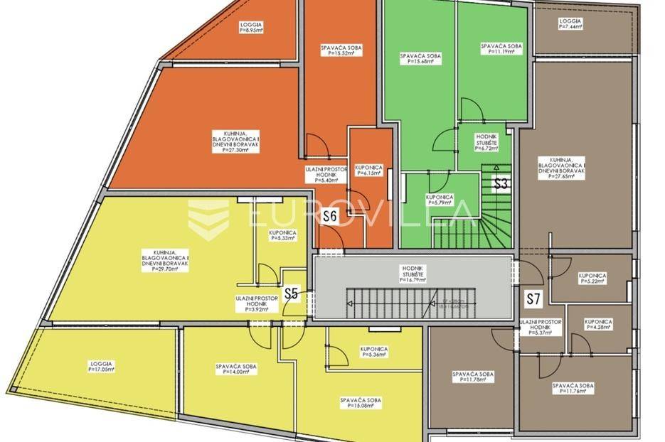 EKSKLUZIVNA NOVOGRADNJA NA PRVOJ LINIJI UZ MORE - PRIVLAKAU ponudi je novi projekt luksuzne stambene novogradnje smješten u Privlaci, atraktivnom turističkom mjestu u neposrednoj blizini Zadra. Privlaka je poznata po razvedenoj obali, brojnim pješčanim plažama i plitkom moru, zbog čega kupališna sezona ovdje traje znatno dulje nego u većini drugih jadranskih destinacija. Riječ je o ugodnom dalmatinskom mjestu koje nudi idealan spoj odmora, mira i kvalitete života.Posebnu vrijednost projektu daje sama mikrolokacija. Zgrade su smještene u prvom redu do mora, na zapadnoj strani Privlake, uz uređenu obalnu šetnicu dugu čak 8 kilometara. Iz svih stanova pruža se otvoren panoramski pogled na more, okolne otoke i spektakularne zalaske sunca po kojima je ova lokacija posebno prepoznatljiva. Okruženje je mirno, s modernom i luksuznom novogradnjom u neposrednoj blizini, što dodatno doprinosi kvaliteti i ekskluzivnosti cijelog prostora.Projekt obuhvaća dvije stambene zgrade, od kojih svaka ima 9 stambenih jedinica raspoređenih na tri etaže. Nalaze se u neposrednoj blizini centra mjesta te svih sadržaja potrebnih za ugodan boravak i odmor, kao i nekoliko uređenih plaža.STAN S7 - 1. KAT - ZGRADA 1 - 74,14 m²Stan S7 smješten je na prvom katu zgrade s ukupno 9 stanova raspoređenih na tri etaže. Ukupna neto korisna površina iznosi 74,14 m², dok bruto površina iznosi 86,00 m². Stan je jugozapadne orijentacije, što mu osigurava obilje prirodnog svjetla tijekom dana.Sastoji se od prostranog otvorenog prostora kuhinje, blagovaonice i dnevnog boravka (27,65 m²), dvije spavaće sobe (11,76 m² i 11,78 m²), hodnika (5,37 m²) te dvije potpuno opremljene kupaonice (5,22 m² i 4,28 m²). Dodatnu vrijednost stanu daje loggia površine 7,44 m², s koje se pruža otvoren pogled na more i otoke.Uz stan dolazi i jedno parkirno mjesto.KVALITETA GRADNJE I OPREMAPri izgradnji se koriste visokokvalitetni materijali provjerenih proizvođača, a stanovi se opremaju suvremenom i luksuznom opremom, među kojom izdvajamo:armiranobetonsku konstrukcijutoplinsku izolaciju (stiropor) debljine 12 cmvrhunsku ALU troslojnu stolariju sa sustavima za zamračivanjepodne obloge od keramike visokog standarda (120 × 80 cm)podno grijanje u kupaonicama i dnevnom boravkuklimatizaciju u svim prostorijamai dodatnu opremu visoke kvaliteteStanovi su useljivi!Kupac ne plaća porez na promet nekretnina.Za dodatne informacije i dogovor oko razgledavanja nekretnine, slobodno nas kontaktirajte.... Više na eurovilla.hr, ID: 413658