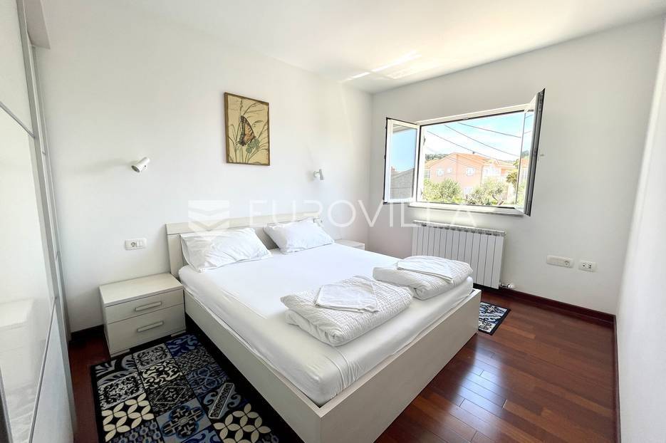 Na jednom od najsunčanijih i najljepših otoka na Jadranu, otoku Rabu prodaje se stan na 1. katu apartmanske ville veličine 102 m2.Ovaj lijepo i moderno uređen stan sastoji se od ulaznog prostora, dvije spavaće sobe svaka sa svojom kupaonicom , dnevnim boravkom, blagovaonicom i kuhinjom. Dnevni boravak i blagovaonica imaju izlaz svaki na svoju loggiu koje imaju pogled na more.Stan je smješten na izvrsnoj lokaciji 250 m od mora, malo izvan centra grada tako da ima privatnost i mir potreban za ugodan odmor. Pokraj kuće nalazi se parkirno mjesto.Ostale informacije na upit.... Više na eurovilla.hr, ID: 426641