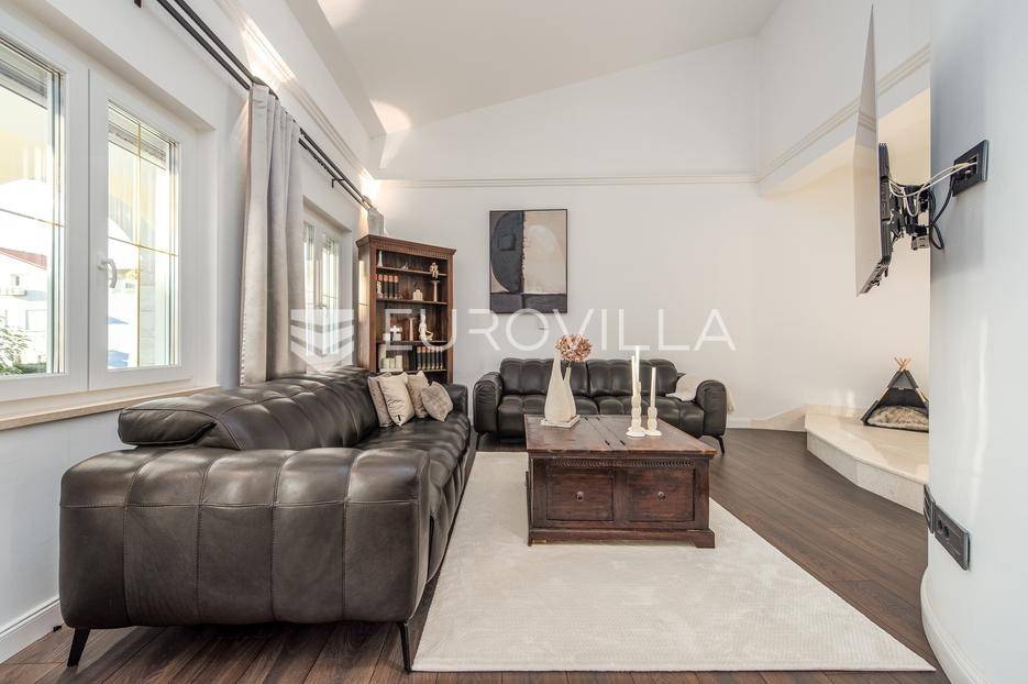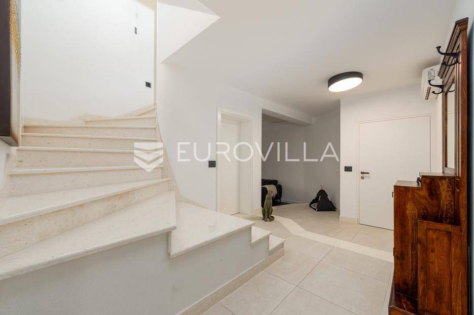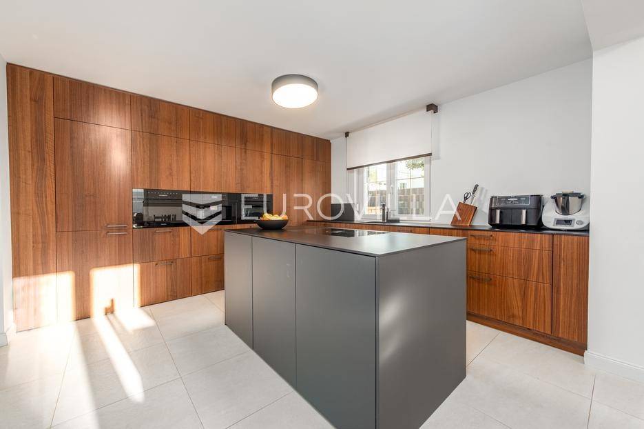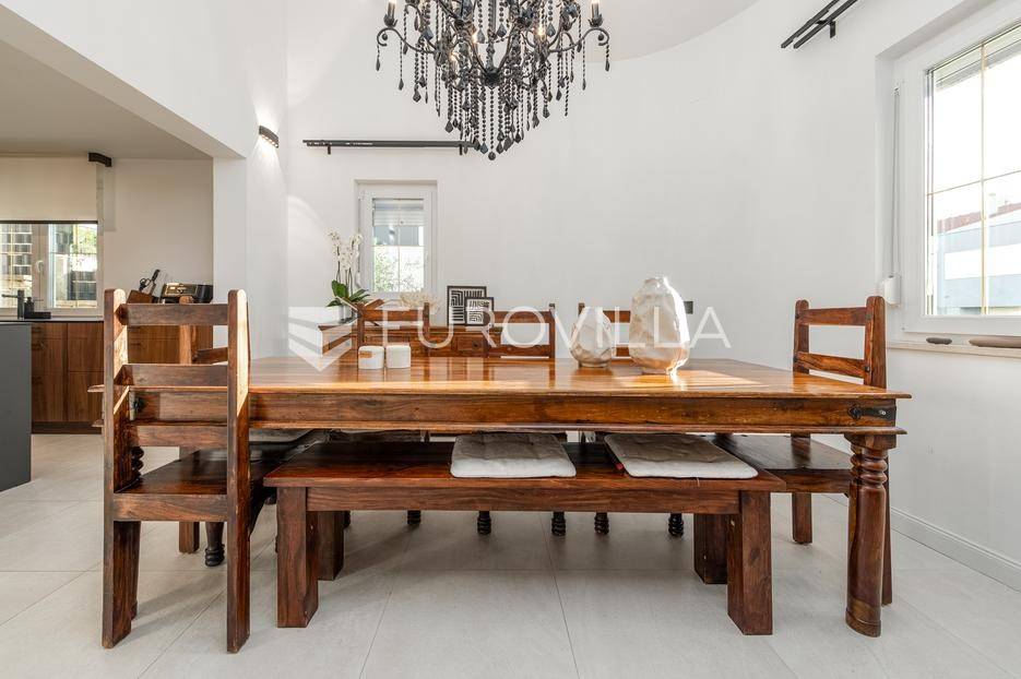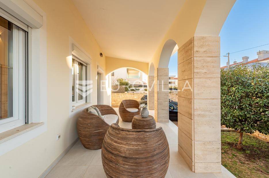 U jednom od najpoželjnijih i mirnijih dijelova Zadra, u naselju Diklovac, nalazi se ova luksuzna, potpuno renovirana kuća za najam, smještena na parceli površine cca 400 m².Kuća se prostire na više etaža i ima ukupnu stambenu površinu cca 200 m². Kompletno je renovirana 2024. godine, uključujući sve instalacije, stolariju, podove, kupaonice i kuhinju, pri čemu su korišteni vrhunski materijali.Interijer je opremljen luksuznim, pomno biranim namještajem izrađenim po mjeri, iznimne kvalitete i vrijednosti. Nekretnina se iznajmljuje potpuno namještena i spremna za useljenje.Posebna prednost ove nekretnine je visoka razina komfora i energetske učinkovitosti: kuća ima podno grijanje te solarne panele, što osigurava značajnu uštedu na troškovima električne energije i grijanja.Sastoji se od:četiri prostrane spavaće sobedvije luksuzno uređene kupaonicereprezentativnog dnevnog boravka s kuhinjom i blagovaonicom otvorenog tipaodvojenog vešerajazasebnog prostora za ostavu / spremišteDodatne pogodnosti:garaža pogodna za manje vozilo ili kao prostor za motocikl i biciklečetiri vanjska parkirna mjesta unutar okućniceOkućnica je u potpunosti uređena i ograđena te nudi elegantan i miran vrt sposebno uređenim vanjskim prostorom za druženje i roštilj (grill zona), idealnim za boravak na otvorenom, opuštanje i druženja tijekom cijele godine.Višeetažni raspored omogućuje jasnu i funkcionalnu podjelu na dnevnu i privatnu zonu, uz visok stupanj komfora i privatnosti.Lokacija je izuzetna - mirno rezidencijalno okruženje, u neposrednoj blizini plaža, šetnica i svih potrebnih sadržaja, uz brzu povezanost s centrom grada.Nekretnina je namijenjena dugoročnom najmu, uz minimalno trajanje ugovora od godinu dana.Ova nekretnina predstavlja rijetku priliku za najam vrhunske, luksuzno opremljene obiteljske kuće na jednoj od najcjenjenijih lokacija u Zadru.Za više informacija i dogovor oko razgledavanja, stojimo na raspolaganju.... Više na eurovilla.hr, ID: 435711