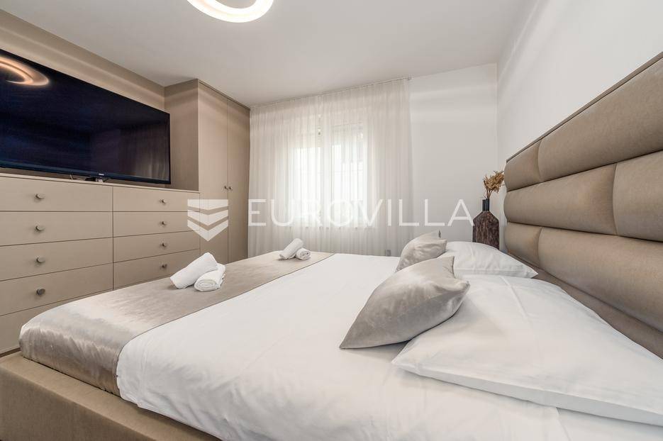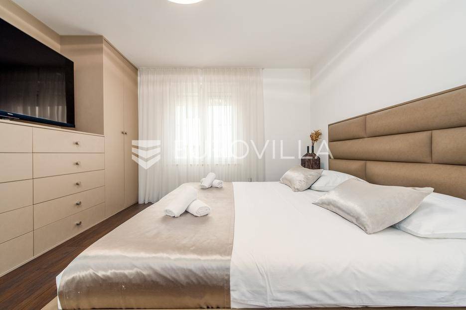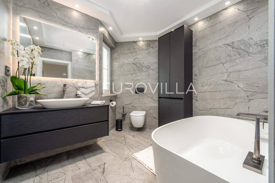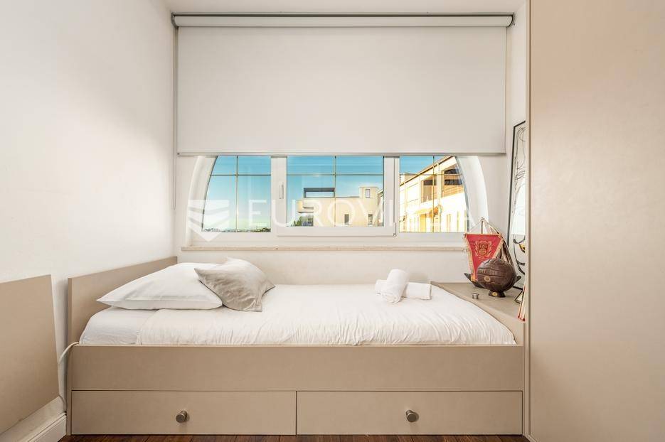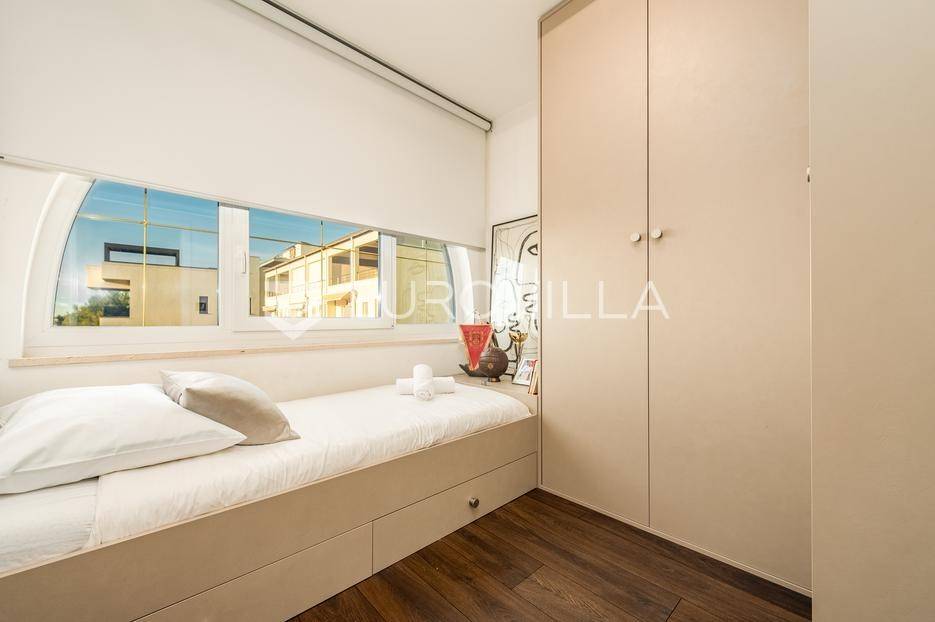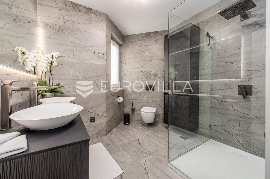 U jednom od najpoželjnijih i mirnijih dijelova Zadra, u naselju Diklovac, nalazi se ova luksuzna, potpuno renovirana kuća za najam, smještena na parceli površine cca 400 m².Kuća se prostire na više etaža i ima ukupnu stambenu površinu cca 200 m². Kompletno je renovirana 2024. godine, uključujući sve instalacije, stolariju, podove, kupaonice i kuhinju, pri čemu su korišteni vrhunski materijali.Interijer je opremljen luksuznim, pomno biranim namještajem izrađenim po mjeri, iznimne kvalitete i vrijednosti. Nekretnina se iznajmljuje potpuno namještena i spremna za useljenje.Posebna prednost ove nekretnine je visoka razina komfora i energetske učinkovitosti: kuća ima podno grijanje te solarne panele, što osigurava značajnu uštedu na troškovima električne energije i grijanja.Sastoji se od:četiri prostrane spavaće sobedvije luksuzno uređene kupaonicereprezentativnog dnevnog boravka s kuhinjom i blagovaonicom otvorenog tipaodvojenog vešerajazasebnog prostora za ostavu / spremišteDodatne pogodnosti:garaža pogodna za manje vozilo ili kao prostor za motocikl i biciklečetiri vanjska parkirna mjesta unutar okućniceOkućnica je u potpunosti uređena i ograđena te nudi elegantan i miran vrt sposebno uređenim vanjskim prostorom za druženje i roštilj (grill zona), idealnim za boravak na otvorenom, opuštanje i druženja tijekom cijele godine.Višeetažni raspored omogućuje jasnu i funkcionalnu podjelu na dnevnu i privatnu zonu, uz visok stupanj komfora i privatnosti.Lokacija je izuzetna - mirno rezidencijalno okruženje, u neposrednoj blizini plaža, šetnica i svih potrebnih sadržaja, uz brzu povezanost s centrom grada.Nekretnina je namijenjena dugoročnom najmu, uz minimalno trajanje ugovora od godinu dana.Ova nekretnina predstavlja rijetku priliku za najam vrhunske, luksuzno opremljene obiteljske kuće na jednoj od najcjenjenijih lokacija u Zadru.Za više informacija i dogovor oko razgledavanja, stojimo na raspolaganju.... Više na eurovilla.hr, ID: 435711