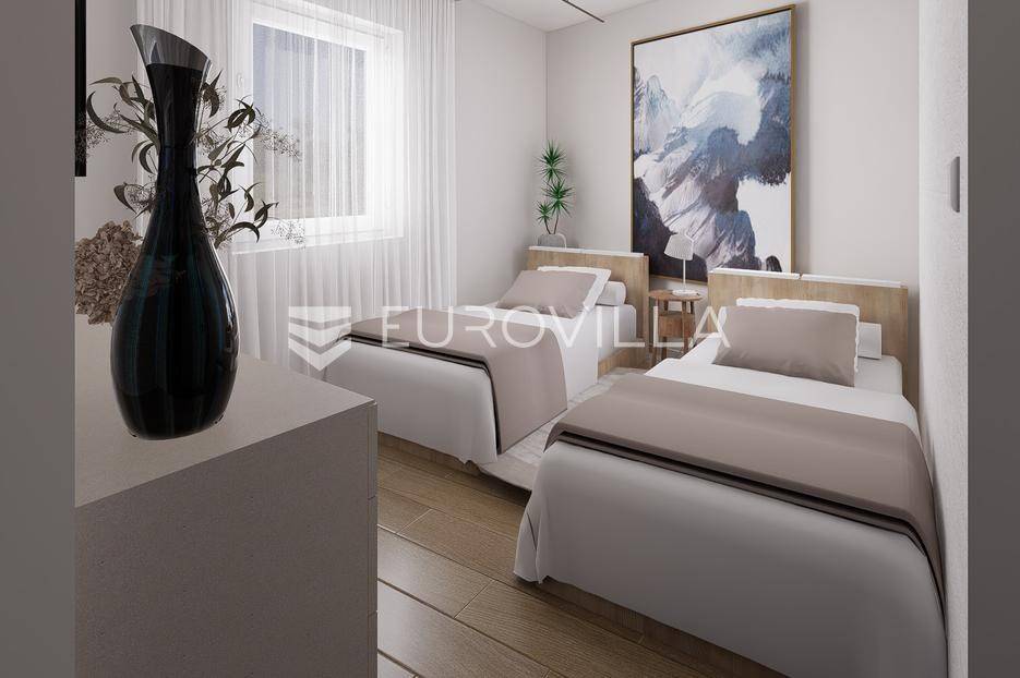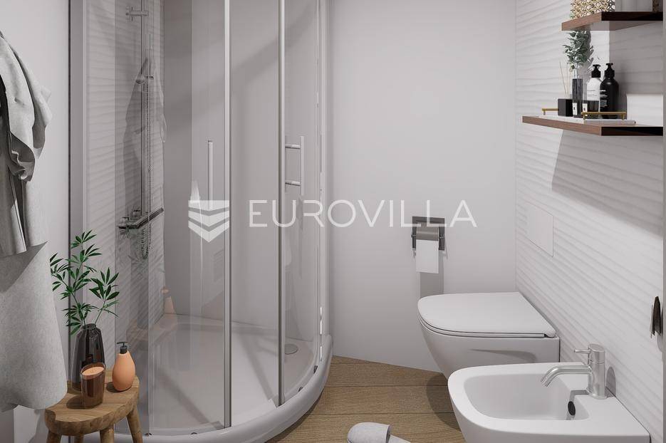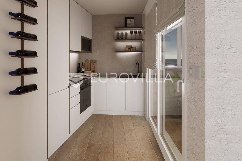 Crikvenica, luksuzan trosoban stan netto korisne površine 114 m2 s garažom, udaljen 150m od mora.Na izvanrednoj lokaciji, svega nekoliko minuta hoda do uređene plaže i lučice Podvorska, prodaje se prostran trosoban stan s garažom koji zauzima cijeli kat novo rekonstruiranog objekta dovršenog 2025. godine.Stan ima 101 m² bruto površine, a vlastitim stepeništem povezanim s prizemljem ulazi se u garažu od 17 m². Ukupna površina stana s pripadajućim dijelovima iznosi 120,76 m² (114 m² netto).Stan se prodaje nenamješten.Ističe se izuzetnom kvalitetom gradnje i opreme: nova ravna krovna konstrukcija s višeslojnim toplinskim, hidro i zvučnim izolacijama, troslojna GEALAN stolarija, podne obloge talijanske keramike, protuprovalna BLINDOOR vrata te DAIKIN multisplit sustav grijanja i hlađenja s WiFi upravljanjem.Tlocrt uključuje dvije spavaće sobe, kupaonicu, kuhinju pripremljenu za ugradnju prema nacrtu te veliki dnevni boravak s četverokrilnom staklenom stijenom koja se otvara prema terasi s pogledom na more i marinu.Kupaonica je opremljena kvalitetnim brendovima (Laufen, Hansgrohe, Geberit), podnim grijanjem i Helios ventilacijom. Garaža je uređena keramikom, Hörmann vratima i dodatnim instalacijama.Udaljenost do plaže i marine Podvorska iznosi 2,5 minute pješice, do centra Crikvenice 10 minuta, a do tržnice 8 minuta.Mogućnost priveza plovila u luci Podvorska.Za sve dodatne informacije ili dogovor razgledavanja, stojimo Vam na raspolaganju.... Više na eurovilla.hr, ID: 563041