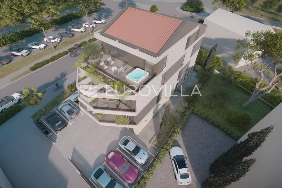 Istra, Rovinj, luksuzna novogradnja - stan neto korisne površine 111,65 m2 na drugom katu s 3 spavaće sobe, garažnim i vanjskim parkirnim mjestom s pogledom na more.Stan S4 zatvorene površine 80,90m2 sastoji se od ulaznog hodnika, 3 spavaće sobe od kojih jedna ima en suite kupaonicu, gostinjska kupaona, kuhinja, dnevni boravak i blagovaona otvorenog tlocrta te natkrivenog balkona površine 18m2 i nenatkrivenog 25m2.Grijanje i hlađenje vršit će se putem dizalice topline te će kroz cijeli stan biti sprovedeno podno grijanje.Stanu pripada garažno i parkirno mjesto.U fazi izgradnje moguće se izmjene podnih obloga te unutarnjeg uređenja u dogovoru s investitorom.Stan se nalazi na odličnoj lokaciji na svega nekoliko minuta hoda do centra i plaža. Izgradnja kreće u veljači 2025. godine dok je rok završetka planiran na ljeto 2026. godine.Izražena cijena je s PDV-om, stoga kupac ne plaća porez na promet nekretnina u iznosu od 3 %.Za više informacija stojimo vam na raspolaganju... Više na eurovilla.hr, ID: 566837