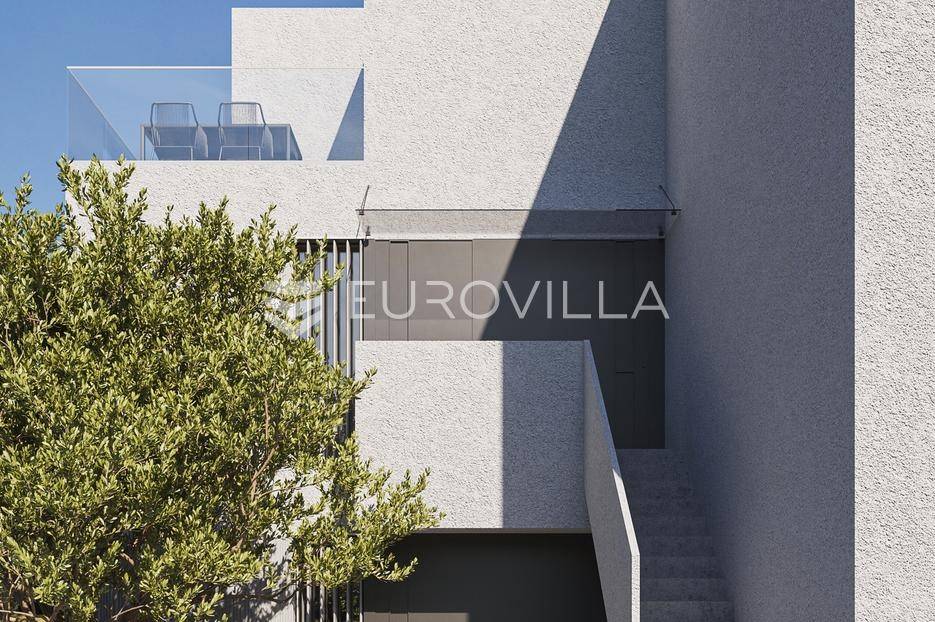 Murter, luksuzni apartman s pogledom na more, neto korisne površine 83,33 m². Stanu pripada i parkirno mjesto, te s ostalim stanovima dijeli 50,5 m² dvorišnog prostora. Stan se prostire kroz dvije etaže, prvi i drugi kat. Površina zatvorenog prostora je 77,1 m².Prvi kat se sastoji od spavaće sobe i kupaonice. Unutarnjim stepenicama dolazi se na drugi kat gdje se nalazi dnevni boravak s kuhinjom i blagovaonicom, te još jedna spavaća soba i kupaonica. Iz boravka se izlazi na dvije terase s pogledom na more. Stan ima ugrađeno podno i stropno grijanje i hlađenje. Prodaje se bez namještaja.Zgrada se nalazi svega 190 metara od mora. Riječ je o luksuznom projektu koji se sastoji od ukupno 4 apartmana, tako da osigurava mir i udobnost. Lokacija stana je odlična jer kratkom šetnjom ste i u centru Murtera, ali i na poznatoj plaži Podvrške.Za sve ostale informacije stojimo na raspolaganju.... Više na eurovilla.hr, ID: 569460