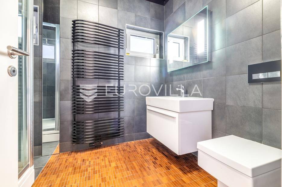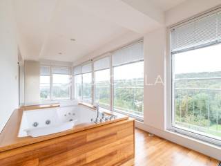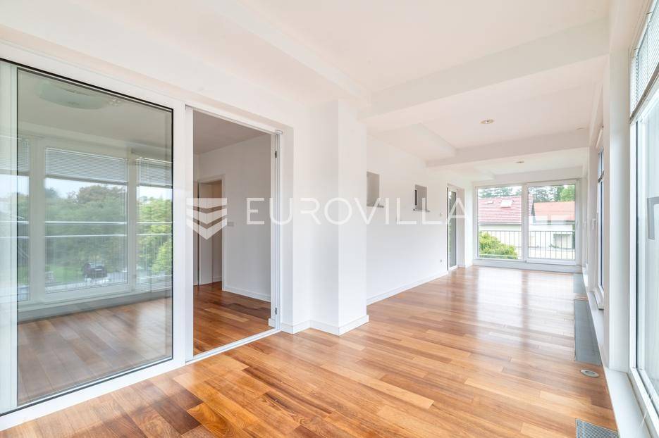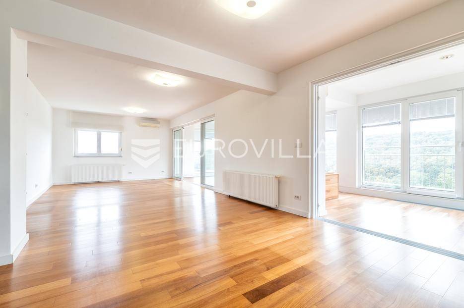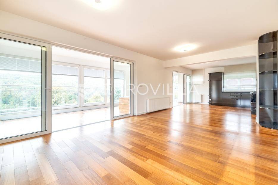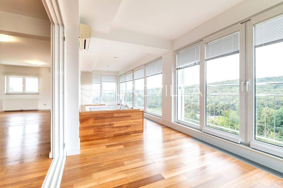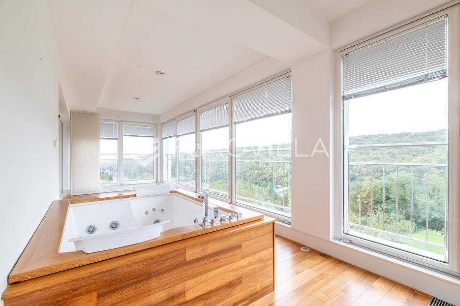 Zagreb, Orehovečki Brijeg, luksuzan trosoban penthouse površine 143 m² smješten na drugom katu manje zgrade novije gradnje. Iz prostranih stambenih prostora pruža se očaravajući pogled na park-šumu Dotrščina i Sljeme.Sastoji od prostranog dnevnog boravka s potpuno opremljenom kuhinjom, blagovaonice, zatvorene terase s jacuzziem na sunčanu zapadnu stranu s koje se pruža panoramski pogled na zalenilo, dvije spavaće sobe na istočnu stranu, garderobe te kupaonice.Kvalitetna gradnja (Kamgrad), etažno plinsko grijanje, klimatizirane sve prostorije, troslojna PVC stolarija, parket i keramika vrhunske kvalitete, portafon.Pripadaju mu dva vanjska parkirna mjesta, svako površine 12,65 m2 te spremište u podrumu zgrade površine 4,81 m2 (2,4 m2).Izuzetno svijetao i ugodan stan u mirnom dijelu podsljemenske zone, odlična lokacija neposredno pored Park-šume Dotrščina.Blizina autobusne linije, sportskih sadržaja, tenis terena, vrtića, osnovne škole i trgovina.Za sve ostale upite nas slobodno kontaktirajte.... Više na eurovilla.hr, ID: 597154
