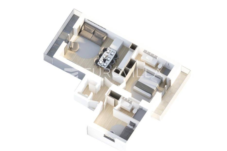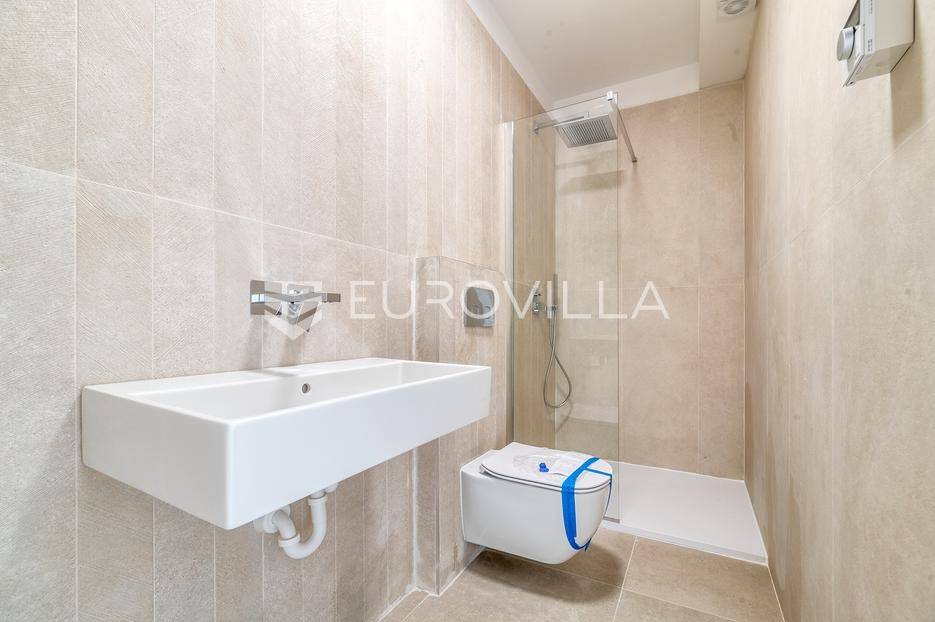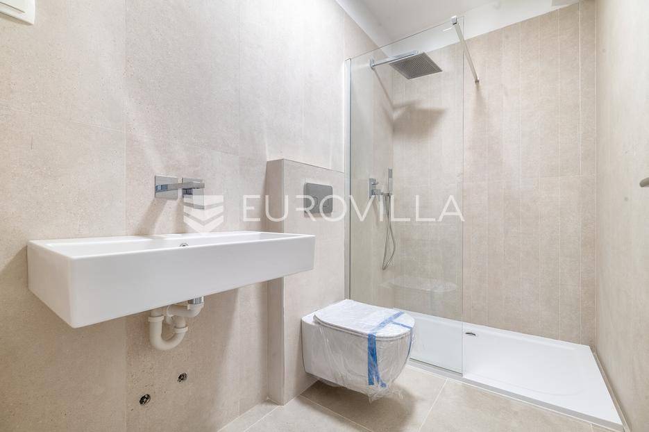 Zagreb, Pantovčak, luksuzan trosoban stan oznake S3 na 2. katu urbane ville s liftom, ukupne površine 72,24 m2. Pripada mu dva vanjska parkirna mjesta površine 25 m2 (5 m2).Sastoji se od ulaznog prostora, open space dnevnog boravka s kuhinjom blagovaonicom površine 28 m2, dvije spavaće sobe, dvije kupaonice, gostinjskog toaleta te dva balkona.Zatvorene stambene površine ukupno 65 m2. Sveukupne površine 72,24 m2.Armirano-betonska konstrukcija s protupotresnim temeljima, energetska učinkovitost po najvišim standardima, grijanje/hlađenje dizalica topline, najviši stupanj opreme i najsuvremenija tehnologija u pogledu instalacija i upravljanja istima (priprema za Smart home), ALU stolarija s troslojnim IZO staklima i roletama na struju, španjolska keramika i sanitarije, parketi vrhunske kvalitete.Odlična lokacija u blizini škola, vrtića, trgovina, caffe, prometno izvrsna povezanost.Planirano useljenje jesen 2025.Za sve ostale upite nas slobodno kontaktirajte.... Više na eurovilla.hr, ID: 600185
