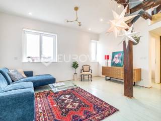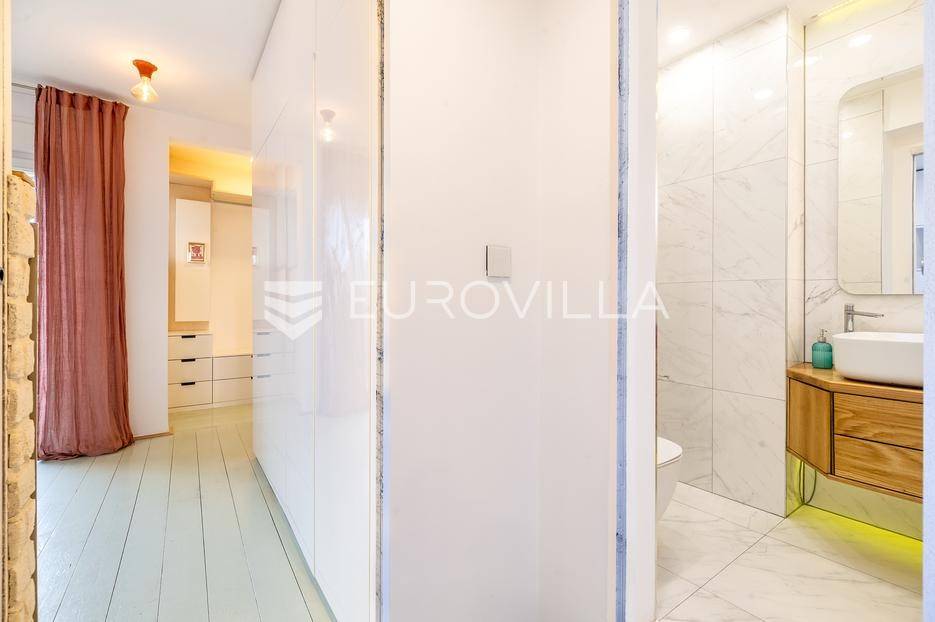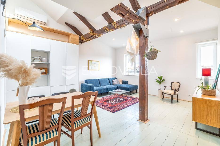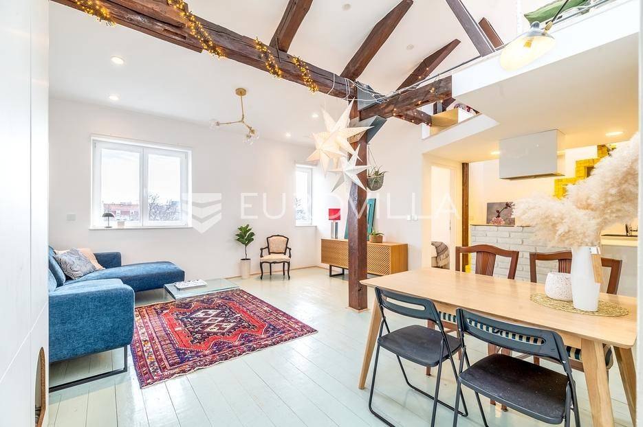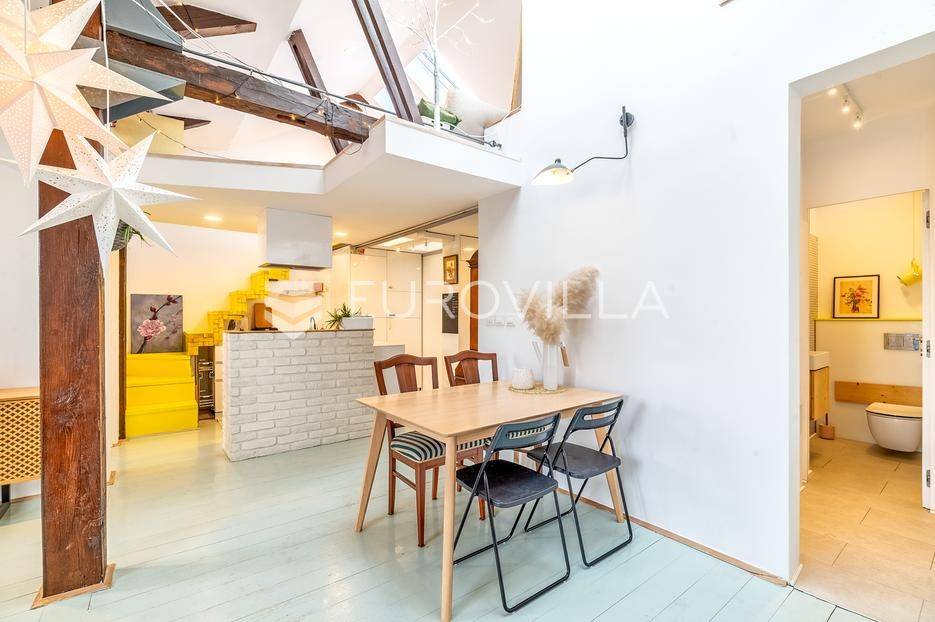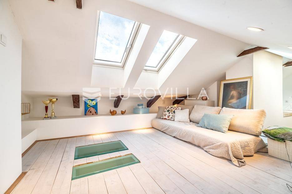Zagreb, Centar, moderan trosoban stan ukupne podne površine 72 m2 na 3. katu zgrade bez lifta. Nalazi se na Marulićevom trgu, između Botaničkog vrta i Mažuranićevog trga, u zelenoj zoni Lenucijeve potkove. Pripada mu vanjsko spremište površine 5 m2 (2,5 m2).Sastoji se od ulaznog prostora, dnevnog boravka s kuhinjom i blagovaonicom, dvije spavaće sobe od čega jedna izlazi na balkon, otvorene galerije površine 15 m2, kupaonice, zasebnog toaleta i vešeraja.Iz dnevnog boravka i spavaće sobe pruža se pogled na impresivno zdanje Hrvatskog državnog arhiva, dok je druga spavaća soba i balkon orijentiran na zapadnu dvorišnu stranu.Stan je kompletno adaptiran 2019. g., uvedeno je podno etažno plinsko grijanje, ožbukani zidovi, nova drvena stolarija, krovni Velux prozori na daljinsko otvaranje, klima 5 kw, nove instalacije struje, vode, plina i kanalizacije, bojler. Podovi su obnovljeni po projektu statike; nova čelična greda, dvostruki drveni grednici, u potresu bez statičkih oštećenja.Izuzetno lijep i ugodan stan na prestižnoj lokaciji centra grada.Za sve ostale upite Vam stojimo na raspolaganju.... Više na eurovilla.hr, ID: 604973