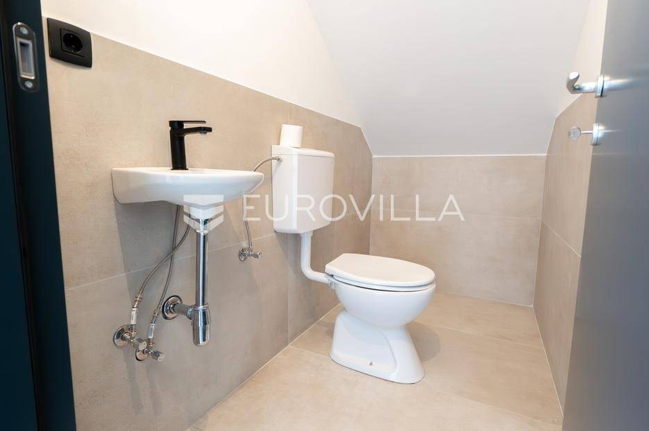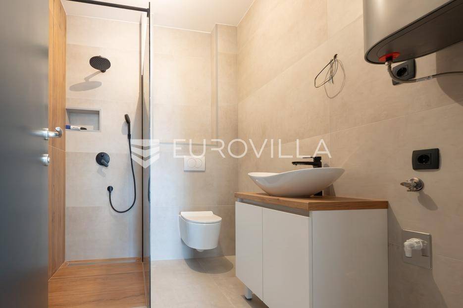 U mirnom dijelu Rovanjske, u novoj kvalitetnoj stambenoj zgradi s ukupno dvije stambene jedinice, prodaje se moderan i funkcionalan dvosoban stan u prizemlju.Stan se nalazi u novogradnji iz 2025. godine, zgrada ima pravomoćnu uporabnu dozvolu i visoki energetski razred A+, što osigurava niske režijske troškove i visoku razinu komfora.Zatvoreni stambeni dio stana iznosi 71,39 m².Stan se sastoji od:ulaznog hodnikadvije spavaće sobekupaonicedodatnog WC-adnevnog boravka s kuhinjom i blagovaonicomloggieStanu pripada:terasa površine 20,24 m²vanjsko parkirno mjesto površine 12,50 m²Ukupna obračunska korisna vrijednost stana s pripadcima iznosi 75,20 m².Stan ima vrlo dobar raspored, prostran i svijetao dnevni prostor s izlazom na loggiu i terasu, te kvalitetnu završnu obradu.Posebna prednost stana je sustav klimatizacije s odvojenom jedinicom u svakoj prostoriji, što omogućuje potpunu kontrolu temperature prema potrebama svake prostorije.Također ima pripremu i ishođenu suglasnost za ugradnju solarnih panela, što omogućuje dodatno smanjenje troškova energije i veću energetsku neovisnost.Zgrada je građena prema modernim standardima:dizalica toplinekvalitetna stolarijaizvrsna toplinska i zvučna izolacijaniska potrošnja energijeNekretnina je idealna za cjelogodišnje stanovanje, odmor.Vlasništvo uredno, etažirano, uporabna dozvola.Za dodatne informacije i razgledavanje stojimo na raspolaganju.... Više na eurovilla.hr, ID: 611089
