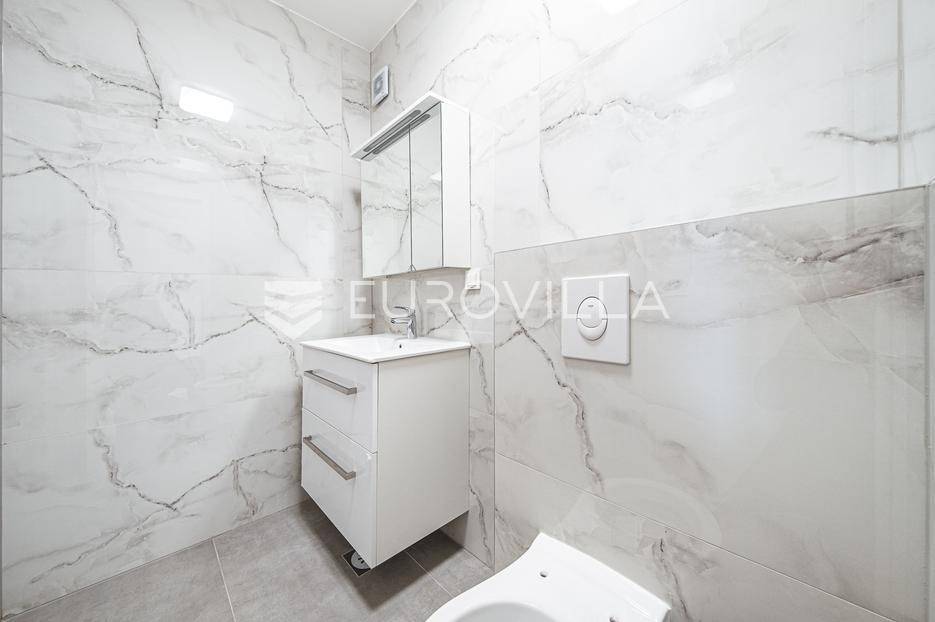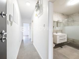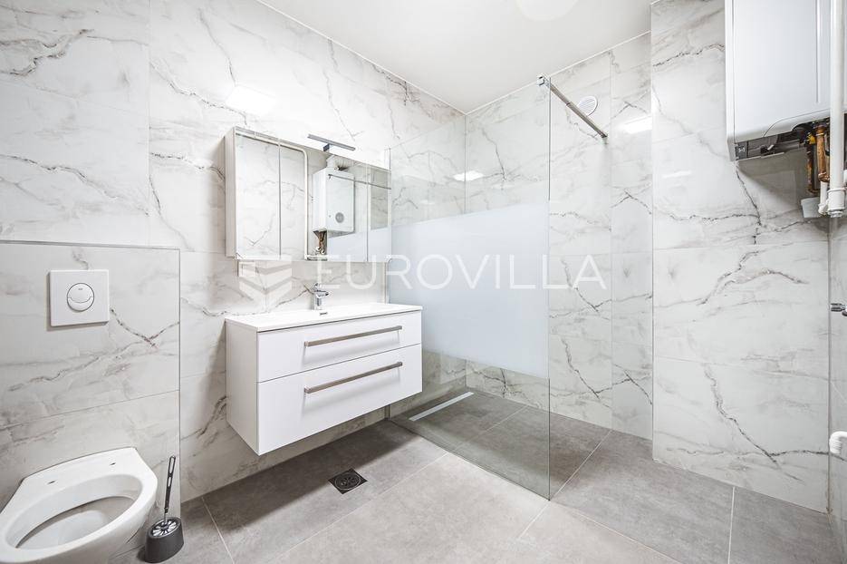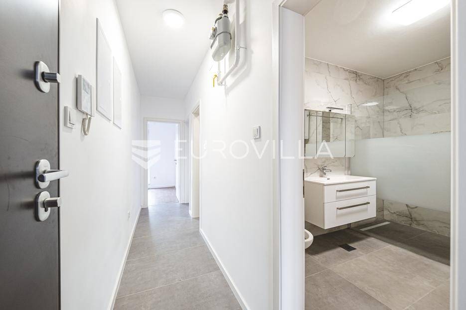 Zagreb, Sesvete, Gaice, trosoban stan površine 95,57 m2 na 1. katu novogradnje od ukupno 3 stana.Stan se sastoji od: dnevnog boravka koji je povezan s blagavaonicom i kuhinjom(open space) s izlazom na natkrivenu terasu, kupaonice, WC, garderobe, spavaće sobe te manje spavaće sobe.Uz stan dolazi i privatni vrt te parking.TLOCRT I POVRŠINEHodnik- 4,80 m2Boravak + kuhinja + blagovaonica - 33,51 m2Kupaonica - 6,32 m²WC - 2,77 m²Garderoba - 1,45 m²Spavaća soba - 10,24 m²Spavaća soba (dječja soba) -8,53 m²Natkrivena terasa - 10, 89m²(5,45m²)Privatni vrt -200 m² (20 m²)Privatni parking - 12,50 m²(2,50m²)Ukupno neto korisne površine - 95,57 m²OPIS ZGRADE I ZAJEDNIČKIH PROSTORIJA- Konstrukcija: armirano-betonska- Vrhunska termo fasada- Bešumne odvodne cijeviOPREMA STANOVA- Podovi: u sanitarnim prostorijama, kuhinjama, ulaznim hodnicima te balkonima postavljene su keramičke pločice 1. klase.- Podne obloge u dnevnim boravcima i sobama izvedene su gotovim lakiranim troslojnim hrastovim parketom 1. klase.- Kupaonice i wc: sanitarija poznatih svjetskih brandova visoke kvalitete (Grohe), Konzolne Wc školjke s ugradbenim vodokotlićima.- Mogućnost automatizacije stana (svijetlo, grijanje, hlađenje...) - uz dogovor.-Stanovi su u završnoj fazi izrade - preostalo uređenje dvorišta te se čeka tehnicki pregled - gotovo i useljivo uskoro.Odlična lokacija, iznimna blizina vrtića, škole, doma zdravlja, pošte, autobusne stanice, dućana i svih ostalih sadržaja.Ne propustite priliku da postanete prvi vlasnik ovog stana.... Više na eurovilla.hr, ID: 686360