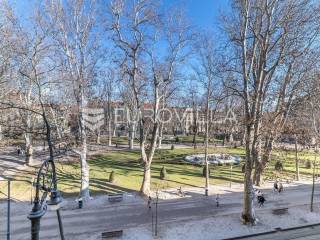 U srcu Zagreba, na Zrinjevcu, nalazi se prekrasan stan od 150 m2 na drugom katu, smješten na izuzetno atraktivnoj lokaciji, okružen brojnim veleposlanstvima. Stan se nalazi u zgradi koja će ove godine proći kroz potpunu obnovu, a sredstva za obnovu su u potpunosti financirana od strane Republike Hrvatske i Grada Zagreba.Ova nekretnina sastoji se od prostranog ulaznog hodnika, šest prostorija, dvije kupaonice te balkona. Stan je podijeljen na dva dijela - manji stan od 55 m2 s ulazom iz dvorišta i pogledom na dvorište, već adaptiran, te veći stan od 92 m2 s ulazom s ulice i pogledom na park Zrinjevac, koji zahtijeva adaptaciju.Visina stropa od 350 cm dodatno naglašava prostranost prostora. Stan je klimatiziran, pružajući udobnost stanarima. S obzirom na svoju jedinstvenu lokaciju i mogućnost ulaganja, ovaj stan predstavlja izvrsnu priliku za investiciju, posebno za dnevni najam. Mogućnost dobivanja 4 apartmana.Ostale informacije na upit.... Više na eurovilla.hr, ID: 687937