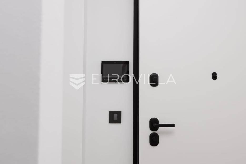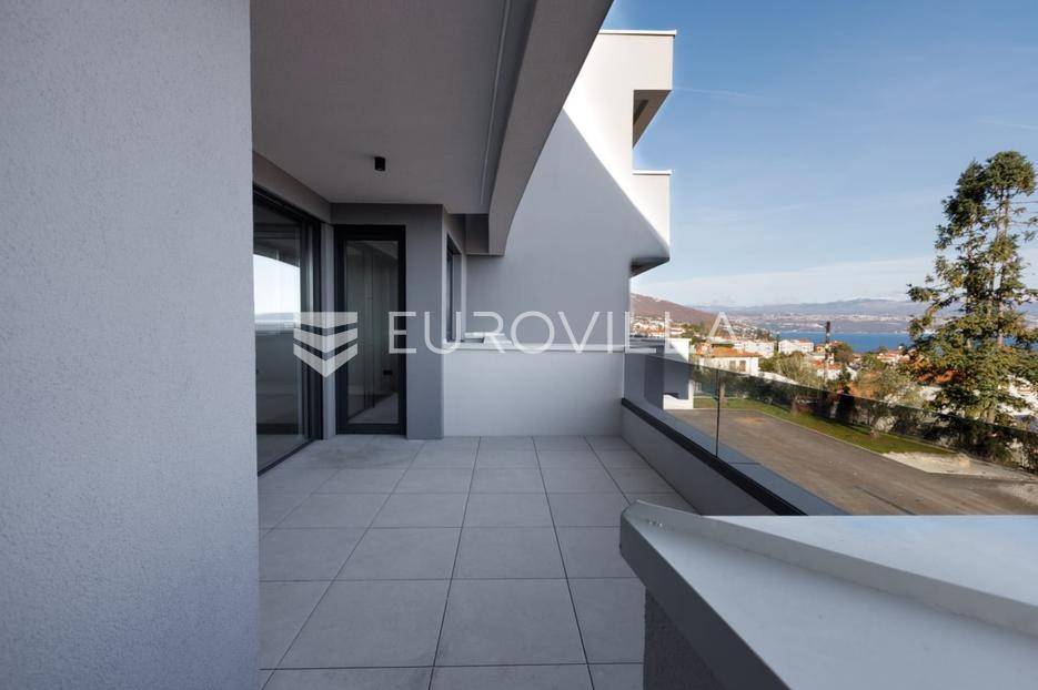 Stan u mirnom dijelu Lovrana svega 400 m centra i mora, u luksuznoj novogradnji površine 86,49 m². Smješten je u prizemlju zgrade sa tri stambene jedinice, no zbog prirodnog nagiba terena, njegova južna strana doseže visinu prvoga kata, čime se osigurava potpuna privatnost i nesmetan pogled na Kvarnerski zaljev.Unutrašnjost stana pažljivo je projektirana kako bi zadovoljila najviše standarde stanovanja. Centralni dio čini prostrani "open space" koji objedinjuje dnevni boravak, kuhinju i blagovaonicu. Iz ovog svijetlog prostora izlazi se na natkrivenu terasu koja služi kao prirodni produžetak dnevnog prostora. Uz dvije udobne spavaće sobe, stan raspolaže s dvije kupaonice te dodatnim gostinjskim toaletom.Posebnost ove nekretnine je njezina pripadajuća okućnica od 98,12 m², koja pruža rijedak osjećaj privatnosti i slobode u urbanom okruženju. Pitanje parkinga riješeno je tako da stanu pripada spremište, jedno parkirno mjesto u garaži te dodatno vanjsko parkirno mjesto unutar posjeda zgrade.Tehnička opremljenost prati beskompromisnu kvalitetu gradnje. Stan je opremljen vrhunskom aluminijskom stolarijom, podnim grijanjem pogonjenim dizalicom topline te sustavom klimatizacije u svakoj prostoriji. Završni detalji, poput vrhunske keramike i sanitarija, dodatno naglašavaju moderan i profinjen karakter ovog prostora.Ova nekretnina predstavlja rijetku priliku na tržištu za kupce koji traže vrhunsku kvalitetu, blizinu Opatije i mirnu oazu nadohvat mora.Za dodatne informacije slobodno nas kontaktirajte.... Više na eurovilla.hr, ID: 720946