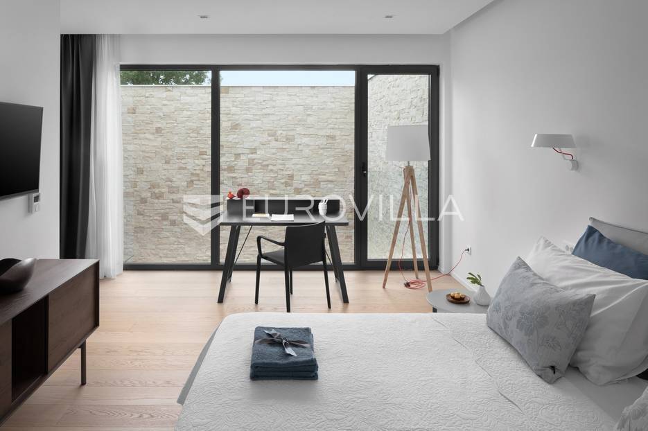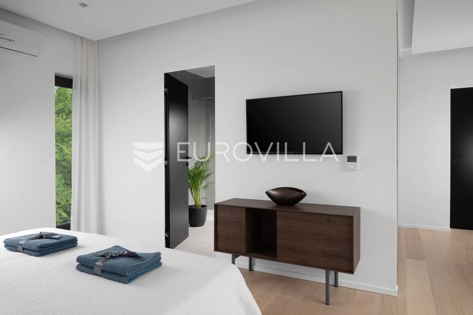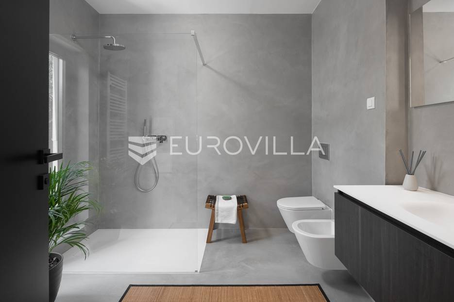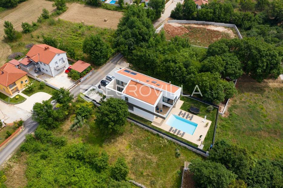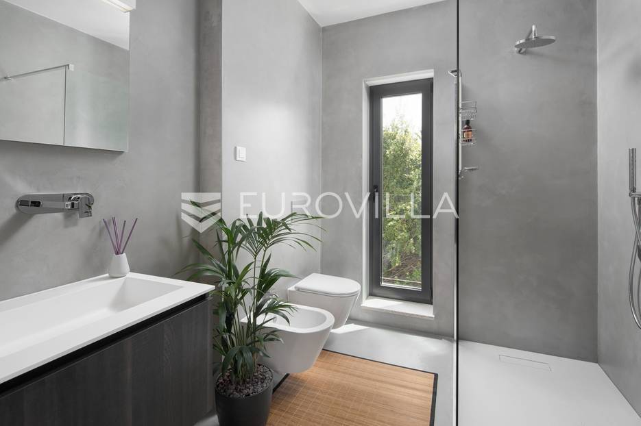 U Ližnjanu, na svega 2 kilometra od mora i prekrasnih plaža, smještena je ova impresivna luksuzna vila koja nudi savršenu ravnotežu privatnosti, elegancije i funkcionalnosti. Vila se prostire na 400 m2 stambene površine, dok okućnica obuhvaća 900 m2 pažljivo uređenog prostora. Izgrađena je 2019. godine, s naglaskom na kvalitetu gradnje, vrhunsku izolaciju i suvremena tehnička rješenja.Arhitektonski koncept vile poseban je i dojmljiv – u interijer se ulazi kroz atrij preko elegantnog mostića, što nekretnini daje jedinstven karakter. Kuća se prostire na tri etaže. U podrumu se nalaze strojarnica, toalet i prostorija predviđena za zabavu i rekreaciju. Prizemlje čini prostrana, moderno opremljena kuhinja s blagovaonicom te elegantan dnevni boravak ispunjen prirodnim svjetlom, idealan za opuštanje u potpunoj privatnosti. Na istoj etaži smještena je i spavaća soba prilagođena osobama s posebnim potrebama te dodatni toalet.Na katu se nalazi galerija s prostorom za relaksaciju te tri komforne spavaće sobe, svaka s vlastitom kupaonicom. Dvije kupaonice opremljene su tuš kabinom, dok master spavaća soba ima kadu i pogled na bazen. Dvije sobe gledaju na atrij, dok jedna ima krovne prozore koji prostoru daju dodatnu svjetlost i prozračnost.U potpuno ograđenom i uređenom dvorištu nalazi se grijani bazen sa slanom vodom površine 50 m2, okružen sunčalištem koje pruža idealan prostor za uživanje tijekom toplih ljetnih dana. Okućnica je opremljena automatskim sustavom navodnjavanja, roštiljem i trampolinom, a uz bazen su smješteni vanjski toalet i solarni tuš. Vila je opremljena podnim grijanjem u svim prostorijama te sustavom hlađenja putem dizalice topline, a dodatnu sigurnost osiguravaju video nadzor i alarmni sustav.Ova iznimna nekretnina predstavlja savršen izbor za luksuzan obiteljski život, odmor ili kao investiciju za turistički najam na jednoj od najpoželjnijih lokacija u Istri.Za više informacija ili dogovor oko razgledavanja stojimo Vam na raspolaganju.... Više na eurovilla.hr, ID: 722743
