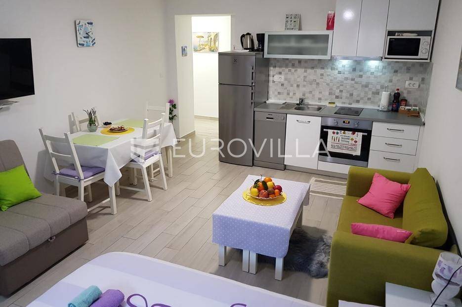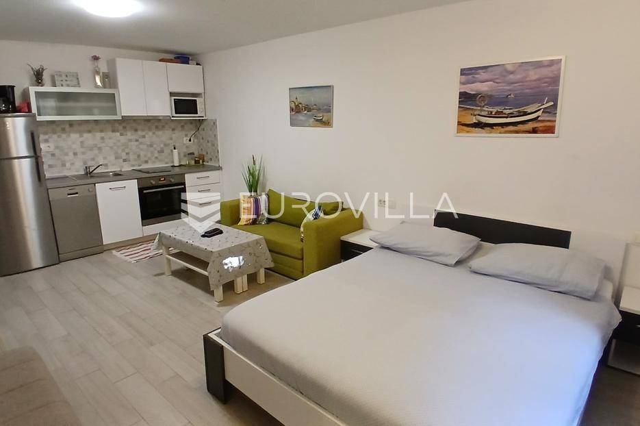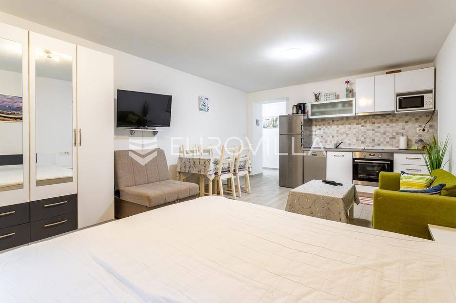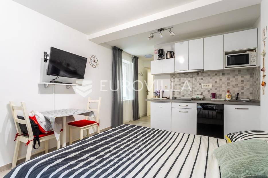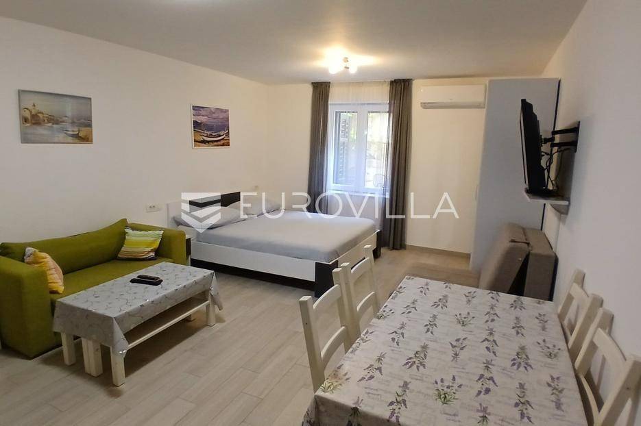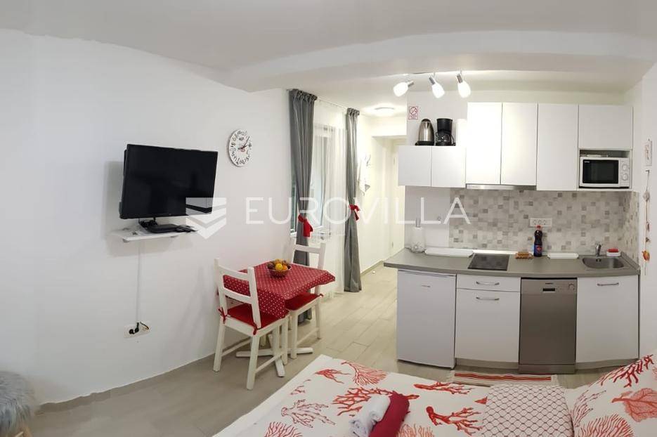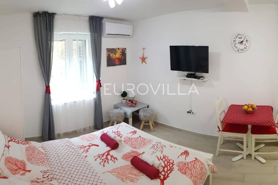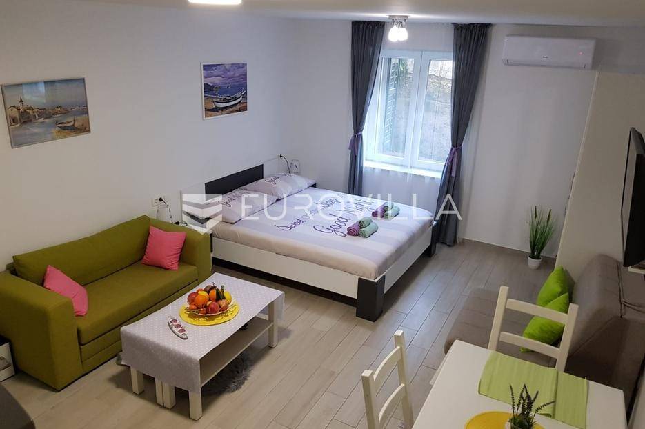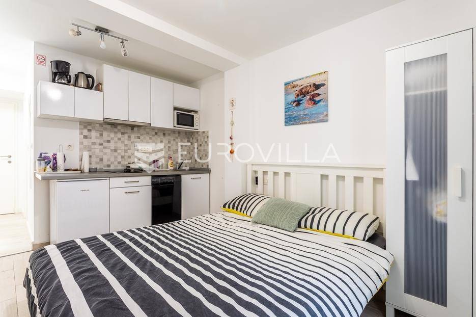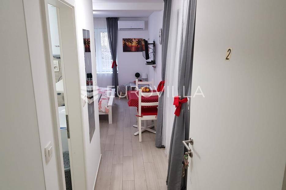 Split, Bol, stan prenamjenjen u dva namještena studio apartmana u centru grada.Ukupna površina ovog južno orijentiranog stana iznosi 55,54 m², a funkcionalan raspored omogućuje korištenje kao dva studio apartmana ili prenamjenu u jednu stambenu jedinicu s više soba. Sadašnji raspored nudi s ulaza u stan prvo zajednički hodnik, a zatim dva odvojena ulaza za studio apartmane.Apartman 1 sastoji se od prostora koji obuhvaća kuhinju s blagovaonicom i dnevnim boravkom te bračni krevet, zasebnog hodnika i kupaonice.Apartman 2 sastoji se od kupaonice, hodnika te prostora s kuhinjom, blagovaonicom i bračnim krevetom.Dodatna prednost ove nekretnine je spremište u hodniku zgrade, koje pruža praktičan prostor za pohranu stvari koje se ne koriste svakodnevno. Postoji i zajedničko dvorište gdje mogućnost korištenja imaju isključivo stanari ove zgrade, obzirom da je ono iza zaključanih vrata.Zgrada se nalazi u mirnom okruženju, a istovremeno u neposrednoj blizini svih važnih sadržaja: trgovina, restorana, kafića, kulturnih znamenitosti, Pravnog fakulteta i javnog prijevoza. Prekrasna splitska Riva udaljena je svega 15 minuta hoda od stana.Idealna nekretnina za one koji traže investiciju s potencijalom za turistički najam ili za one koji žele živjeti u samom centru grada, na dohvat ruke svim gradskim sadržajima.Za sve dodatne informacije stojimo vam na raspolaganju.... Više na eurovilla.hr, ID: 747464