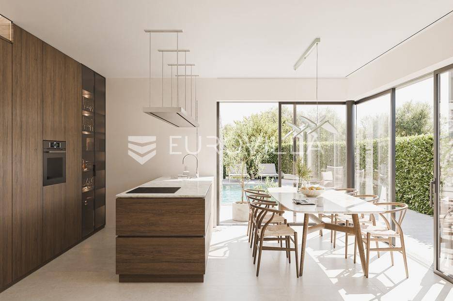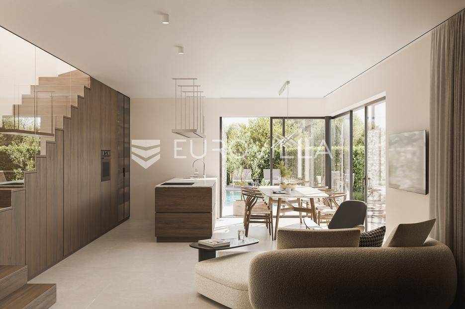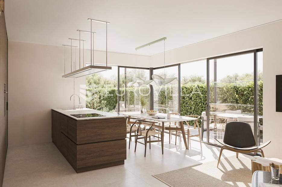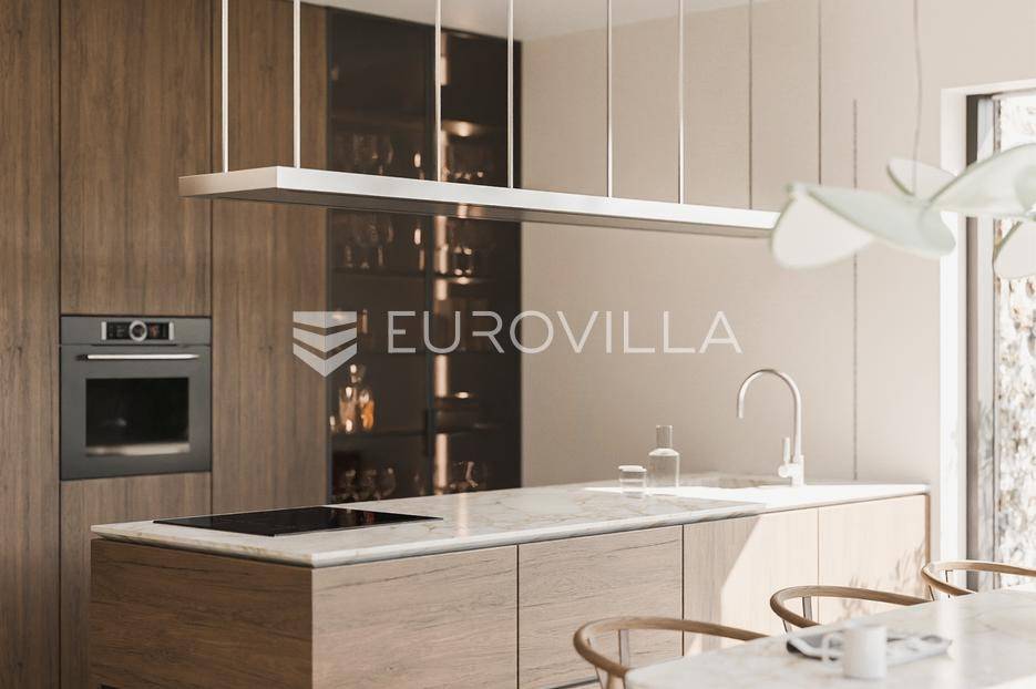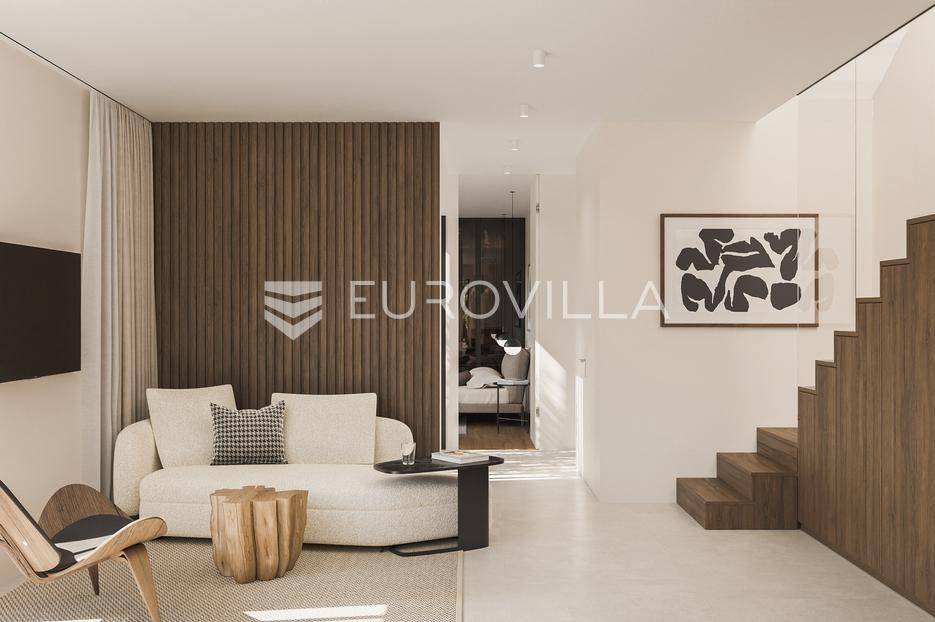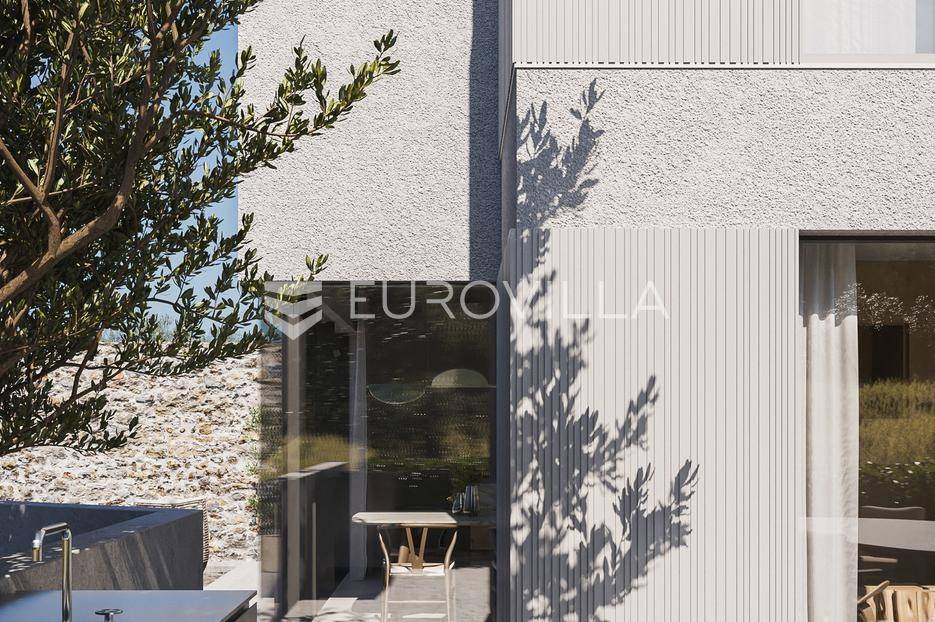 Murter, luksuzni apartman s bazenom i pogledom na more, neto korisne površine 100,97 m². Stanu pripada i veliki dio dvorišta, te parkirno mjesto. Stan se prostire kroz dvije etaže, prizemlje i prvi kat. Površina zatvorenog prostora je 84,50 m², a površina dvorišta koje pripada stanu je 191,2 m².Prizemlje se sastoji od dnevnog boravka s kuhinjom i blagovaonicom, jedne spavaće sobe i kupaonice. Iz boravka se izlazi u dvorište i prostor kraj bazena. Unutarnjim stepenicama dolazi se na prvi kat gdje se nalaze još dvije spavaće sobe i kupaonica. Stan ima ugrađeno podno i stropno grijanje i hlađenje. Prodaje se bez namještaja.Zgrada se nalazi svega 190 metara od mora. Riječ je o luksuznom projektu koji se sastoji od ukupno 4 apartmana, tako da osigurava mir i udobnost. Lokacija stana je odlična jer kratkom šetnjom ste i u centru Murtera, ali i na poznatoj plaži Podvrške.Za sve ostale informacije stojimo na raspolaganju.... Više na eurovilla.hr, ID: 749164