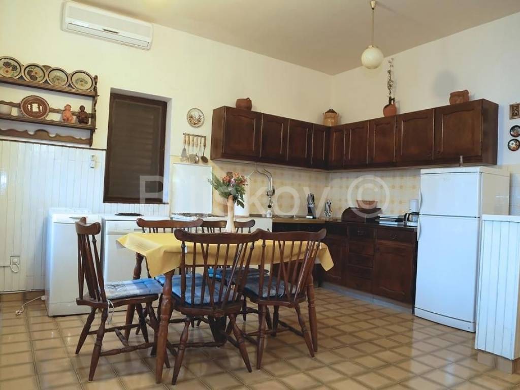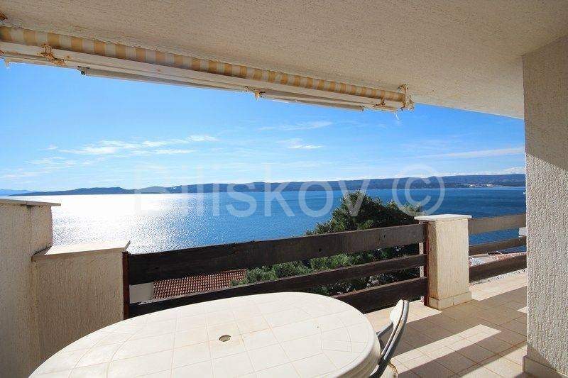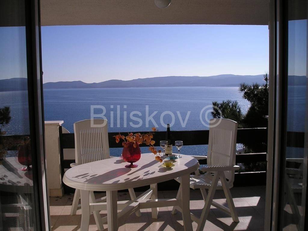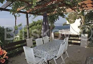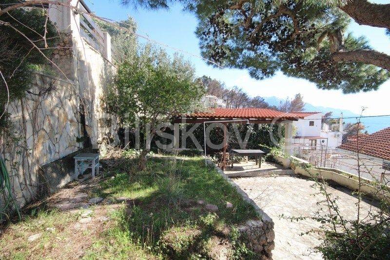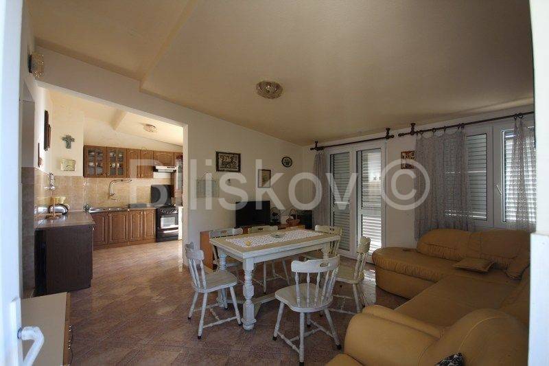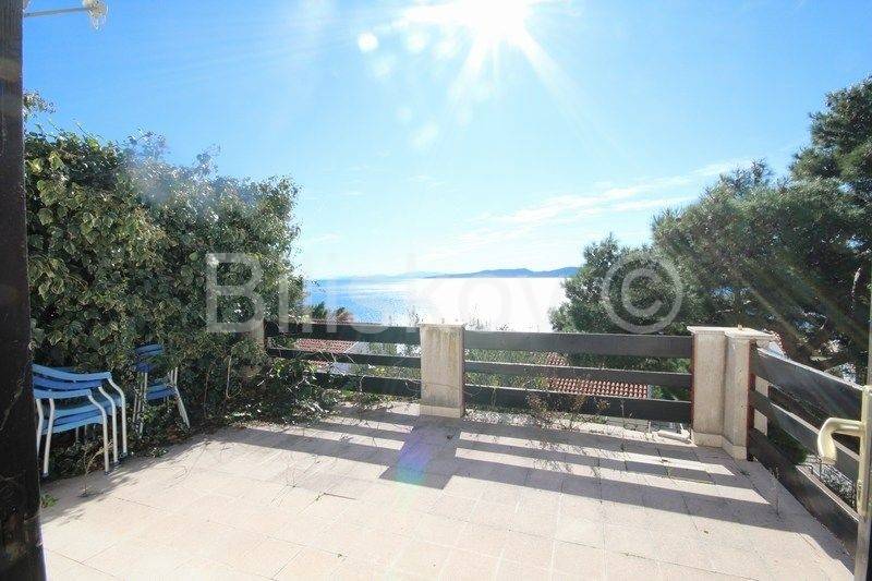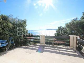 Marušići, semi-detached house for sale with open sea view There are two garages in the basement. On the ground floor there is a two-bedroom apartment of 55 m2, consisting of two rooms, a kitchen with a living room and a bathroom. On the first floor there is a two-bedroom apartment of 55 m2, the same layout as the apartment on the ground floor. Both floors are cascaded on the land. The plot is 340 m2, the houses occupy 128 m2 in terms of layout, and the surrounding land 212 m2. Each floor offers an unforgettable open view of the sea. On the ground floor there is a garden with a large table for socializing, next to which there is a fireplace, and water connections (sink), as well as an outdoor shower. The house is sold with equipment and furniture. The beach is approximately 70 m away as the crow flies, and there are shops and restaurants nearby. Two residential units provide the possibility of combining family living and tourism. The possibility of returning the invested funds through tourism is an additional advantage of purchasing this property. Ownership in order. www.biliskov.com ID: 15838-1