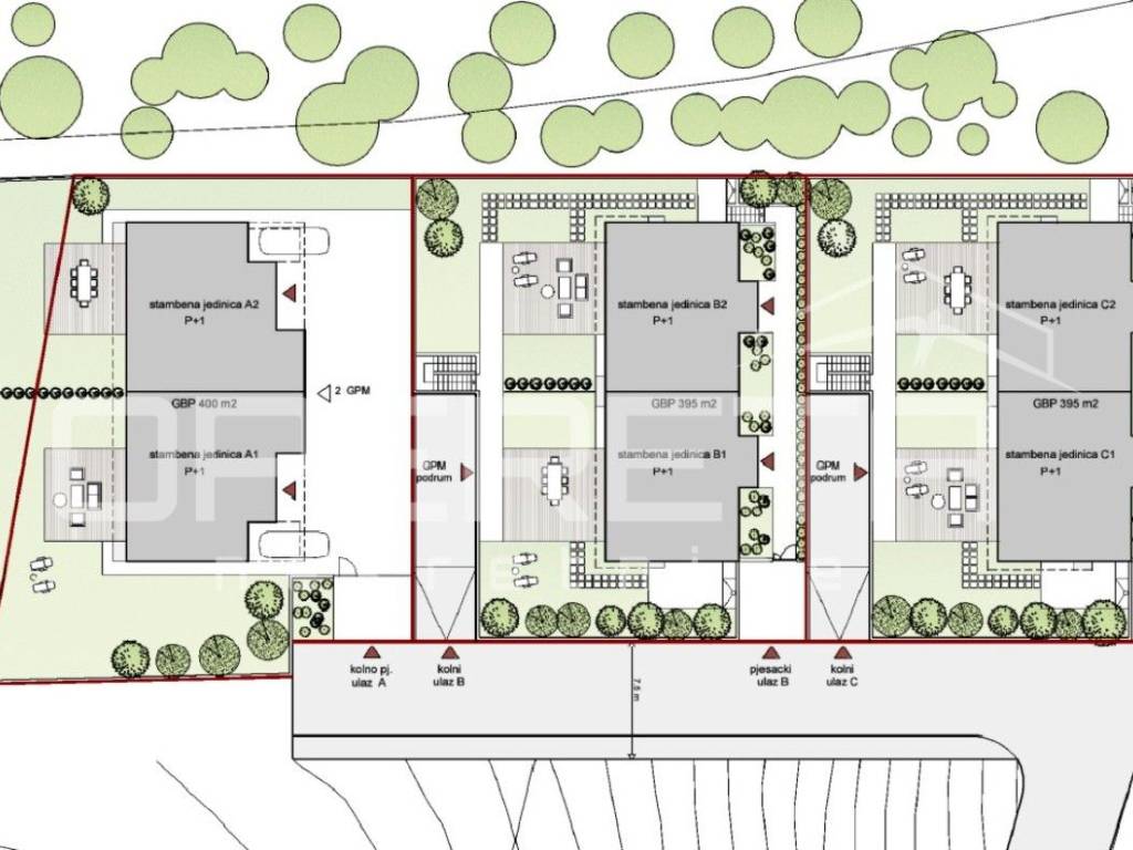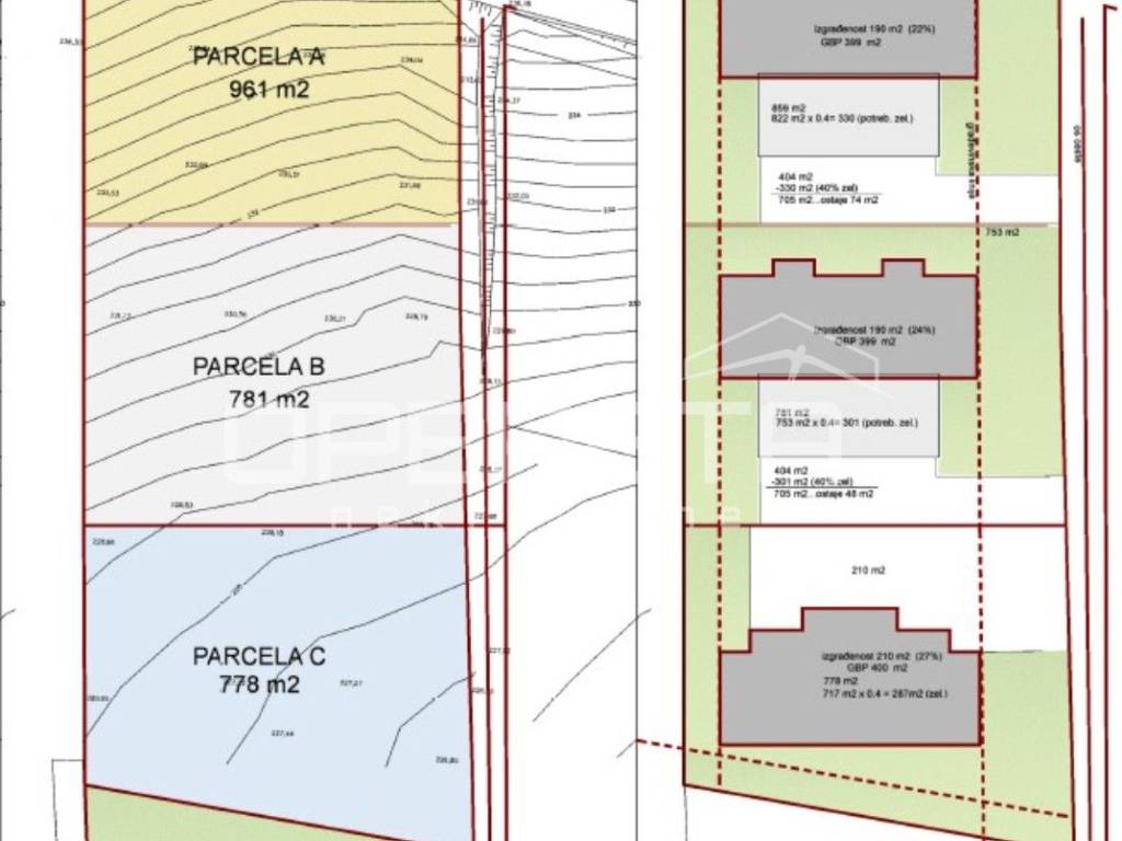 Prodaje se odlično, pravilno zemljište blagog nagiba za izgradnju ukupno 3 ili 4 objekta po max 400 brp-a. Idealno za gradnju urbanih vila ili obiteljskih kuća.