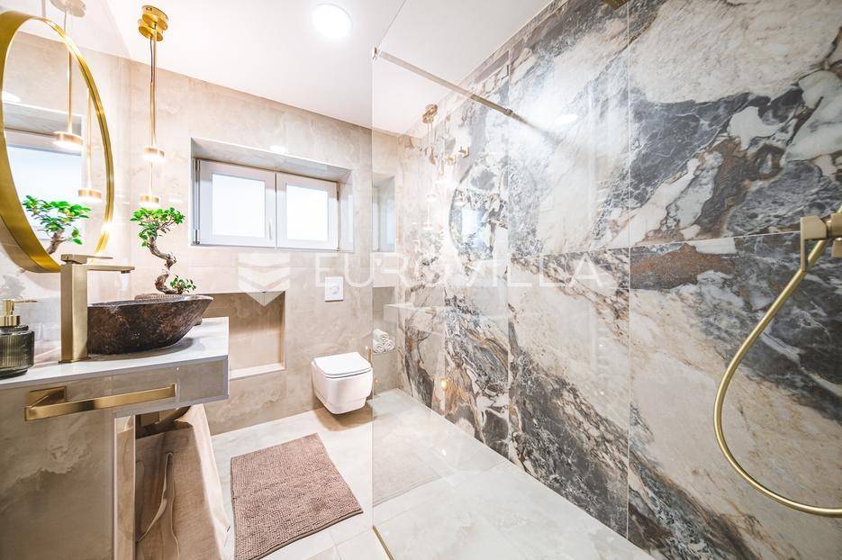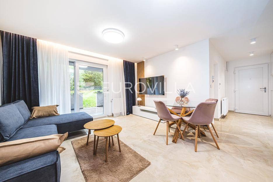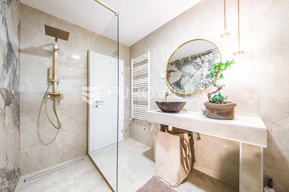 Zagreb, Gračani odličan trosoban stan 80 m² u visokom prizemlju manje stambene zgrade (adaptirane 2023./2024.) u mirnoj slijepoj ulici.Sastoji se od dnevnog boravka, kuhinje i blagovaonice u open space konceptu s izlazom na terasu i zajednički vrt, dvije spavaće sobe (glavna s walk-in ormarom, manja s vlastitom terasom), kupaonice te ostave(vešeraja).Opremljen je smart home sistemom, podnim grijanjem i protuprovalnim vratima te je u potpunosti namješten i opremljen svim potrebnim uređajima, spreman za odmah useljenje. Grijanje je etažno plinsko centralno uz dodatno grijanje.Uz stan dolaze garaža(37m2), dodatno vanjsko nenatkriveno parkirno mjesto i zajednički vrt.Odlična lokacija, okružena zelenilom i prirodom. Žičara Sljeme udaljena je 800 m, neposredna blizina stana tramvajske i autobusne stanica s linijama prema Mihaljevcu, Britanskom i Kvaternikovom trgu, Markuševcu, Draškovićevoj i okretištu Svetice.Za više informacija slobodno nam se javite!... Više na eurovilla.hr, ID: 789383