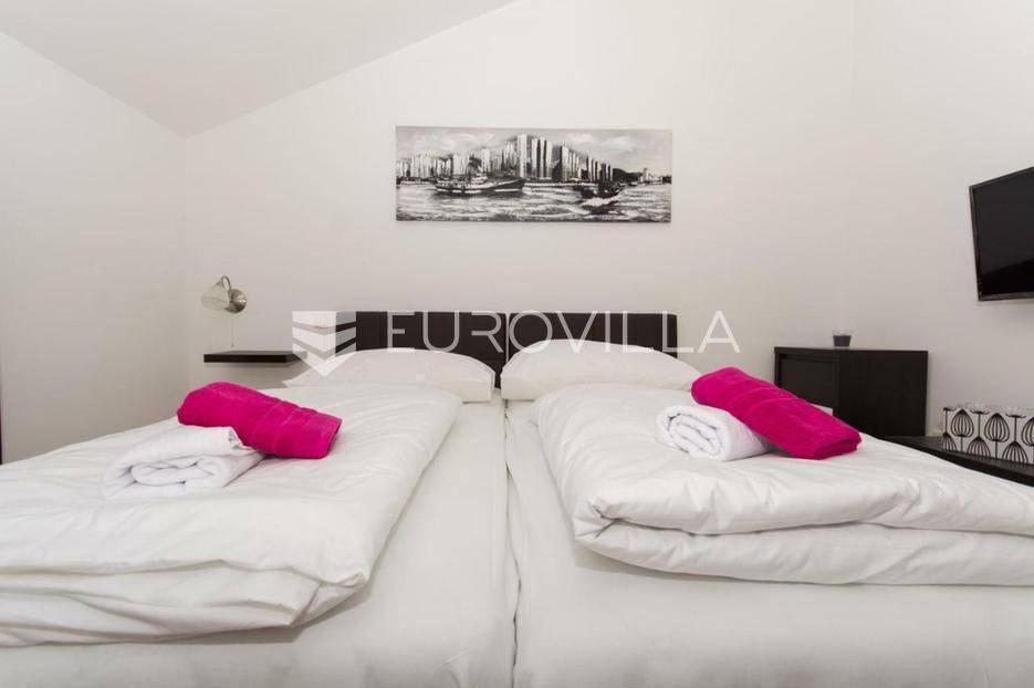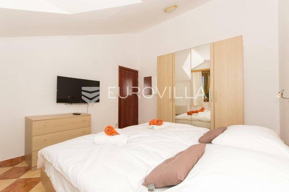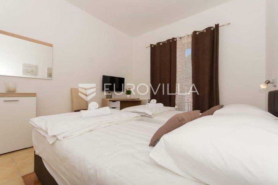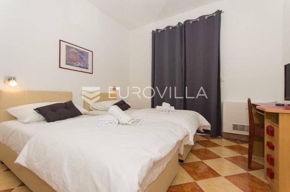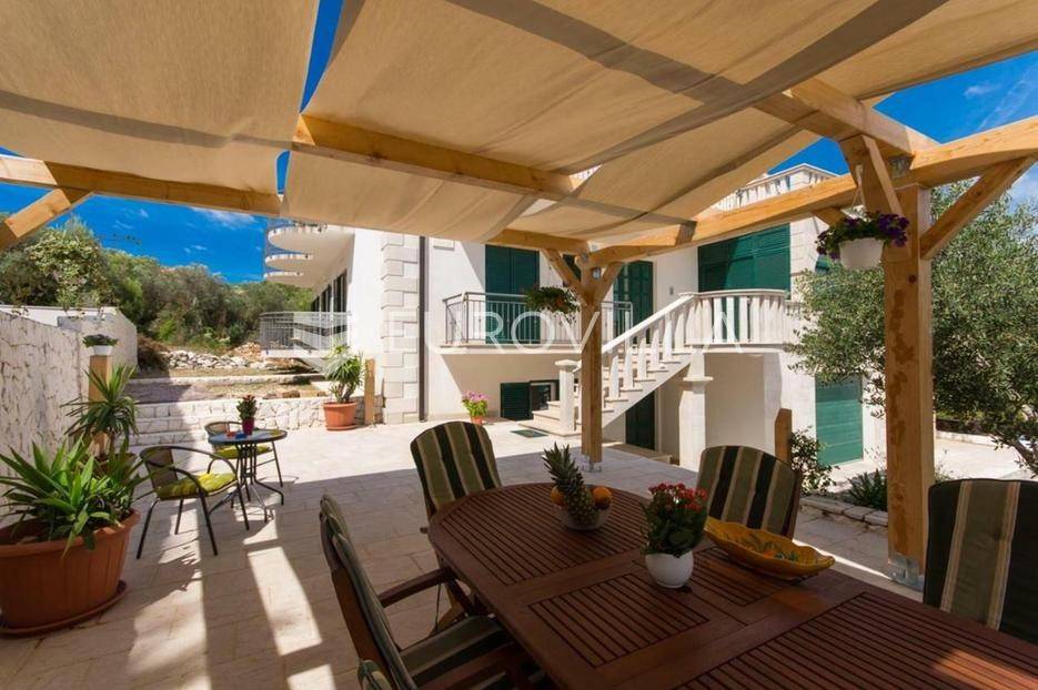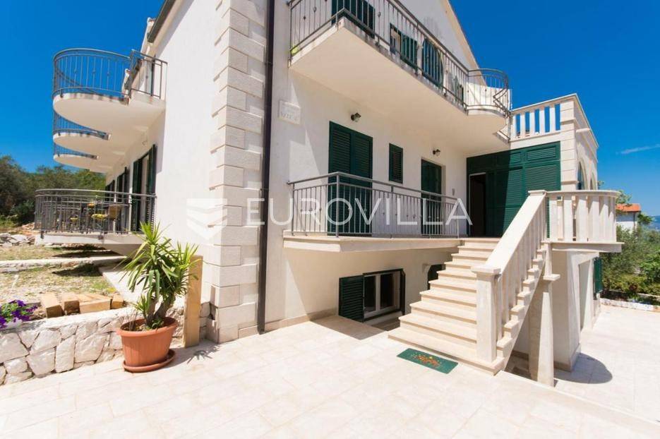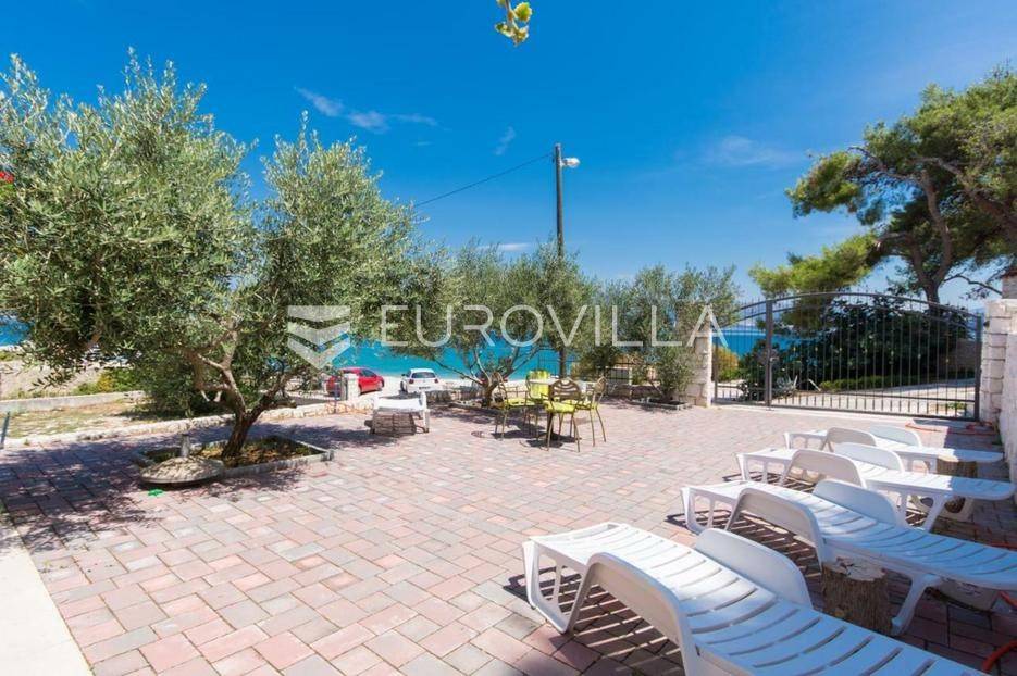 U Slatinama na otoku Čiovu, u neposrednoj blizini Trogira, smještena je apartmanska kuća razvedena na tri etaže, u prvom redu do mora.Nekretnina se sastoji od tri jednosobna apartmana, sedam soba s pripadajućim kupaonicama i balkonima te prostranog zajedničkog salona.Objekt već dugi niz godina uspješno posluje u turističkom najmu, ostvarujući odličan povrat ulaganja zahvaljujući iznimnoj lokaciji, velikom kapacitetu i neposrednoj blizini mora. Održavanje i režijski troškovi nisu uključeni u cijenu.Za sve dodatne informacije i dogovor oko razgledavanja, stojimo vam na raspolaganju.... Više na eurovilla.hr, ID: 802047