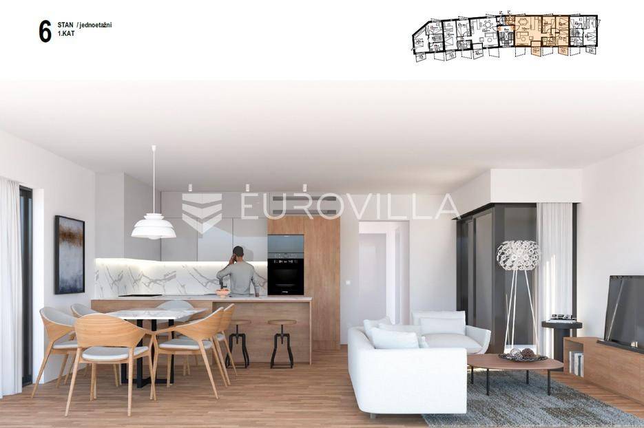 Ludbreg, Centar, moderan četverosoban stan, ukupno korisne površine 82,75 m2.Stan površine 78,48m2, sastoji se od garderobe s WC-om, kuhinje, blagovaonice i dnevnog boravka u open space konceptu, hodnika, tri spavaće sobe, kupaonice i spremišta u podrumu 3,15m2.Projekt novogradnje u centru Ludbrega sastoji se od 8 modernih stanova. Stanovi se prostiru na tri etaže (podrum, prizemlje, 2 kata), a sama građevina pruža dvostranu orijentaciju stanova (sjeveroistok i jugozapad), što osigurava optimalnu količinu prirodne svjetlosti. Useljenje planirano za proljeće 2027. godine.Zgrada je projektirana s armiranobetonskim sustavom debljine 20 cm i vrhunskom toplinskom izolacijom od mineralne vune, koja jamči izuzetnu energetsku učinkovitost i udobnost prostora.Stanovi su opremljeni:dizalicama toplinevelikim staklenim stijenkama s troslojnim staklima punjenim argonomprotuprovalnim i protupožarnim ulaznim vratimazavršne podne obloge bit će izvedene od parketa i keramike, ovisno o namjeni prostorijeOvaj stan idealan je za obitelj koji traže moderan, energetski učinkovit stan u blizini svih sadržaja centra Ludbrega.Za više informacija i dogovor o razgledu, slobodno nas kontaktirajte!... Više na eurovilla.hr, ID: 864002