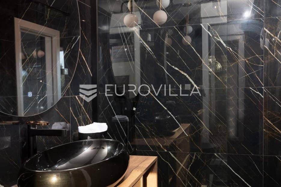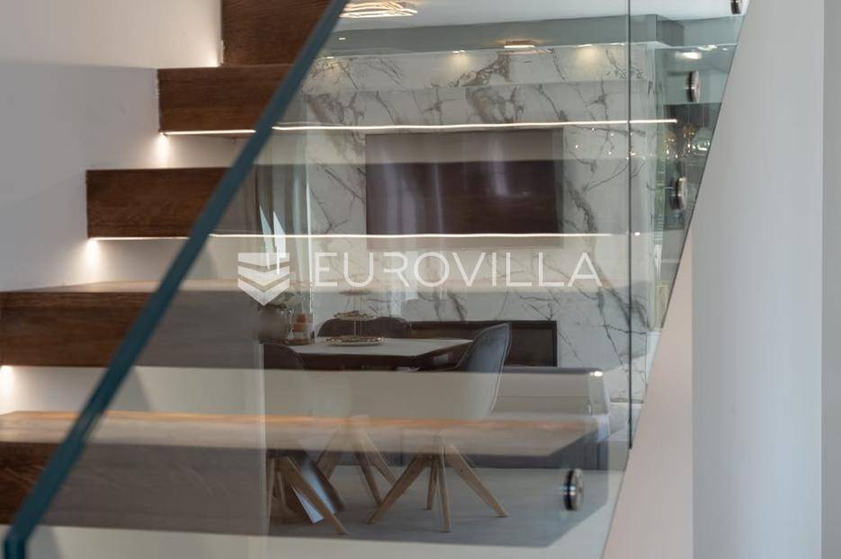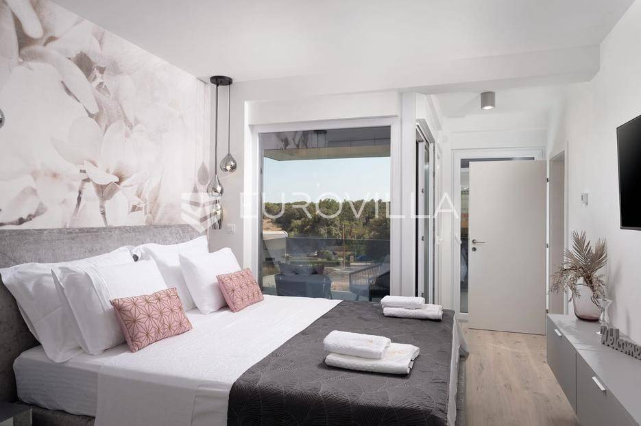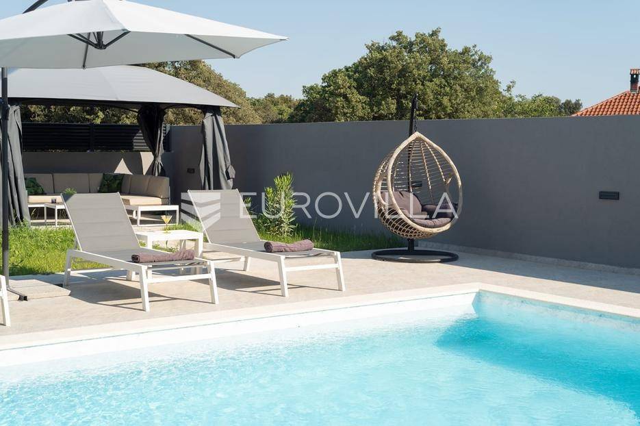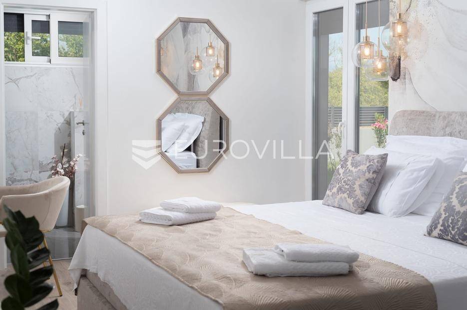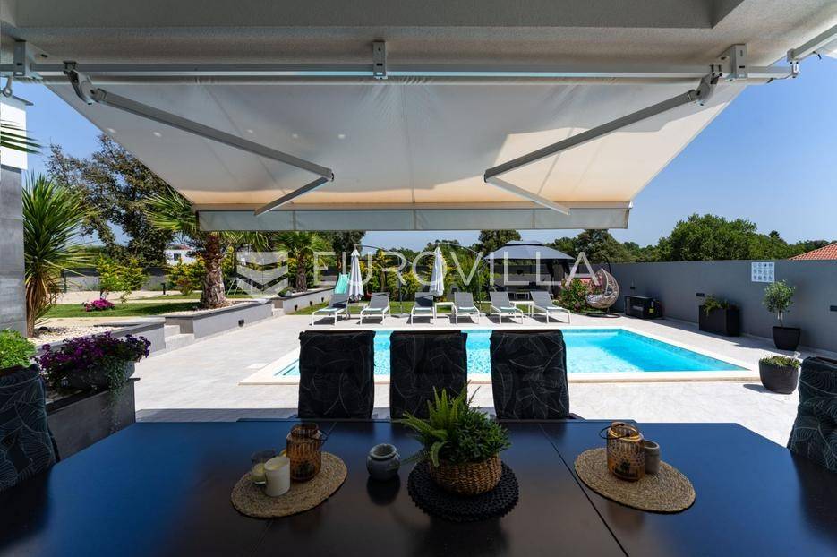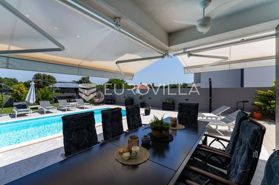 Zadar, Zaton, kuća s bazenom nalazi se na površini zemljišta od 730 m2.Prizemlje kuće sastoji se od ulaznog prostora, gostinjskog wc-a, spremišta, spavaće sobe i pripadajuće kupaonice, kuhinje, blagovaonice i dnevnog boravka, površina prizemlja iznosi 98,19 m2.Gornja etaža sastoji se od hodnika, tri spavaće sobe s pripadajućim kupaonicama i nenatkrivenim terasama.U prekrasno uređenom vrtu s automatskim navodnjavanjem okoliša, nalazi se i grijani bazen te sunčalište, kao i prostor za blagovanje.Kuća je kompletno i moderno uređena i kao takva se prodaje.Idealna je za obiteljski život, ali i kao investicija u turizmu budući da već ima uhodan posao.Udaljenost od mora iznosi 400 metara.Više informacija na upit.... Više na eurovilla.hr, ID: 869049