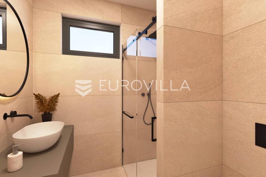 Sv. Filip i Jakov, moderna stambena zgrada s četiri stambene jedinici u blizini mora.S3 Stan na prvom katu sastoji se od ulaznog prostora, dvije prostrane spavaće sobe, kupaonice, gostinjskog wc-a, otvorenog koncepta kuhinje, blagovaonice i dnevnog boravka, spremišta te natkrivene terase veličine 9,84 m2.Stanu pripada jedno parkirno mjesto.Lokacija ovog stana je odlična, uvučena je sa glavne ceste što pruža mir, a nalazi se u neposrednoj blizini plaža, šuma i parkova, a u blizini je i centar mjesta do kojeg se može doći laganom šetnjom.U izgradnji se koristi najsuvremeniji materijal i kvalitetna oprema.Više informacija na upit.... Više na eurovilla.hr, ID: 874505