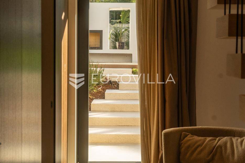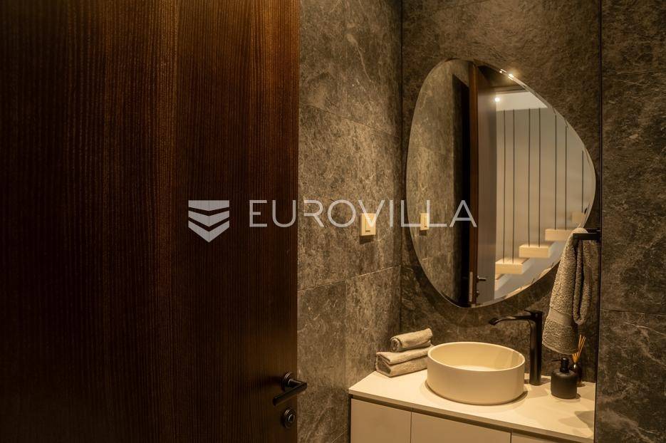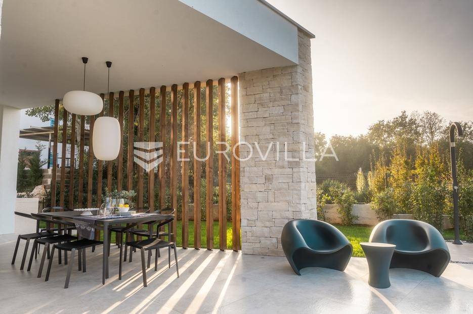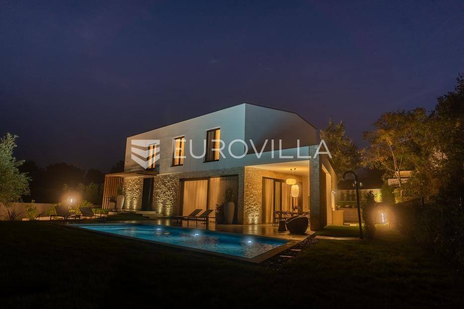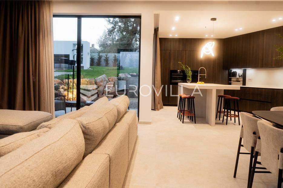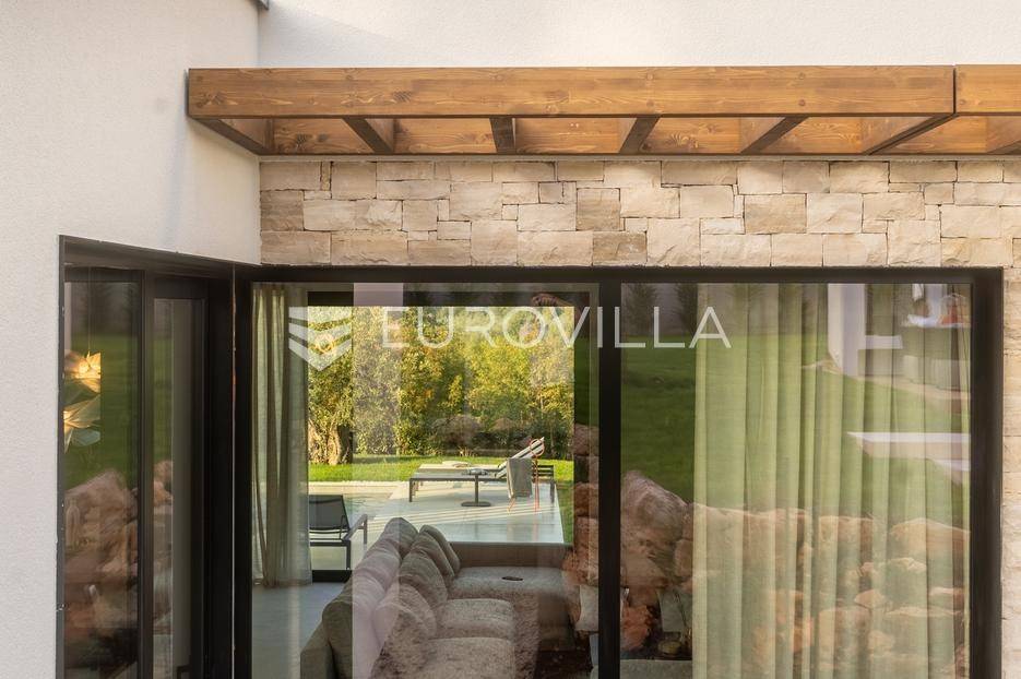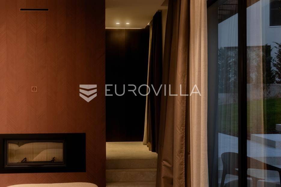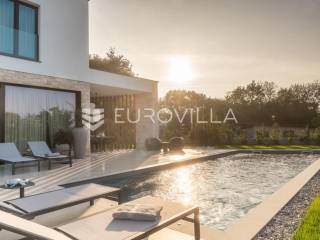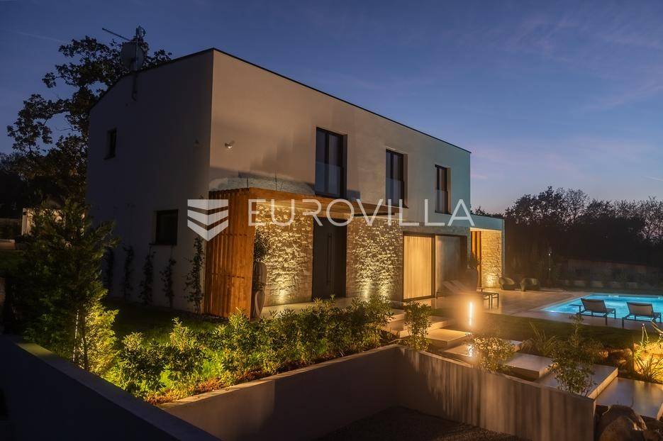 Istra - Marasi. Na prodaju je moderna, luksuzna i vrhunski izvedena samostojeća vila od 225 m², smještena na zemljištu od 1000 m².Tlocrt je funkcionalno osmišljen na dvije etaže.U prizemlju se nalaze ulazni hodnik, gospodarska prostorija, WC te prostor predviđen za saunu ili fitness. Prostrani dnevni boravak s kuhinjom i blagovaonicom izlazi na natkrivenu terasu.Na katu se nalaze tri udobne spavaće sobe, svaka s vlastitom kupaonicom, što osigurava maksimalnu privatnost i komfor.Vila je građena s naglaskom na kvalitetu i dugotrajnost - korišteni su vrhunski materijali i oprema. Posebno se ističu aluminijska stolarija, podno grijanje putem dizalice topline, klima uređaji u svim prostorijama, parket i keramika prvoklasne kvalitete te dizajnerski namještaj renomiranih talijanskih brandova. Visina stropa od 3 m dodatno naglašava osjećaj prostranosti. Kuhinja je potpuno opremljena aparatima Miele, Liebherr i Faber.Okućnica je jednako impresivna - uređena je mediteranskim biljem, s lounge zonom i kaminom, bazenom površine 37 m² s masažnim mlaznicama i rasvjetom, kao i terasom s roštiljem, sudoperom i radnom pločom. Poseban detalj su atraktivne dizajnerske betonske stepenice koje vode kroz dvorište.Lokacija vile pruža potpunu privatnost - nalazi se na rubu građevinske zone, s otvorenim pogledima na maslinike i voćnjake, dok se s gornje etaže proteže pogled sve do mora.Ova nekretnina je pravi izbor za one koji traže luksuz, udobnost i mir u istarskom okruženju.Preporuka agencije. Za sve upite stojimo na raspolaganju.... Više na eurovilla.hr, ID: 879063