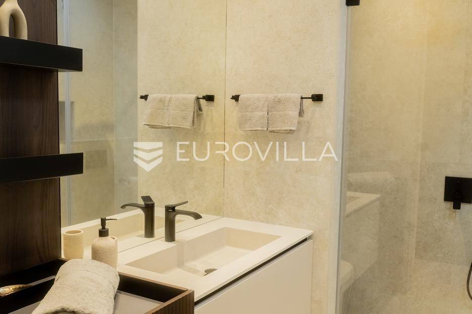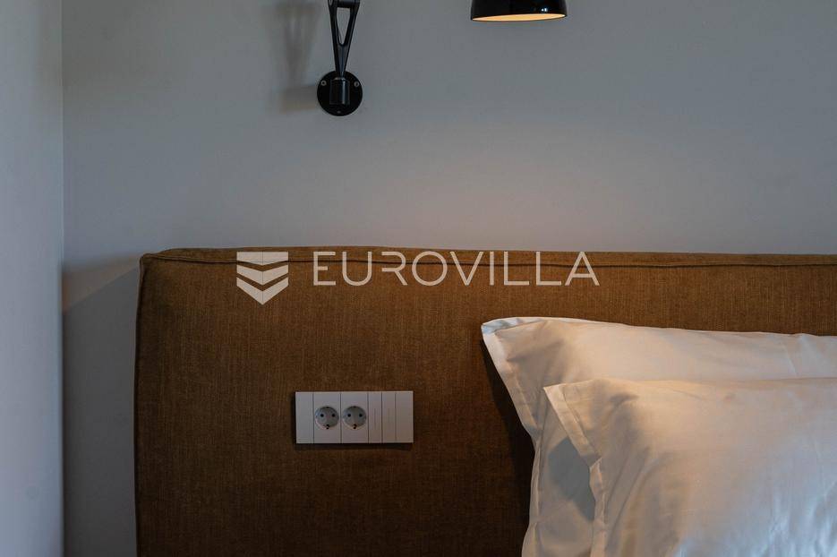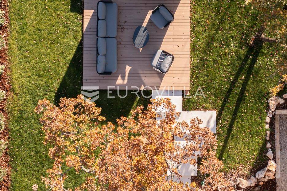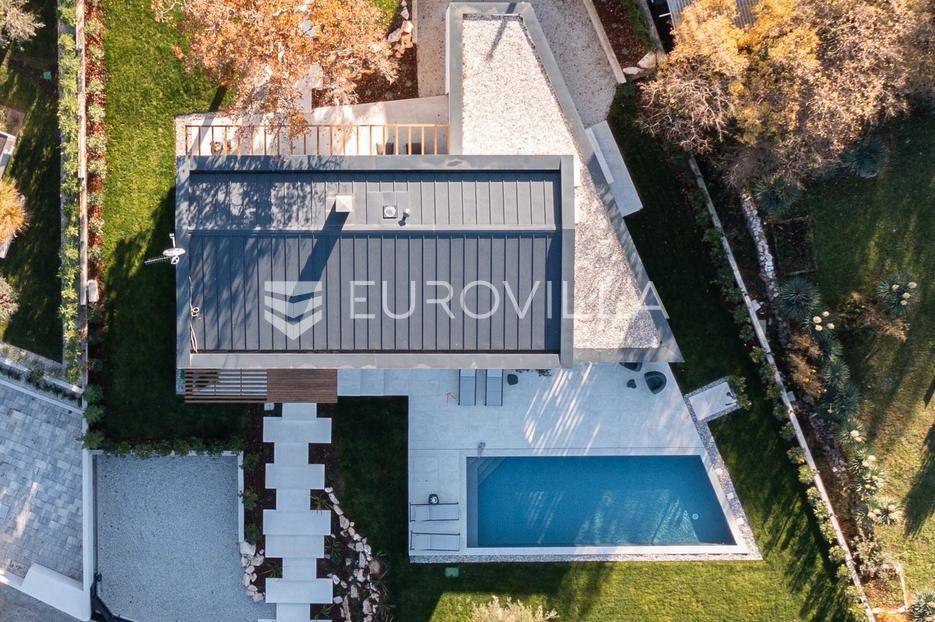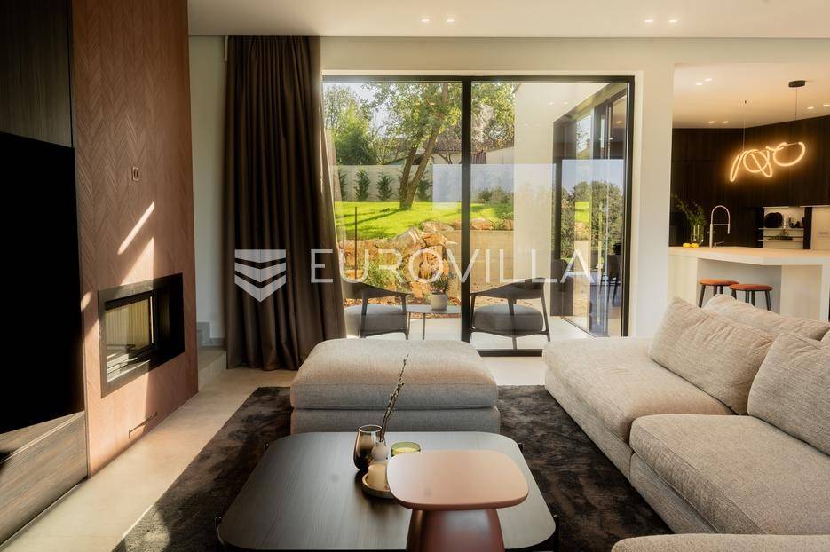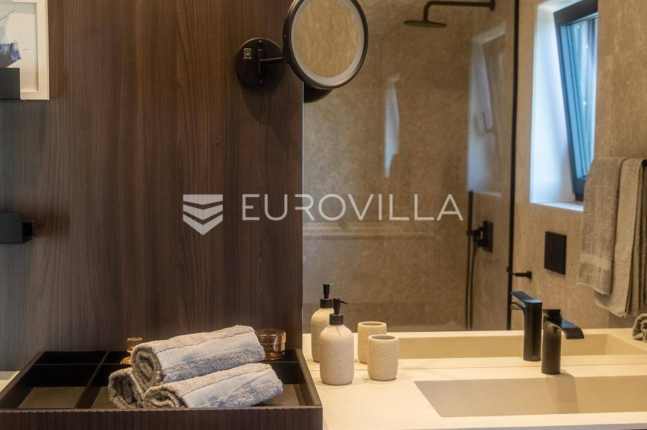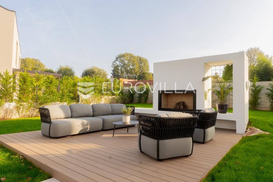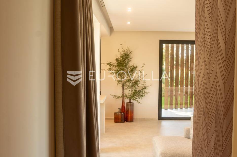 Istra - Marasi. Na prodaju je moderna, luksuzna i vrhunski izvedena samostojeća vila od 225 m², smještena na zemljištu od 1000 m².Tlocrt je funkcionalno osmišljen na dvije etaže.U prizemlju se nalaze ulazni hodnik, gospodarska prostorija, WC te prostor predviđen za saunu ili fitness. Prostrani dnevni boravak s kuhinjom i blagovaonicom izlazi na natkrivenu terasu.Na katu se nalaze tri udobne spavaće sobe, svaka s vlastitom kupaonicom, što osigurava maksimalnu privatnost i komfor.Vila je građena s naglaskom na kvalitetu i dugotrajnost - korišteni su vrhunski materijali i oprema. Posebno se ističu aluminijska stolarija, podno grijanje putem dizalice topline, klima uređaji u svim prostorijama, parket i keramika prvoklasne kvalitete te dizajnerski namještaj renomiranih talijanskih brandova. Visina stropa od 3 m dodatno naglašava osjećaj prostranosti. Kuhinja je potpuno opremljena aparatima Miele, Liebherr i Faber.Okućnica je jednako impresivna - uređena je mediteranskim biljem, s lounge zonom i kaminom, bazenom površine 37 m² s masažnim mlaznicama i rasvjetom, kao i terasom s roštiljem, sudoperom i radnom pločom. Poseban detalj su atraktivne dizajnerske betonske stepenice koje vode kroz dvorište.Lokacija vile pruža potpunu privatnost - nalazi se na rubu građevinske zone, s otvorenim pogledima na maslinike i voćnjake, dok se s gornje etaže proteže pogled sve do mora.Ova nekretnina je pravi izbor za one koji traže luksuz, udobnost i mir u istarskom okruženju.Preporuka agencije. Za sve upite stojimo na raspolaganju.... Više na eurovilla.hr, ID: 879063