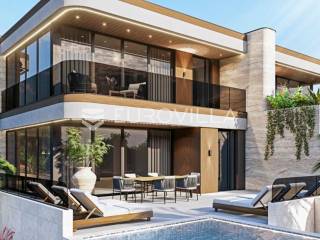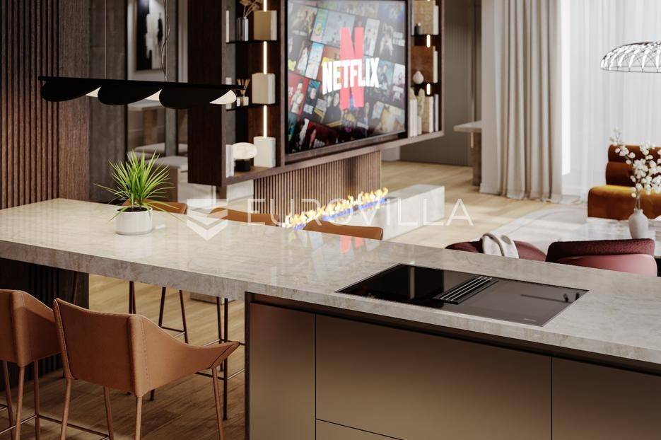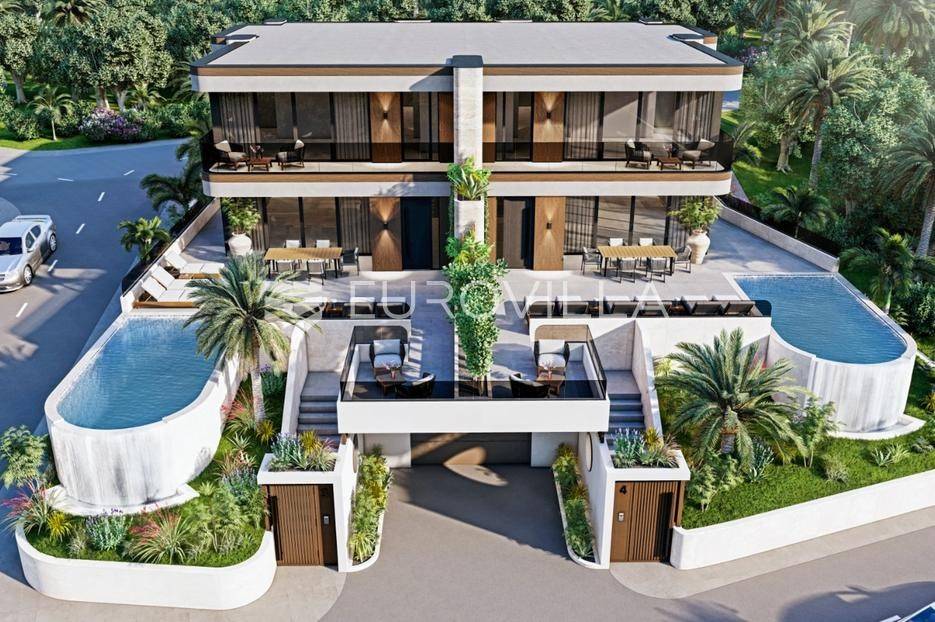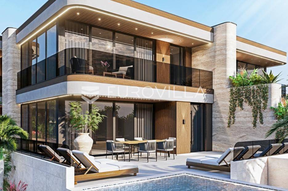 Primošten Resort - unutar pažljivo osmišljenog naselja, nalazi se ova prekrasna dvojna vila s bazenom, ukupne površine 473,04 m².Zatvorena površina vile iznosi 265,59 m², te se prostire na 3 etaže. U podrumu se nalazi velika garaža s 3 parkirna mjesta, te dodatne prostorije kao bazenska tehnika, spremište, vešeraj i prostorija za otpad. Unutarnjim stepenicama dolazi se do prizemlja koje se sastoji od prostranog dnevnog boravka s blagovaonicom, kuhinje, spavaće sobe i kupaonice. Iz boravka se izlazi na prostranu terasu kraj bazena i prostora za sunčanje. Na katu se nalaze još 3 spavaće sobe od kojih svaka ima privatnu kupaonicu i izlaz na balkon s pogledom na more. Svaki detalj pažljivo je osmišljen kako bi osigurao maksimalnu funkcionalnost, udobnost i vrhunski estetski dojam.Vrhunski materijali i oprema, bazen, moderna arhitektura i pametni sustavi upravljanja, samo su dio pogodnosti koje očekuju budućeg vlasnika.Ova vila nudi iznimnu razinu privatnosti, komfora i prestiža, a kupnja nekretnine unutar Primošten Resorta predstavlja statusni izbor — priliku da postanete dio jednog od najatraktivnijih luksuznih projekata na Jadranu.Resort se nalazi svega nekoliko minuta od nagrađivanih šljunčanih plaža i centra Primoštena, a istovremeno nudi privatnost, mir i zadivljujuće poglede. Zračna luka Split udaljena je 40 km, Šibenik 30 km a Split 60 km.Okružen netaknutom prirodom, maslinicima i vinogradima, resort nudi potpuni osjećaj privatnosti, a istodobno vrhunsku povezanost s urbanim sadržajima, marinama i gourmet scenom dalmatinske obale.Za više informacija i obilazak lokacije stojimo na raspolaganju.... Više na eurovilla.hr, ID: 883840