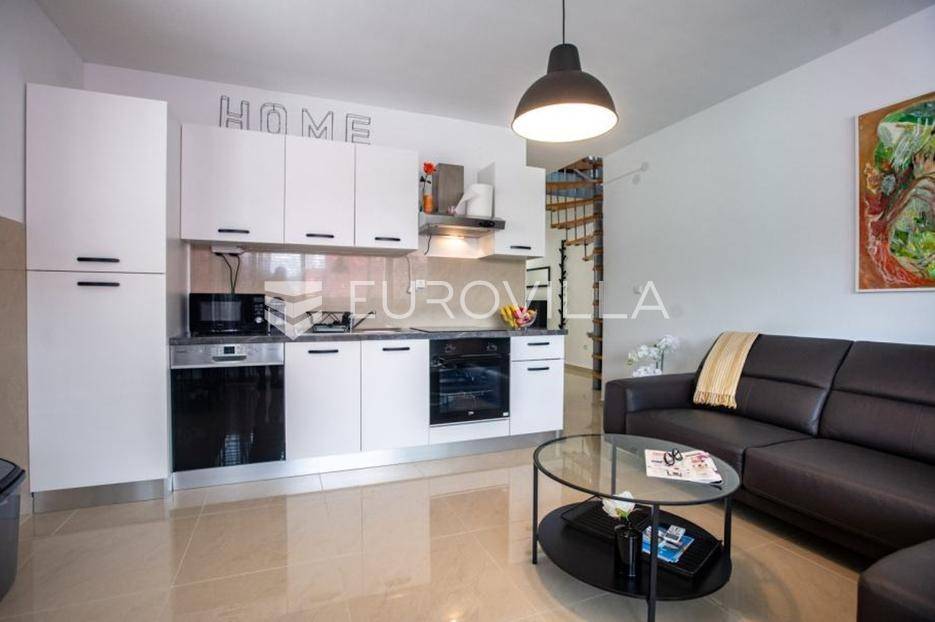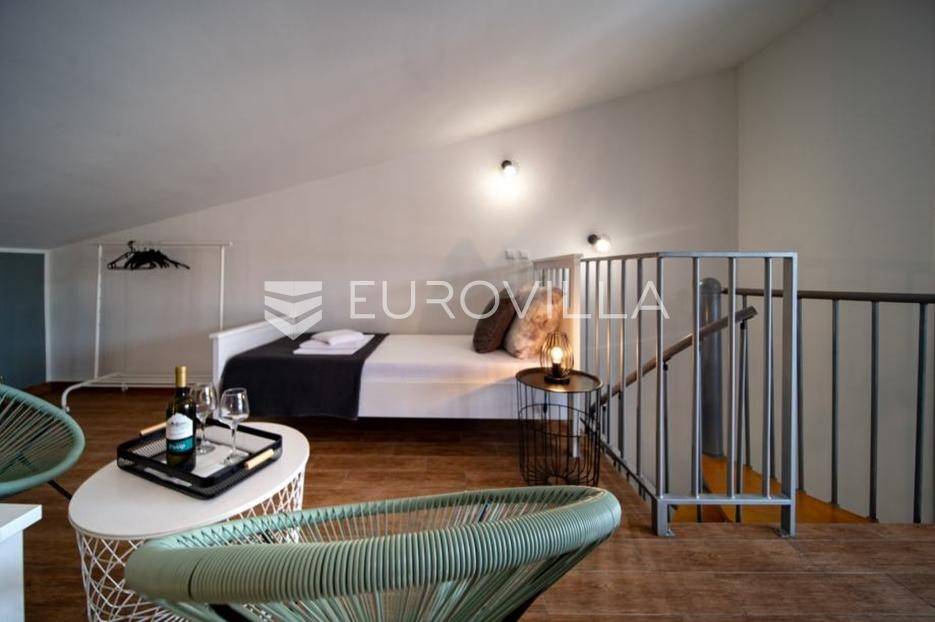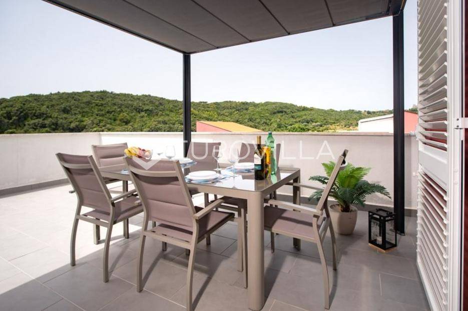 Prodaje se prekrasan stan u Palitu na otoku Rabu, ukupne stambene površine 75,36 m². Nekretnina je raspoređena na dvije etaže i odlikuje se modernim uređenjem i funkcionalnim rasporedom.Na prvoj etaži nalazi se open space dnevni boravak s kuhinjom i blagovaonicom, spavaća soba, kupaonica, ulazni hodnik i stepenice koje vode na drugu etažu. Na drugoj etaži smještena je spavaća soba s direktnim izlazom na terasu. Terasa je djelomično natkrivena aluminijskom pergolom s bočnim sjenilima, što omogućuje ugodan boravak tijekom cijelog dana te predstavlja idealno mjesto za opuštanje i druženje.Stan se prodaje kompletno namješten kako je prikazano na fotografijama, što omogućuje trenutno useljenje bez dodatnih ulaganja. U cijenu je uključeno i vanjsko parkirno mjesto ispred zgrade.Ova nekretnina predstavlja izvrsnu priliku za ugodan život ili investiciju zbog moderne opreme, atraktivne lokacije i terase koja daje dodatnu vrijednost.Za dodatne informacije i razgledavanje stojimo na raspolaganju.... Više na eurovilla.hr, ID: 889094