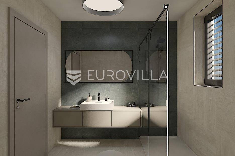 Istra, Rovinj, na prodaju je luksuzan dvosoban stan D na 1. katu moderne novogradnje sa 6 stanova u Rovinju, smješten na iznimnoj lokaciji svega 300 metara od uređenih plaža i nekoliko minuta lagane šetnje do starog grada, neto korisne površine 106.35 m2.Osnovne informacije:Tip stana: dvosoban stan zatvorene površine 88.82 m2Kat: 1. katOznaka stana: Stan DParkirno mjesto: ispred zgradeUdaljenost od plaže: cca 300 mStan se sastoji od:ulaznog dijelagostinjskog WC-avešerajaprostranog dnevnog boravka, kuhinje i blagovaonice otvorenog tlocrtapretprostoradvije spavaće sobe od koje jedna ima ensuite kupaonugostinjska kupaonicaIz dnevnog prostora izlazi se na lođu površine 15 m².Oprema:Stan je projektiran i opremljen s naglaskom na visoku kvalitetu, dugotrajnost i luksuz:vrhunska talijanska keramika Marca Coronasanitarije visoke kvalitete Hans GroheALU stolarija s troslojnim staklima i komarnicimapodno grijanje putem dizalica toplinehlađenje riješeno klima uređajimasustavi grijanja i hlađenja Mitsubishi ili Panasonicprotuprovalna i protupožarna vrataelektrični podizači roletaStan se nalazi na izuzetnoj lokaciji u Rovinju:nekoliko minuta hoda do mora i uređenih plažablizina centra grada, restorana i svih sadržajamirno i elitno rezidencijalno okruženjeIdealno za:luksuzno stanovanjecjelogodišnje korištenjeinvesticiju i turistički najam visoke kategorijeVlasništvo uredno, prodavatelj je u sustavu PDV-a stoga kupac ne plaća porez na promet nekretnina u iznosu od 3%.Za više informacija i dogovor oko razgledavanja stojimo Vam na raspolaganju.... Više na eurovilla.hr, ID: 920278