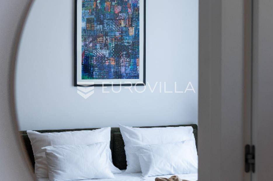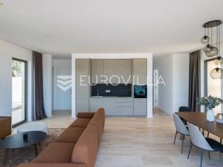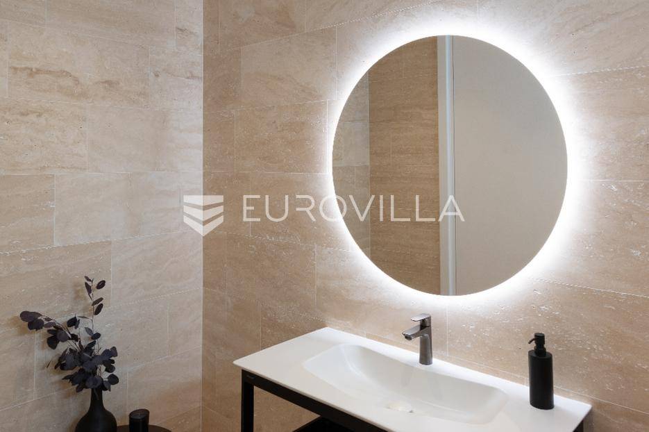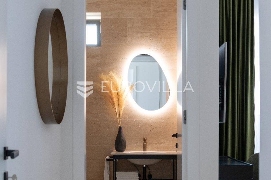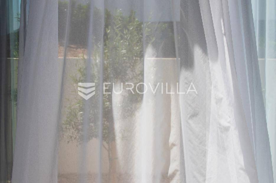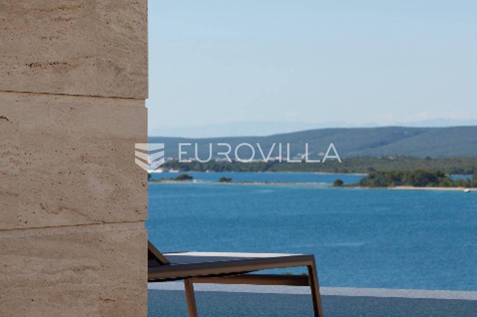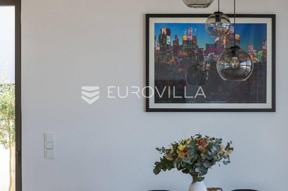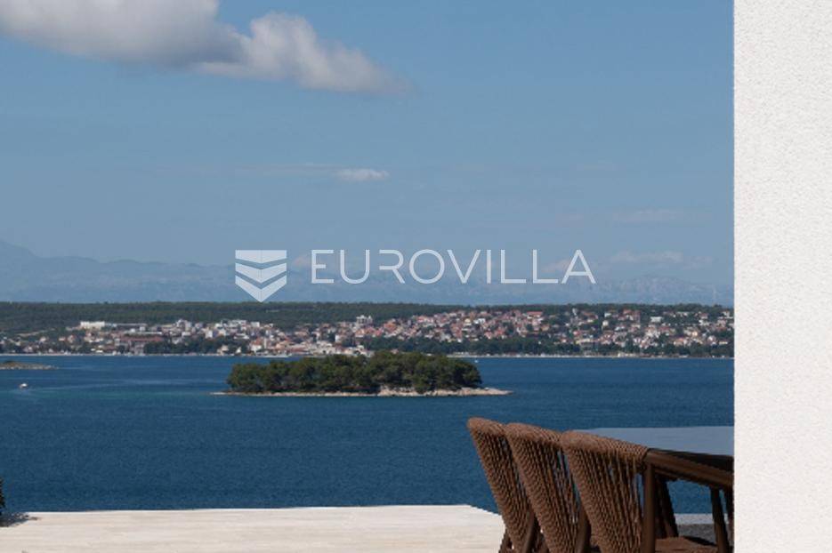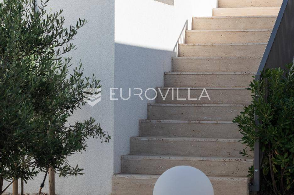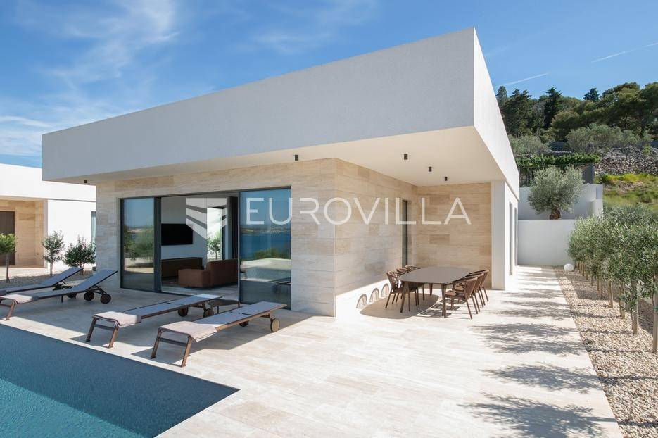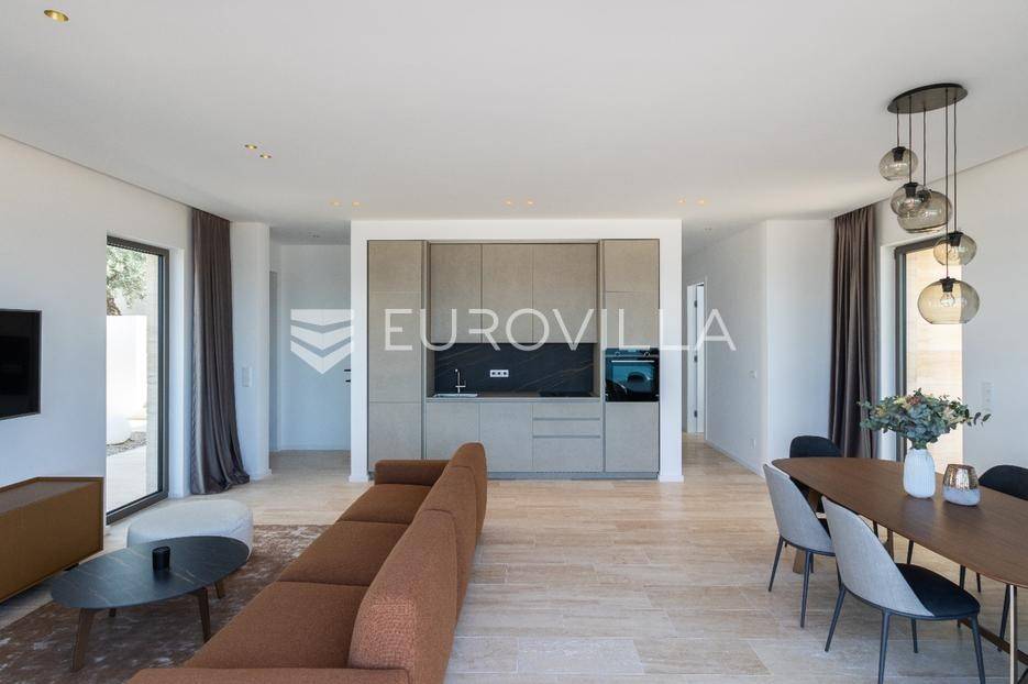 Luksuzna Vila na Pašmanu, Tkon s bazenom i neometanim pogledom na more 130 m2Otkrijte luksuz i udobnost u ovoj predivnoj vili zatvorene površine 103 m2, smještenoj na slikovitom otoku Pašmanu, u mjestu Tkon. Ova moderna nekretnina nudi savršeno okruženje za opuštanje i uživanje u mediteranskom načinu života.- Prostranost i funkcionalnost: Vila se sastoji od 3 prostrane spavaće sobe, 2 moderne kupaonice, vešeraja i prostranog dnevnog boravka s izlazom na terasu.- Vanjski prostor: Uživajte u suncu i svježem zraku na terasi uz bazen, ukupne neto korisne površine 130 m2.- Parkiralište i podrum: na raspolaganju su dva parkirališna mjesta i podrum od cca 15 m2 za dodatno skladištenje.Kvaliteta gradnje:- Vila je izgrađena na betonskoj ploči s vrhunskom hidroizolacijom i termoizolacijom.- Nosivi zidovi od armiranog betona, pregradni zidovi od cigle, te fasada obrađena s prirodnim kamenom travertin i silikatnom fasadom STO.- Krovna izolacija uključuje hidroizolaciju, termoizolaciju, estrih i završni sloj od riječnog kamena.Vrhunski interijer:- Unutarnji zidovi žbukani cementnom žbukom, pregletani i okrečeni za savršen finiš.- Podovi obloženi prirodnim kamenom travertin, usklađeni s terasom i fasadom.- Stolarija vrhunske kvalitete proizvođača Cortizo, model Cor Vision Plus.Vrhunska oprema:Korišteni proizvodi najviših standarda, Modulnova, Franke, Barazza, Varaschin, Flos, Midj, San Giacomo, Flexteam, Catalano, Miele, Siemens Studioline, Bora, Sony, Hans Grohe, Keuco, Mitsubishi Klima.Za dodatne informacije i mogućnost obilaska lokacije, slobodno nas kontaktirajte.... Više na eurovilla.hr, ID: 936024