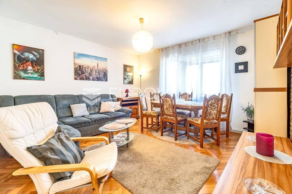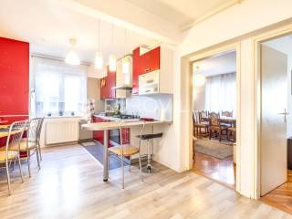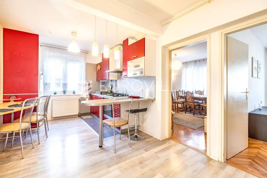 Trešnjevka dvosoban stan površine 56 m2 u visokom prizemlju kvalitetno građene i održavane kuće iz 1972. godine bez lifta. Stanu pripada roh-bau potkrovlje od 61 m2 povezano sklopivim stepenicama, garaža 14,60 m2 te vrt 6,50 m2.Sastoji se od ulaznog hodnika s izlazom na terasu, prostranog dnevnog boravka, kuhinje i blagovaonice, spavaće sobe, ostave i kupaonice.Idealan tlocrt, grijanje etažno plinsko.Nalazi se u uvučenoj ulici i neposrednoj blizini svih potrebnih sadržaja (škola, vrtić trgovina, restorani, barovi, sport…) na odlično prometno povezanoj lokaciji - okružen stambenim nekretninama.Sve ostale informacije na upit.... Više na eurovilla.hr, ID: 938028
