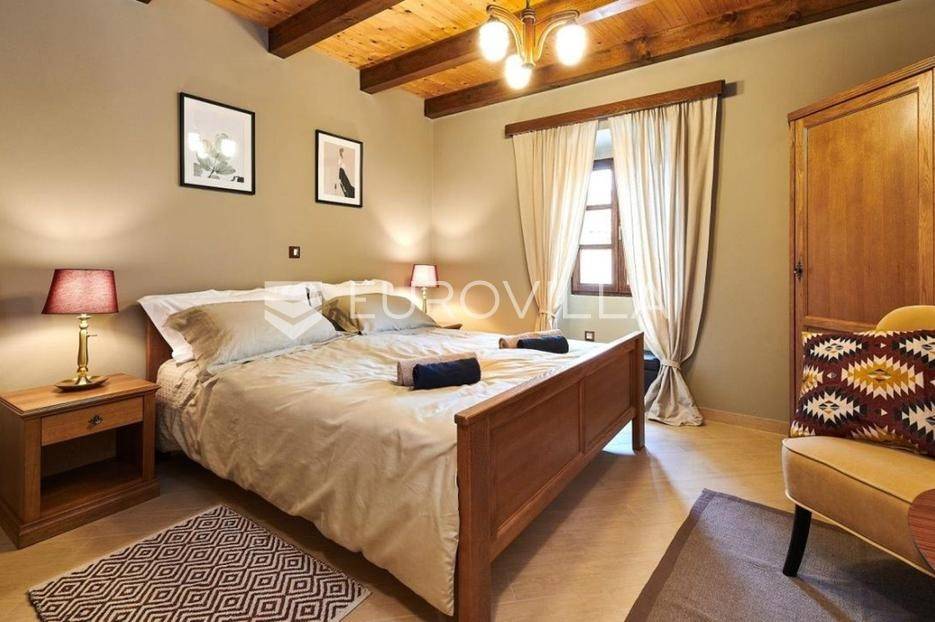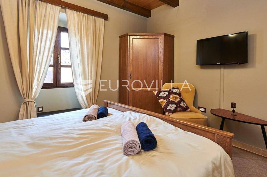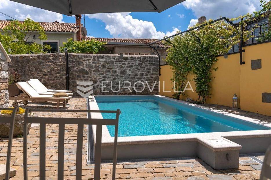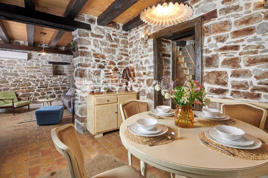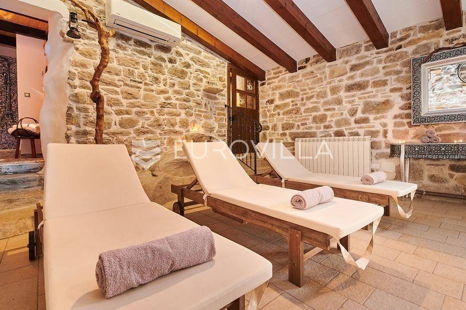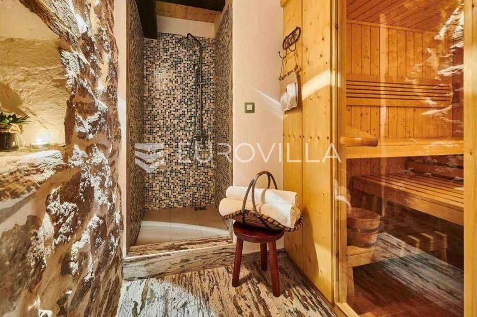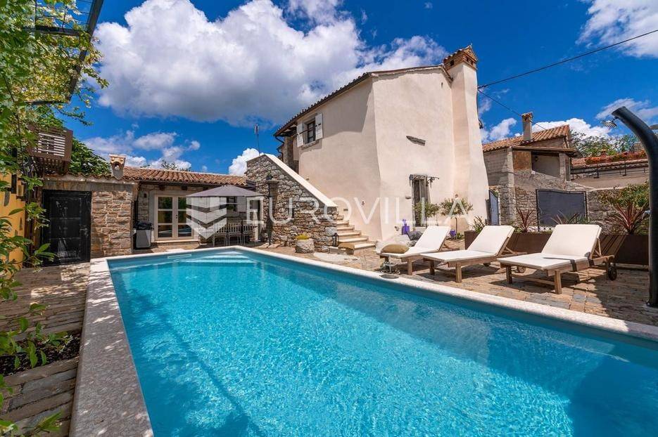Na brdu u samom srcu Istre, u slikovitom i povijesnom mjestu Gračišće, smjestila se rustikalna vila - jedinstvena kamena ljepotica stara gotovo 400 godina okružena filmskim prizorima brežuljkastog krajolika i starog sela. Ova vila pruža poseban doživljaj boravka, bilo da tražite savršeno mjesto za obiteljski život ili sigurno i isplativo ulaganje.Vila se prostire na dvije etaže i obuhvaća 125 m2 stambenog prostora na okućnici od 234 m2. Pažljivo obnovljena, zadržala je izvorni karakter dok je istovremeno prilagođena suvremenom načinu života. Interijer odiše toplinom zahvaljujući tradicionalnom namještaju, kamenim zidovima, drvenim detaljima i namještaju izrađenom po mjeri, stvarajući profinjenu, ali ugodnu i domaću atmosferu.U prizemlju se nalazi prava mala wellness oaza s unutarnjim grijanim bazenom obloženim mozaik pločicama, opremljenim mlaznicama za protustrujno plivanje te grijanjem putem dizalice topline. Wellness zona uključuje i saunu, nudeći potpuni doživljaj opuštanja. Prostor prizemlja zaokružuju prostrani dnevni boravak s autentičnim ognjištem, blagovaonica, potpuno opremljena kuhinja u rustikalnom stilu te dodatni wc, dok elegantne drvene stepenice vode na kat.Na katu su smještene tri spavaće sobe - dvije standardne te jedna obiteljska s queen krevetom. Tri kupaonice s tušem, u kojima se skladno isprepliću kamen, drvo i topli tonovi.Vanjski prostor osmišljen je kao privatna mediteranska oaza. Natkrivena terasa s autentičnim kaminom i roštiljem savršena je za opuštena druženja i večere na otvorenom, dok veliki grijani vanjski bazen, sunčalište s ležaljkama i potpuno ograđeno dvorište nude mir i privatnost. Okućnica je ograđena kamenim zidom, popločana prirodnim kamenim pločama, a ulazna kapija od kovanog željeza dodatno naglašava sigurnost i eleganciju ove nekretnine.Vila je klimatizirana, opremljena centralnim grijanjem i osmišljena do najsitnijeg detalja kako bi boravak bio ugodan tijekom cijele godine. Kategorizirana je za turistički najam te već dugi niz godina uspješno posluje, što je čini iznimno atraktivnom investicijom s brzim povratom i stabilnim prihodima.Lokacija vile dodatno povećava njezinu vrijednost stoga je idealna za one koji žele uživati u autentičnoj Istri, tišini i prirodi, a pritom imati luksuz privatnog wellnessa i sigurnost pametnog ulaganja u jednu od najpoželjnijih regija Hrvatske.Za više informacija slobodno nas kontaktirajte.... Više na eurovilla.hr, ID: 952400
