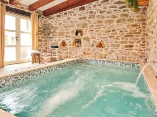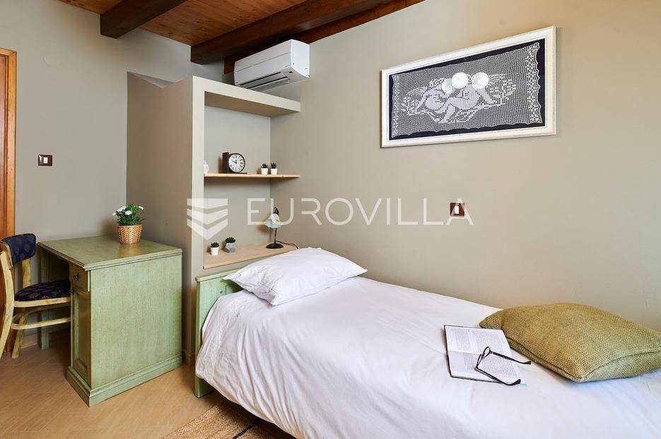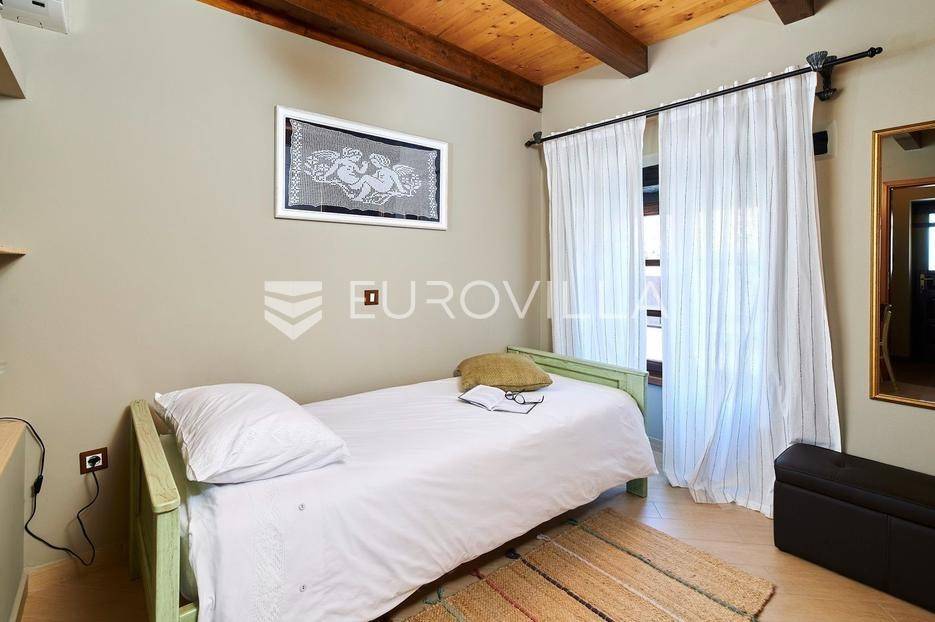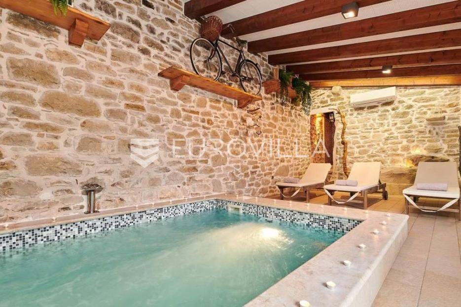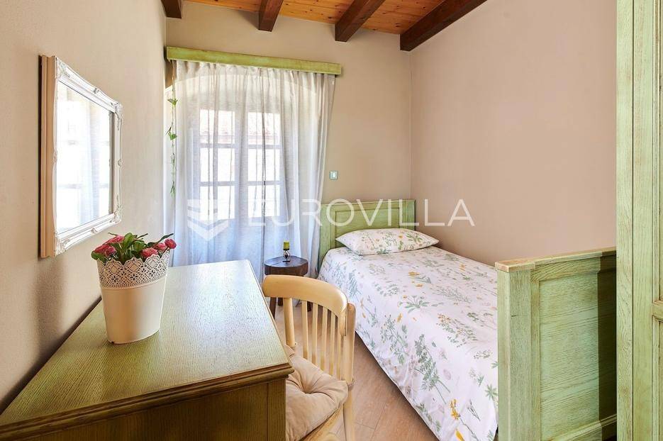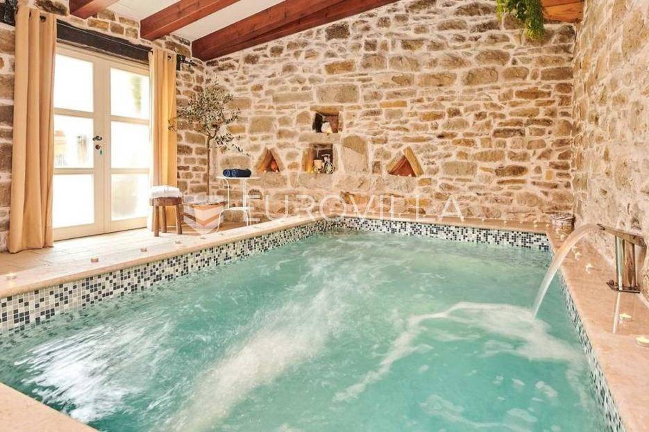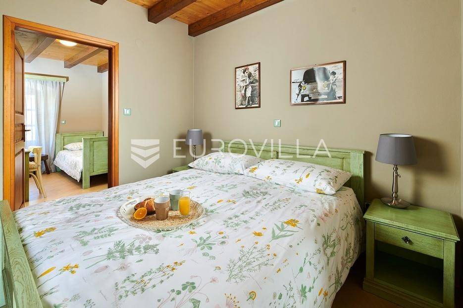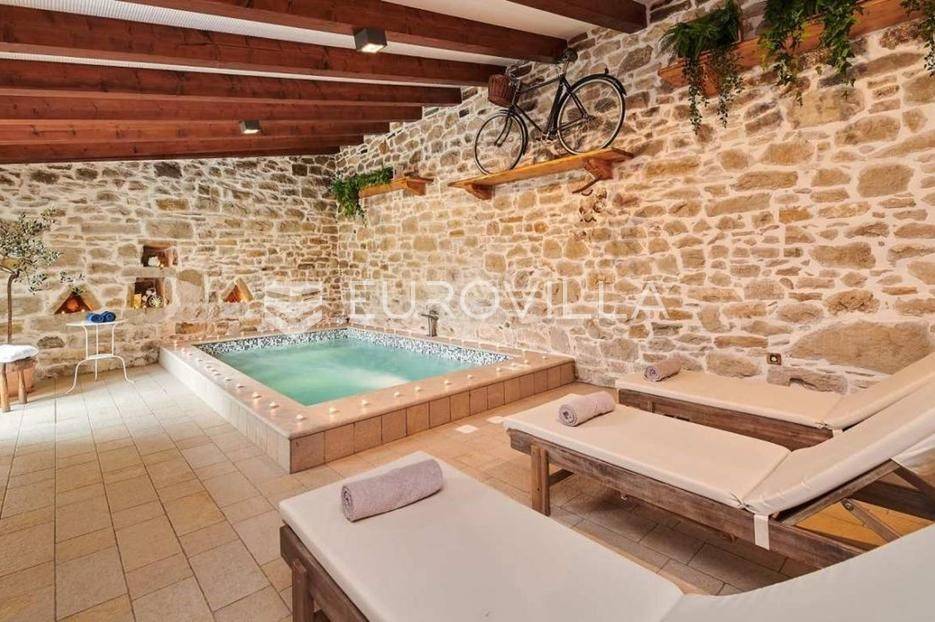 Na brdu u samom srcu Istre, u slikovitom i povijesnom mjestu Gračišće, smjestila se rustikalna vila - jedinstvena kamena ljepotica stara gotovo 400 godina okružena filmskim prizorima brežuljkastog krajolika i starog sela. Ova vila pruža poseban doživljaj boravka, bilo da tražite savršeno mjesto za obiteljski život ili sigurno i isplativo ulaganje.Vila se prostire na dvije etaže i obuhvaća 125 m2 stambenog prostora na okućnici od 234 m2. Pažljivo obnovljena, zadržala je izvorni karakter dok je istovremeno prilagođena suvremenom načinu života. Interijer odiše toplinom zahvaljujući tradicionalnom namještaju, kamenim zidovima, drvenim detaljima i namještaju izrađenom po mjeri, stvarajući profinjenu, ali ugodnu i domaću atmosferu.U prizemlju se nalazi prava mala wellness oaza s unutarnjim grijanim bazenom obloženim mozaik pločicama, opremljenim mlaznicama za protustrujno plivanje te grijanjem putem dizalice topline. Wellness zona uključuje i saunu, nudeći potpuni doživljaj opuštanja. Prostor prizemlja zaokružuju prostrani dnevni boravak s autentičnim ognjištem, blagovaonica, potpuno opremljena kuhinja u rustikalnom stilu te dodatni wc, dok elegantne drvene stepenice vode na kat.Na katu su smještene tri spavaće sobe - dvije standardne te jedna obiteljska s queen krevetom. Tri kupaonice s tušem, u kojima se skladno isprepliću kamen, drvo i topli tonovi.Vanjski prostor osmišljen je kao privatna mediteranska oaza. Natkrivena terasa s autentičnim kaminom i roštiljem savršena je za opuštena druženja i večere na otvorenom, dok veliki grijani vanjski bazen, sunčalište s ležaljkama i potpuno ograđeno dvorište nude mir i privatnost. Okućnica je ograđena kamenim zidom, popločana prirodnim kamenim pločama, a ulazna kapija od kovanog željeza dodatno naglašava sigurnost i eleganciju ove nekretnine.Vila je klimatizirana, opremljena centralnim grijanjem i osmišljena do najsitnijeg detalja kako bi boravak bio ugodan tijekom cijele godine. Kategorizirana je za turistički najam te već dugi niz godina uspješno posluje, što je čini iznimno atraktivnom investicijom s brzim povratom i stabilnim prihodima.Lokacija vile dodatno povećava njezinu vrijednost stoga je idealna za one koji žele uživati u autentičnoj Istri, tišini i prirodi, a pritom imati luksuz privatnog wellnessa i sigurnost pametnog ulaganja u jednu od najpoželjnijih regija Hrvatske.Za više informacija slobodno nas kontaktirajte.... Više na eurovilla.hr, ID: 952400