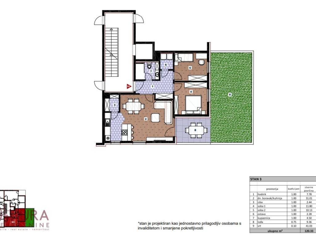 Zagreb - Sesvete (Gajišće), prodaje se stan od 81,06 m2 u prizemlju stambene zgrade u izgradnji, planirani rok useljenja je kraj 2026. godine.