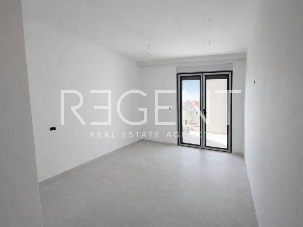 The two-room apartment is located in a new building in an attractive location in Makarska. It is located in a modern new building with an elevator and is ideal for couples, small families or as an investment for tourist rental. The apartment has a total net area of 88 m², and consists of a living room with a kitchen and dining room, two bedrooms, two bathrooms and a spacious loggia. The living room is open plan, with large glass walls that give the space plenty of natural light. Underfloor heating is installed in the living area, air conditioning units, PVC joinery and HST triple-layer sliding walls. The finishing materials are of high quality and adapted to modern living. The apartment is located in a quiet part of Makarska, near the sea and all important amenities. Beaches, shops and restaurants are only a few minutes away, which makes this property practical for everyday life, but also very interesting for rent during the tourist season. The building is completed, the documentation is in order, and move-in is possible within approximately two months. For more information about the apartment, floor plan and price, and to arrange a viewing appointment, please feel free to contact us.