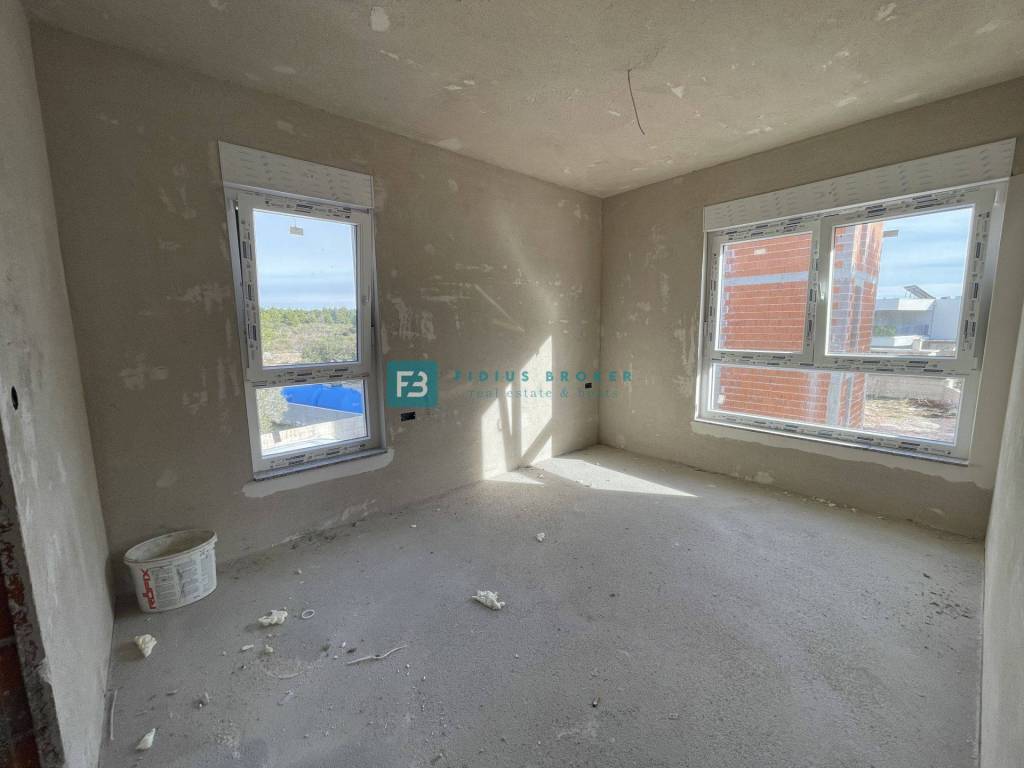 Construction of a new residential building with a total of 9 apartments has begun. The modern-looking residential building will consist of three floors: ground floor + 1st floor + 2nd floor. The building will be built with quality materials according to the latest construction standards. Among the equipment, we highlight: thermal facade, security entrance doors, PVC joinery, electric roller shutters and mosquito nets, electric underfloor heating in bathrooms, modern sanitary ware, ceramic floor coverings, high-quality laminate in the rooms, inverter air conditioners, MDF interior doors, glass railings on the terraces. The apartments on the ground floor have a suitable part of the garden, while the apartments on the 2nd floor have a beautiful view of the sea. The planned completion date and move-in date is spring 2026.