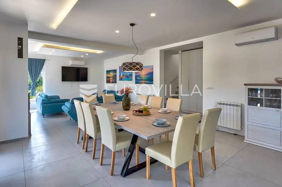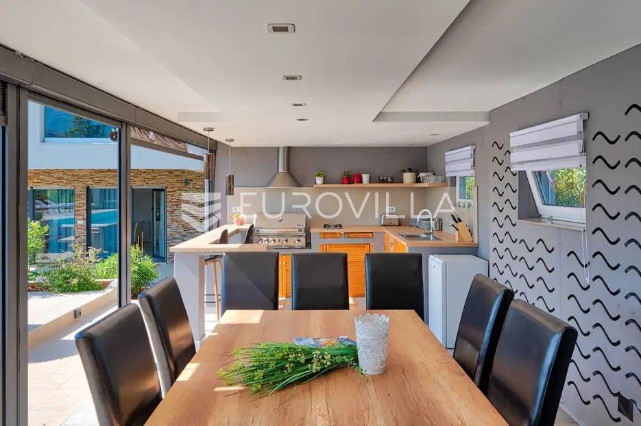 Rakalj, u manjem mjestu katastarske općine Rakalj smjestila se ova prekrasna vila. Ova prekrasna moderna kuća u manjem mjestu ima zaista impresivne karakteristike koje je čine jedinstvenom. Sastoji se od velike površine od 315 četvornih metara te je smještena na prostranom dvorištu s bajkovitim bazenom površine 50 m2. Kuća zaista nudi udobnost i luksuz.Kada kročite unutra, dočekat će vas prostrani prostor koji očarava. Kuća ima ukupno 6 prostranih spavaćih soba, pružajući dovoljno prostora za sve članove obitelji i goste. Svaka soba je pažljivo uređena s modernim namještajem i udobnim krevetima kako bi se osigurala ugodna atmosfera.S nevjerojatnih 8 kupaonica, ovaj dom pruža privatnost i praktičnost za sve stanare. Svaka kupaonica je moderno opremljena s elegantnim sanitarijama i luksuznim detaljima koji će vam pružiti osjećaj kao da se nalazite u vrhunskom hotelu.Kada je riječ o kuhanju, ova kuća ne zaostaje ni malo. Dvije moderno opremljene kuhinje pružaju vam mogućnost pripreme ukusnih obroka. Bilo da se radi o svakodnevnim kuhanjima ili posebnim prigodama, imate obilje prostora i opreme da zadovoljite sve svoje kulinarske potrebe.Osim unutarnjeg prostora, ova kuća ima i prekrasne terase i sunčalište koje vam omogućuju da uživate u svježem zraku i predivnom pogledu na okolinu. Možete opuštati na terasi uz piće, uživati u obroku s pogledom ili jednostavno provoditi vrijeme sa svojim najdražima na otvorenom.Ova kuća također ima dodatnu pogodnost - dva odvojena apartmana, svaki površine 25 četvornih metara. Apartmani su elegantno uređeni i pružaju sve što je potrebno za ugodan boravak.Ova lijepa moderna kuća predstavlja kombinaciju udobnosti, luksuza i praktičnosti. Velika površina, bazen, brojne spavaće sobe, kupaonice, kuhinje i dodatni apartmani čine je idealnom za velike obitelji, prijatelje i sve one koji žele uživati u modernom i udobnom životnom prostoru.Za dodatne informacije stojimo Vam na raspolaganju.... Više na eurovilla.hr, ID: 216064