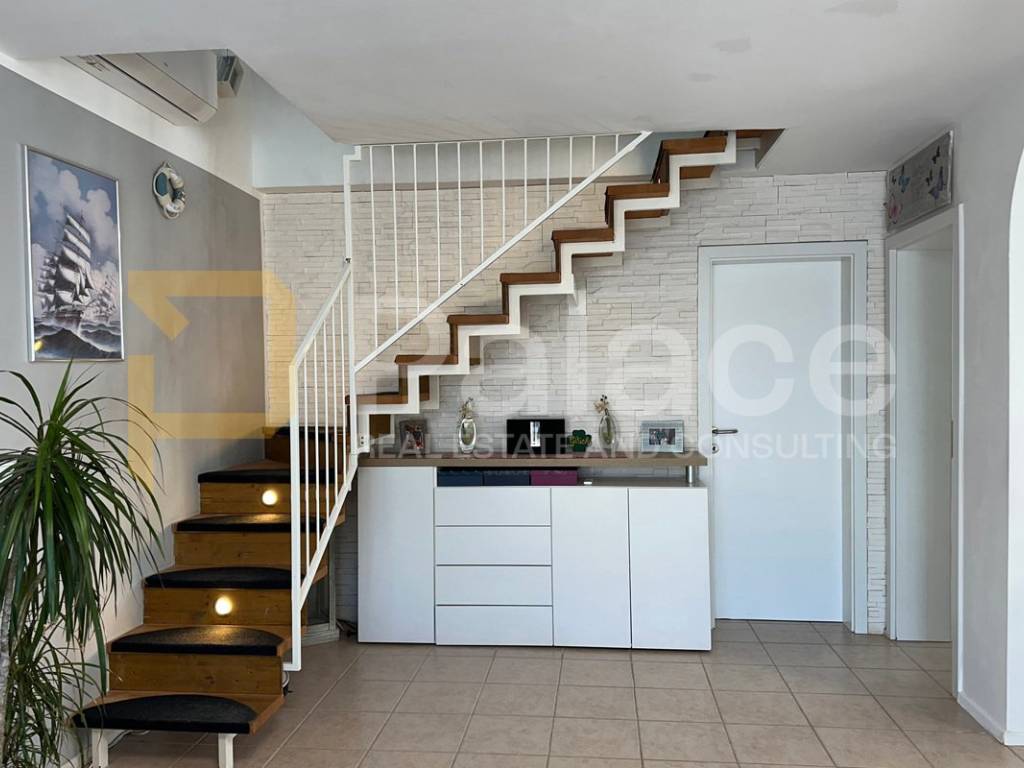 An elegant staircase leads to the first floor.