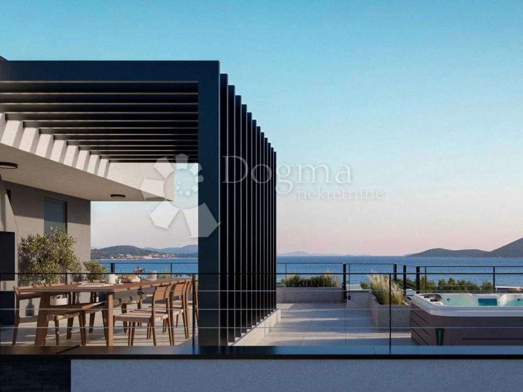 Located in one of the most desirable areas of Tribunj, this exclusive 108 m apartment is situated in a modern, high-quality building currently under construction, offering breathtaking panoramic sea views.