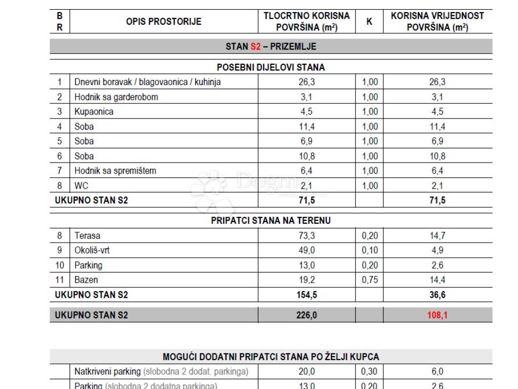 Of the total area, 71.5 m comprises thoughtfully designed interior living space, while the remaining 36.6 m includes a spacious terrace with a private swimming pool, a parking space, and adjoining outdoor areas.