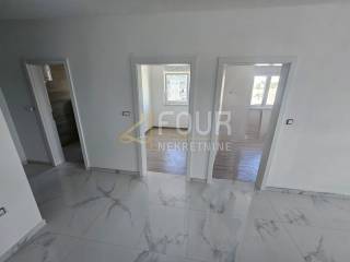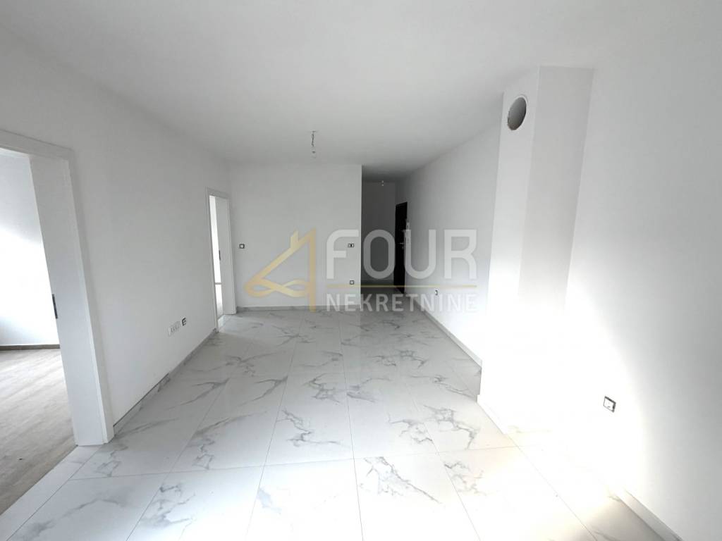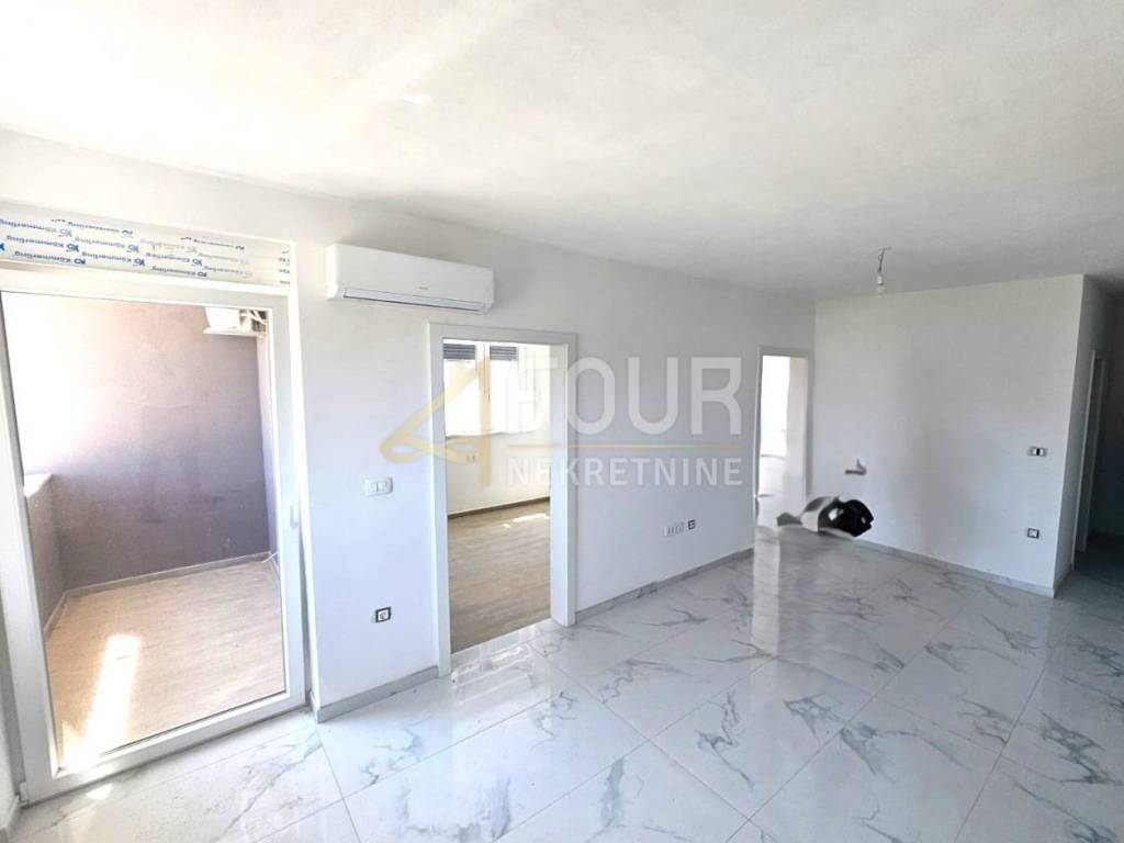 An attractive apartment is for sale in Pula, in the Monvidal neighborhood, located in a quality new building ready for move-in by the "turnkey" system. It is situated in a residential building with an elevator, facing south and west, ensuring plenty of sunlight and pleasant natural light throughout the day. It has a total area of 47.79 m2 and consists of two bedrooms, a living room with kitchen and dining area, a bathroom, and a balcony that provides additional space for relaxation. The entire apartment is tiled, equipped with PVC windows with double glazing, and heating and cooling are provided by an air conditioning unit with a chimney that allows for the installation of a fireplace according to the future owner's preference. The building is energy efficient thanks to 20 cm thick stone wool insulation. The apartment includes one outdoor parking space, further increasing the convenience of everyday life. The location is peaceful and pleasant for living, with the sea just five kilometers away, making it an excellent opportunity for a comfortable life or as an investment.