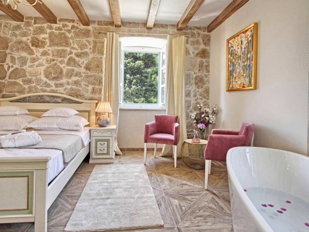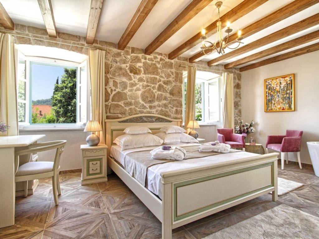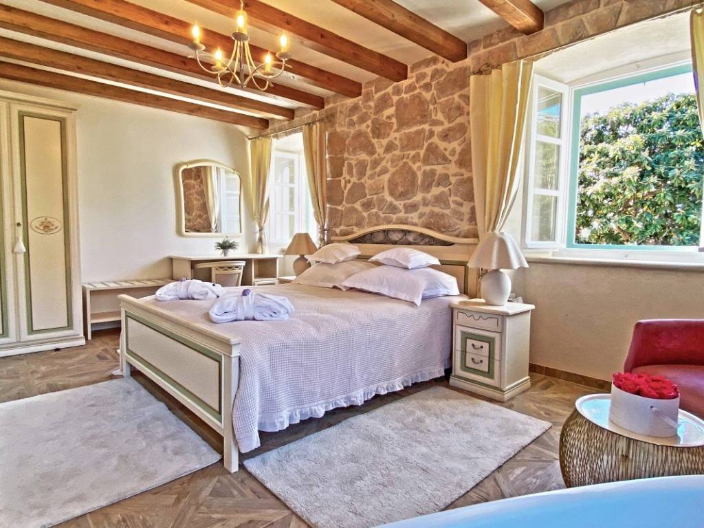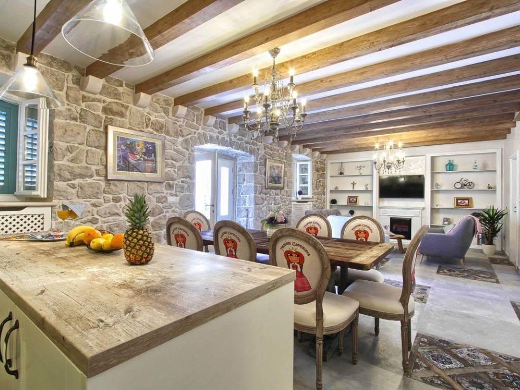 In the very center of Cavtat, just a few steps from the sea and the long promenade that stretches throughout the town, stands an 18th-century stone villa, meticulously and professionally restored in 2018. The restoration preserved the original stone structure and all authentic details, giving this property its unique character.