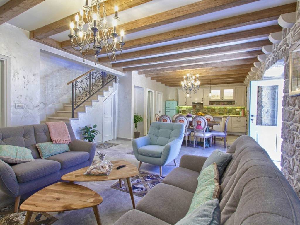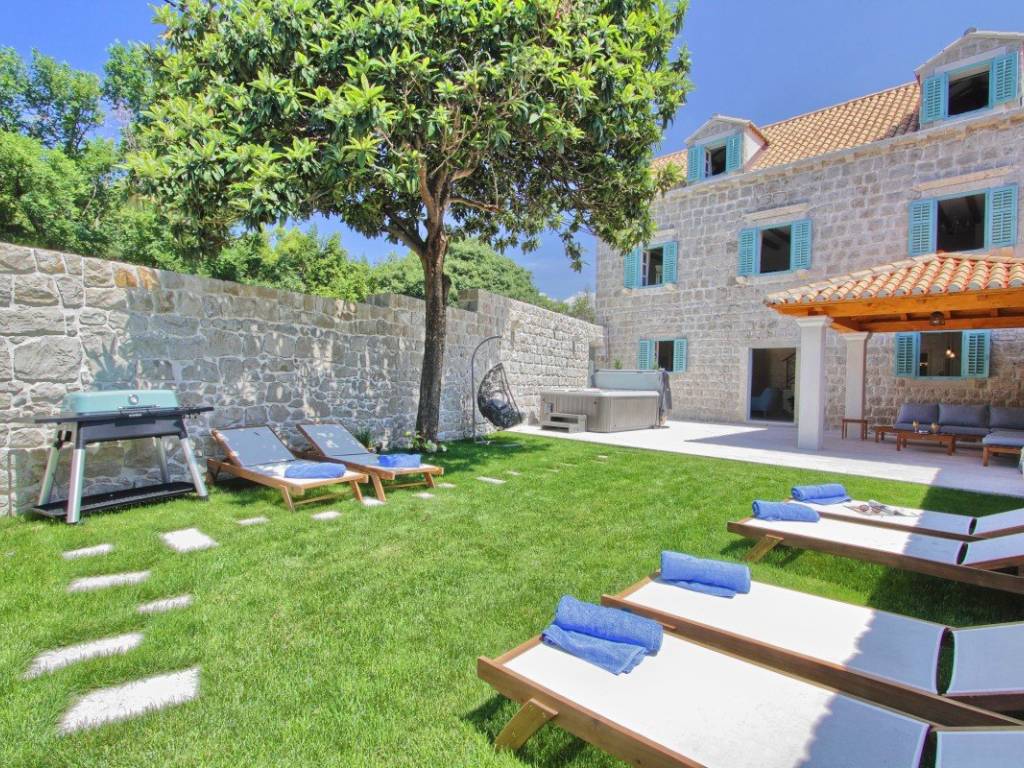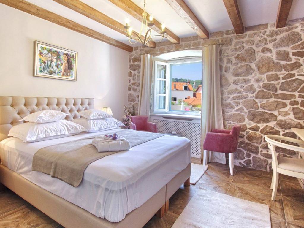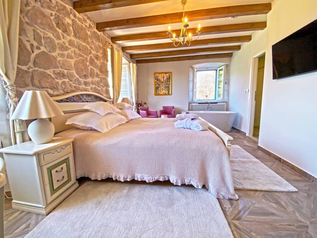 In the very center of Cavtat, just a few steps from the sea and the long promenade that stretches throughout the town, stands an 18th-century stone villa, meticulously and professionally restored in 2018. The restoration preserved the original stone structure and all authentic details, giving this property its unique character.