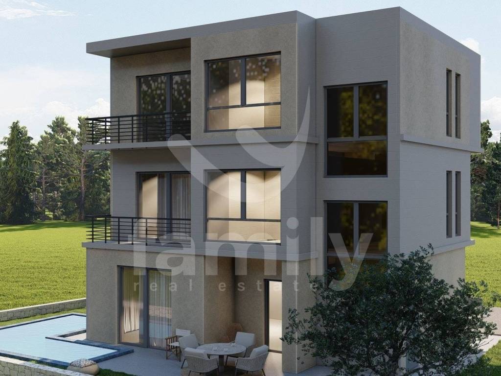 We offer a modern holiday home with a swimming pool, currently under construction, designed according to modern construction standards with an emphasis on quality of execution, functionality and long-term value of the property. The house with a total living area of approximately 151 m² is spread over three floors. On the ground floor there is a living room with a kitchen and dining room, a bedroom and a bathroom, while the special value of this property is given by a private swimming pool of 20 m², ideal for enjoying during the warmer months. On the upper floors there are additional bedrooms and bathrooms as well as loggias that provide additional comfort and space for relaxation. Heating is provided via underfloor heating in the living room and bathrooms, while quality ceramics will be installed throughout the building. Anthracite-colored PVC joinery will be installed on the openings, and electric roller shutters on the sliding walls, which further contributes to the functionality and modern appearance of the space. The building is designed as a concrete structure, which ensures the stability and durability of the construction. Given that the property is currently under construction, the future owner is given the option of adapting the space - the building can be organized as a single vacation home or as three separate residential units, depending on the wishes and needs of the owner.