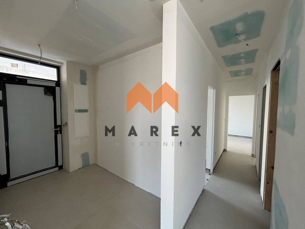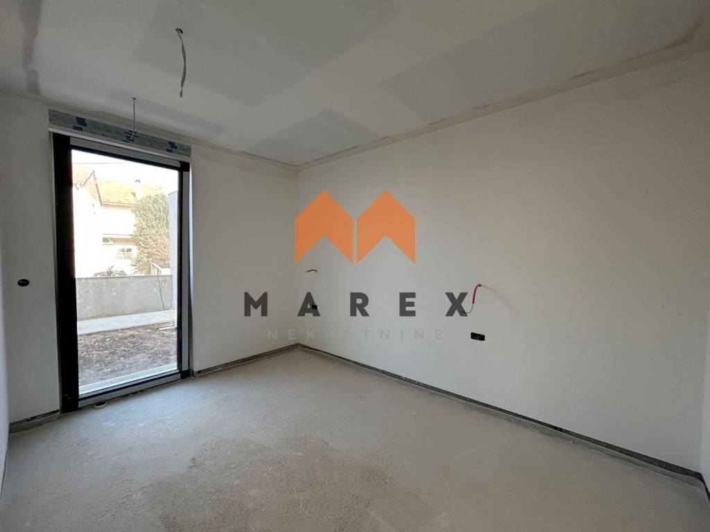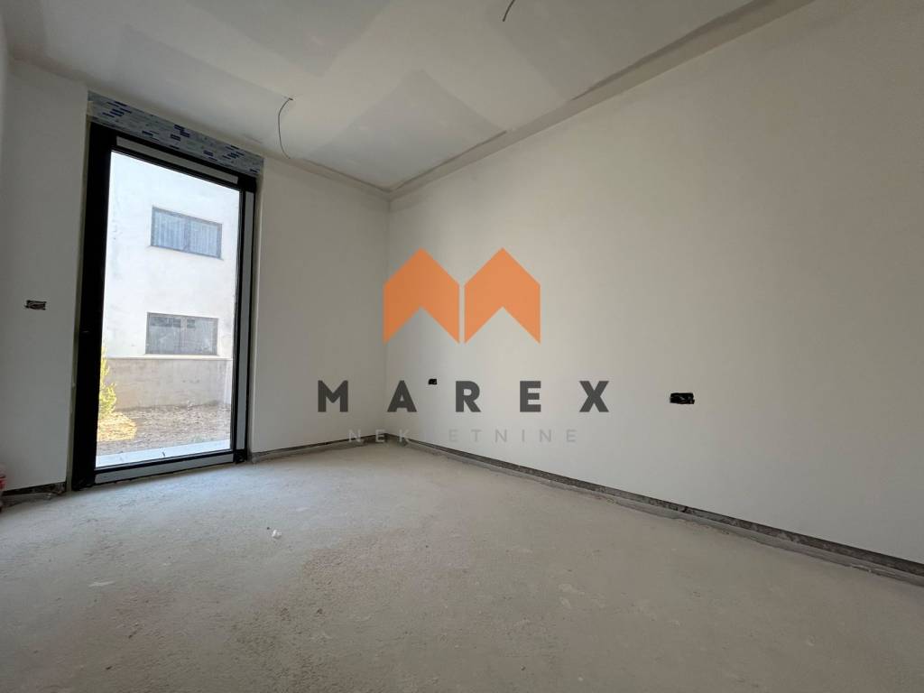 U prizemlju zgrade nalazi se ovaj prostrani stan koji zahvaljujući povišenoj poziciji od 0,95 m iznad tla pruža dodatnu privatnost, a poseban osjećaj ekskluzivnosti daje mu i zaseban ulaz sa bočne strane zgrade – ulaz koji pripada samo ovom stanu.