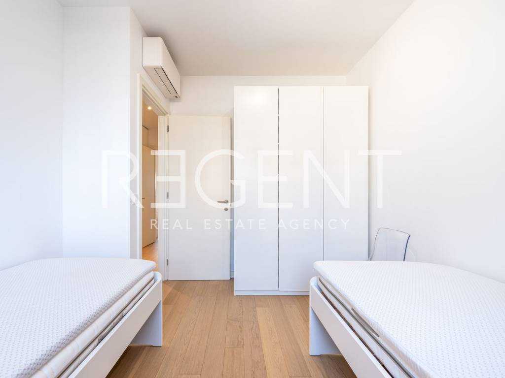 A modern three-room apartment with an area of 80 m² is for rent in the VMD new building in Heinzelova Street, ideal for a couple or a family looking for a quality and comfortable living space. The apartment is located in an excellent location in Heinzelova Street, in a modern VMD project with very good traffic connections. Tram lines, shops, business zones and all important facilities necessary for a pleasant everyday life are located in the immediate vicinity. It is located on the third floor of a modern building and consists of a hallway, two bedrooms, two bathrooms and a spacious living room connected to the kitchen and dining room, which leads to a loggia. The apartment has underfloor heating, a heat pump and a smart home system that enables easy management of the apartment's functions. This is the first rental, and the apartment comes with one garage parking space and an additional outdoor parking space. For more information and to arrange a viewing, feel free to contact us.