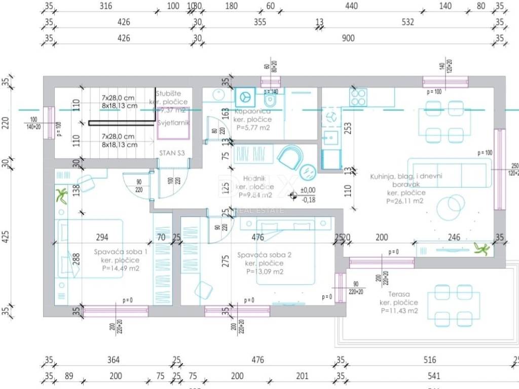 This modern 81 m apartment in a quality new building is located in Rovanjska, a quiet place near Zadar, nestled between the Adriatic Sea and the Velebit mountain. The apartment consists of three rooms and offers a pleasant, bright space ideal for living or vacationing.