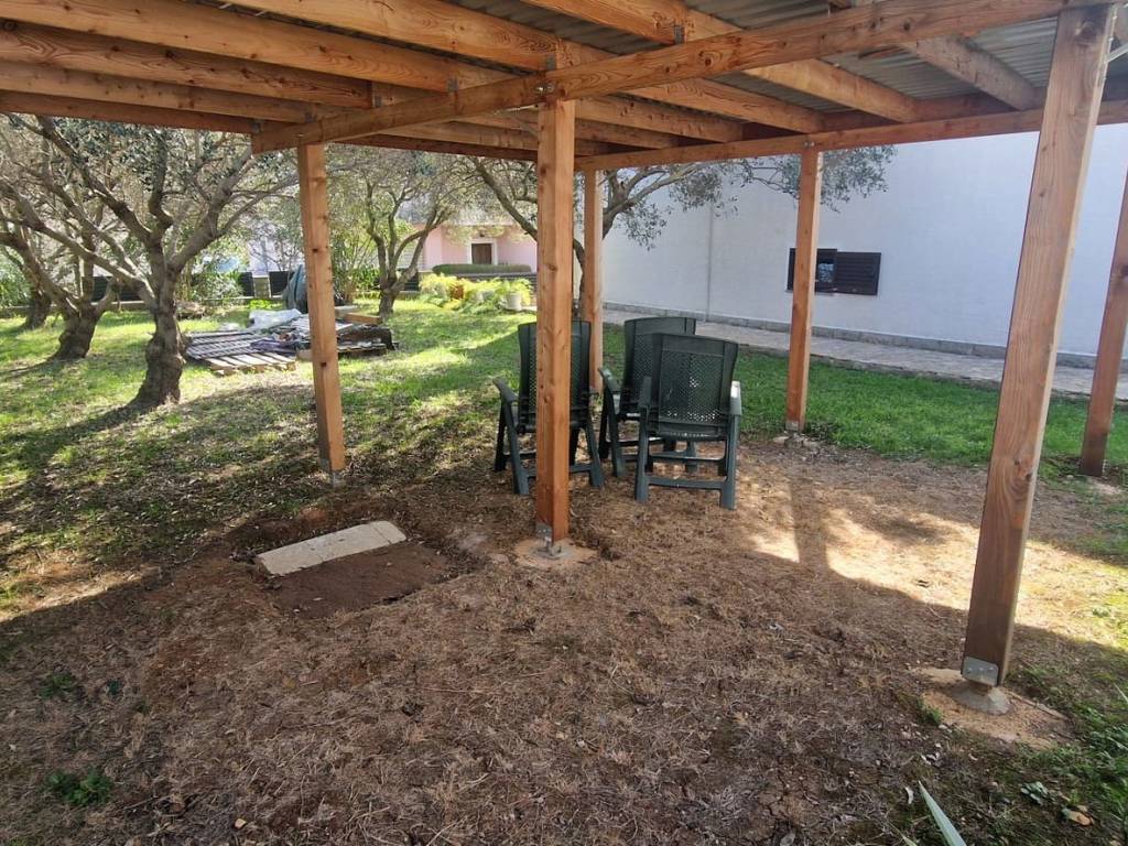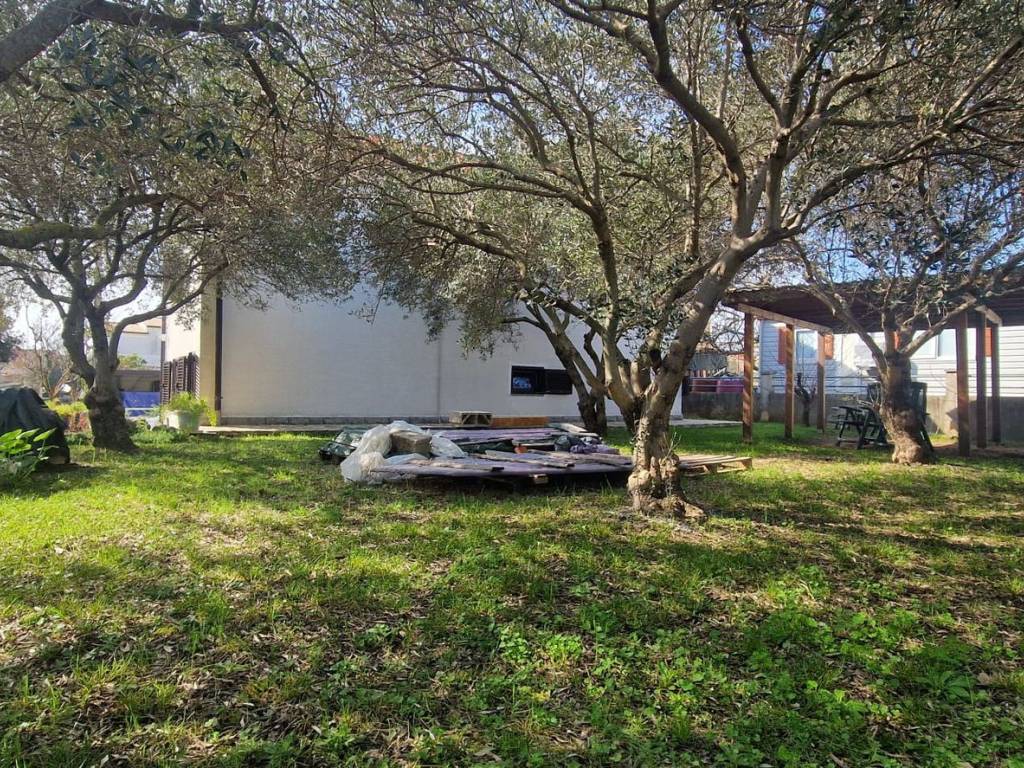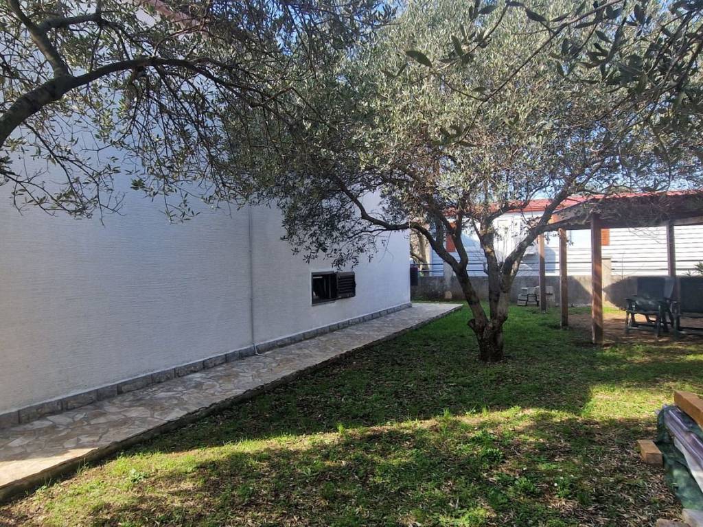 It is located on a beautiful, large plot with many olive trees, various fruit trees, and flowers. It is 150 meters from the sea and the beach. Close to shops, schools, and all essential amenities.
